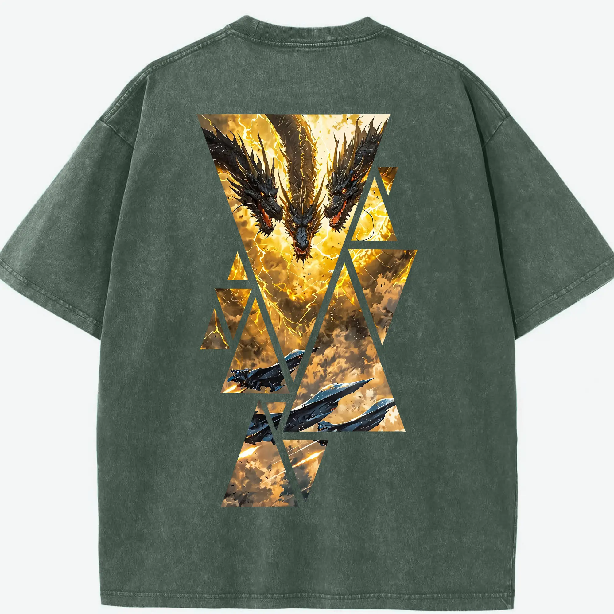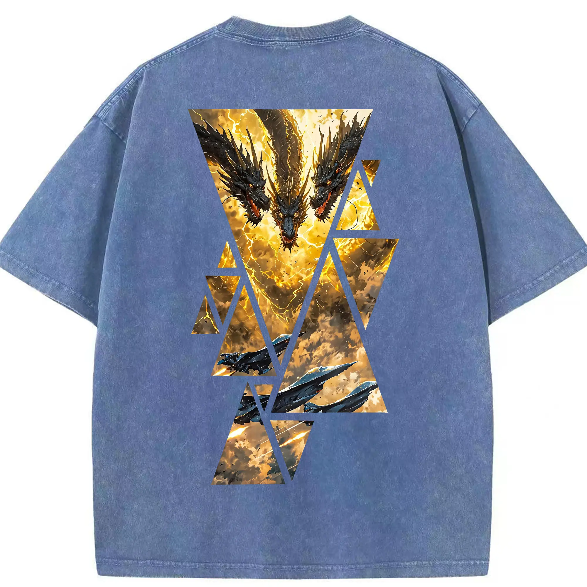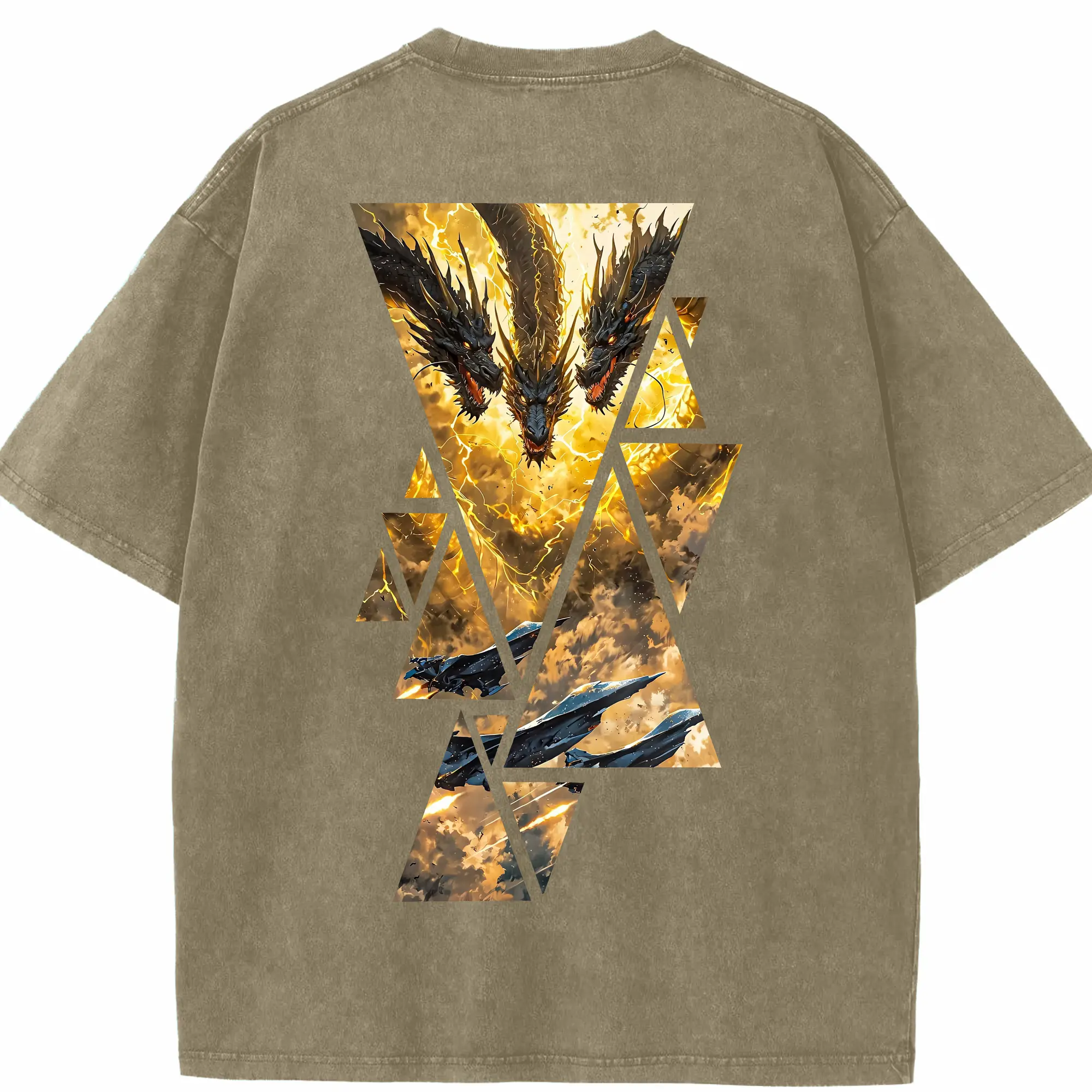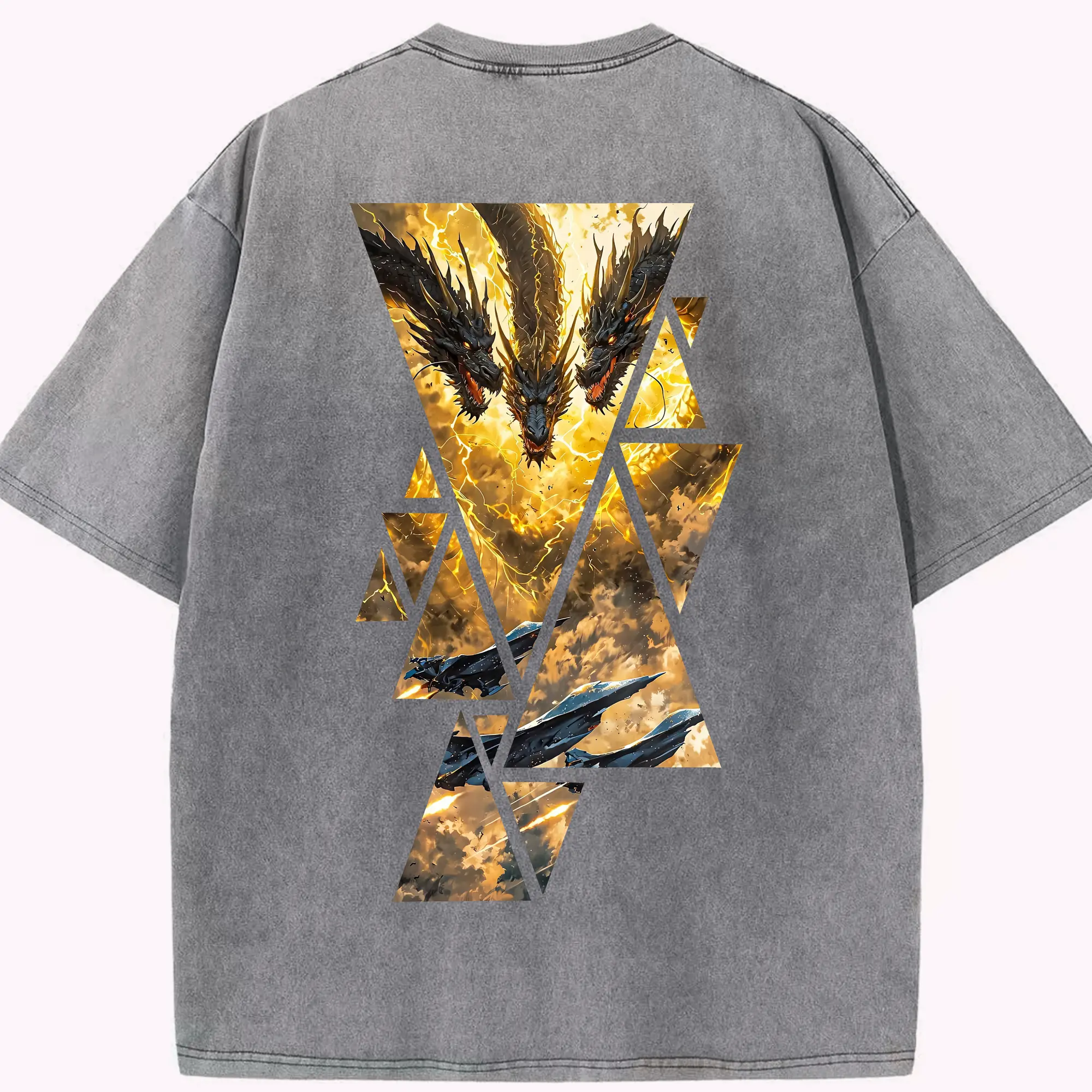 ゴジラ グッズ,キングギドラ - 綿100% ヴィンテージ風 半袖Tシャツ ・ フロントプリント ・ 柔らか肌触り ・ 通気性 快適 ・ スポーツ カジュアル 外出用
