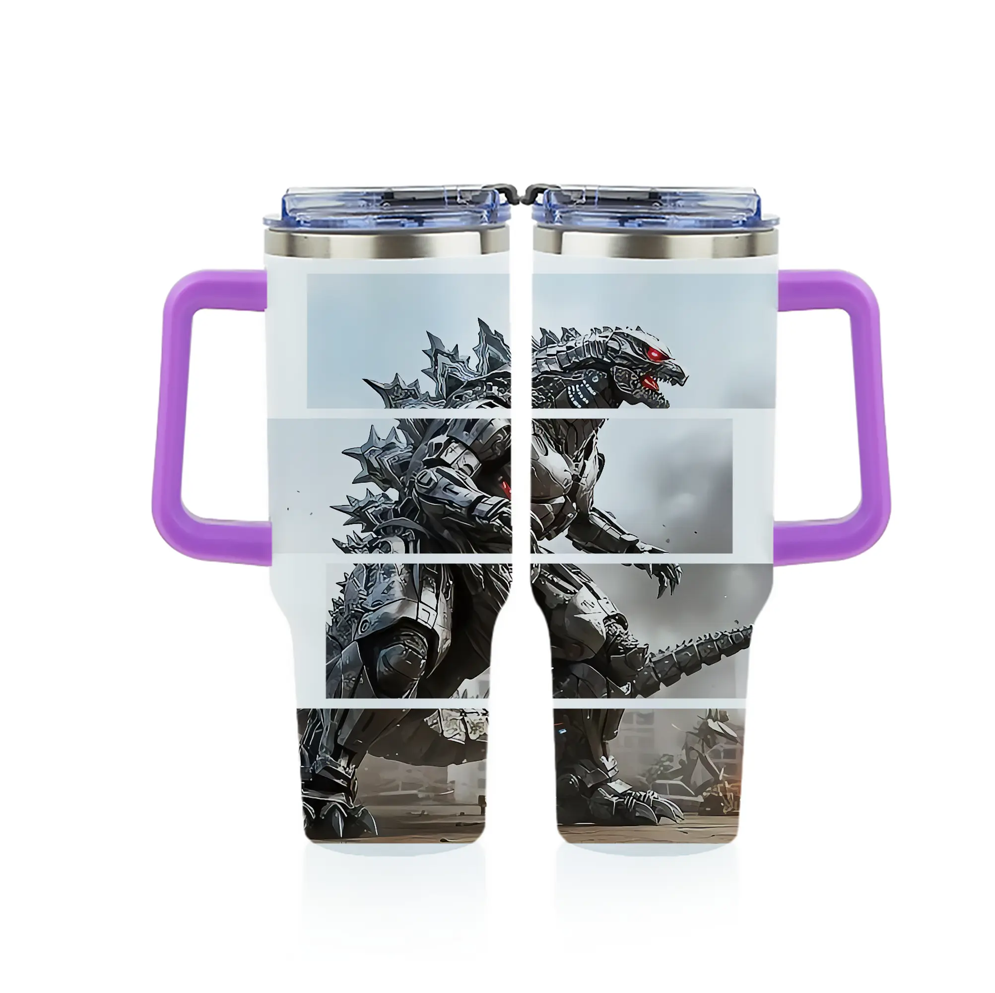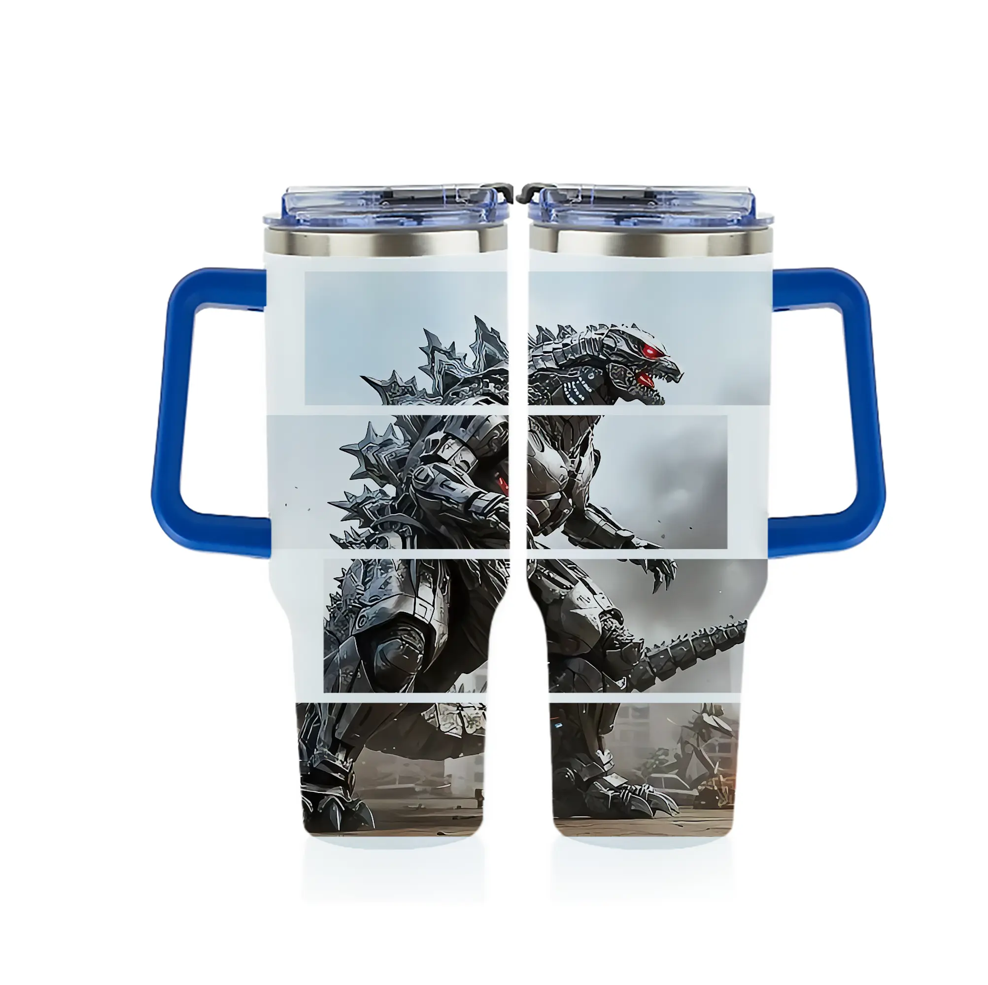 ゴジラ グッズ,メカゴジラ - 1200mL フルプリント車用タンブラー ・ 304ステンレス 内側 ・ 201ステンレス 外側 ・ 保温 保冷 ・ 通勤 ドライブ アウトドア用