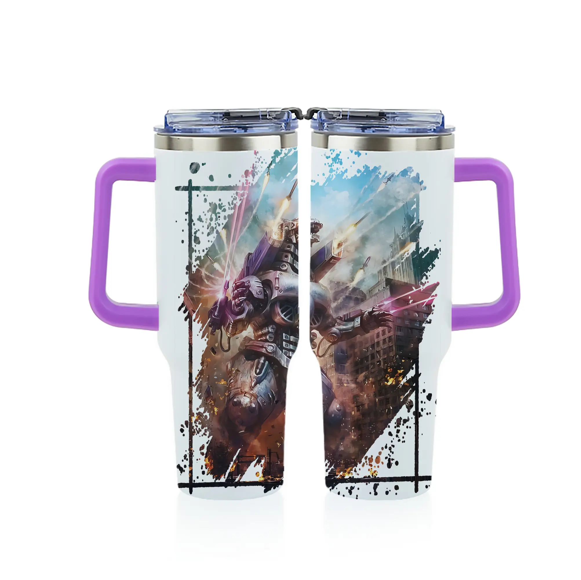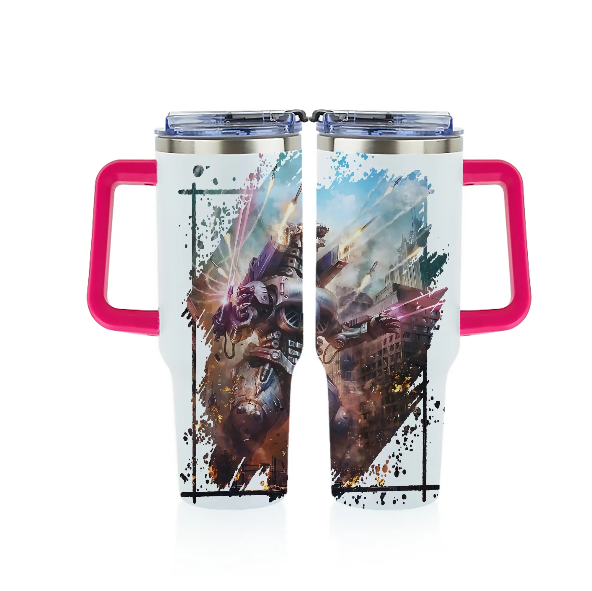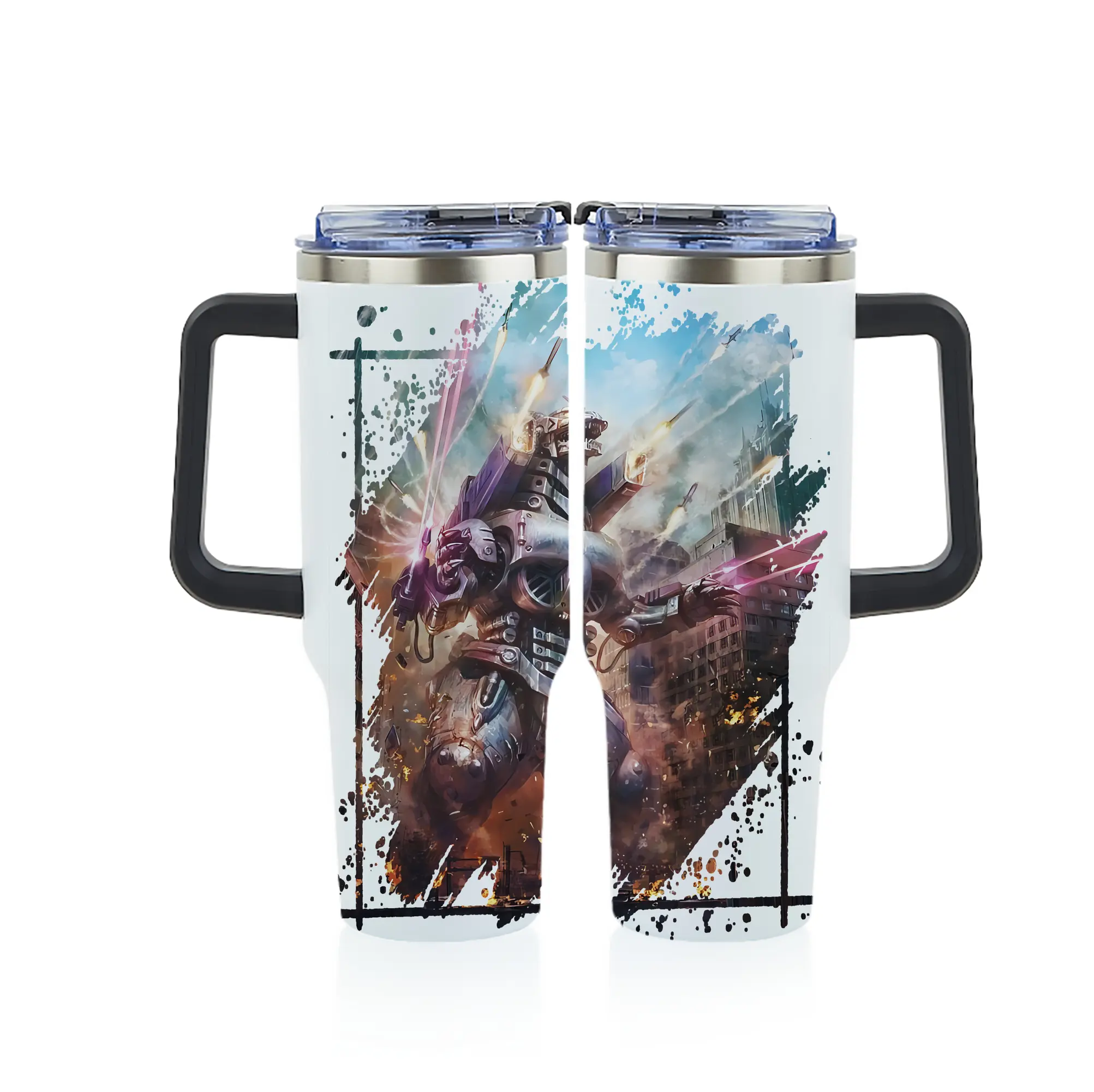 ゴジラ グッズ,メカゴジラ - 1200mL フルプリント車用タンブラー ・ 304ステンレス 内側 ・ 201ステンレス 外側 ・ 保温 保冷 ・ 通勤 ドライブ アウトドア用