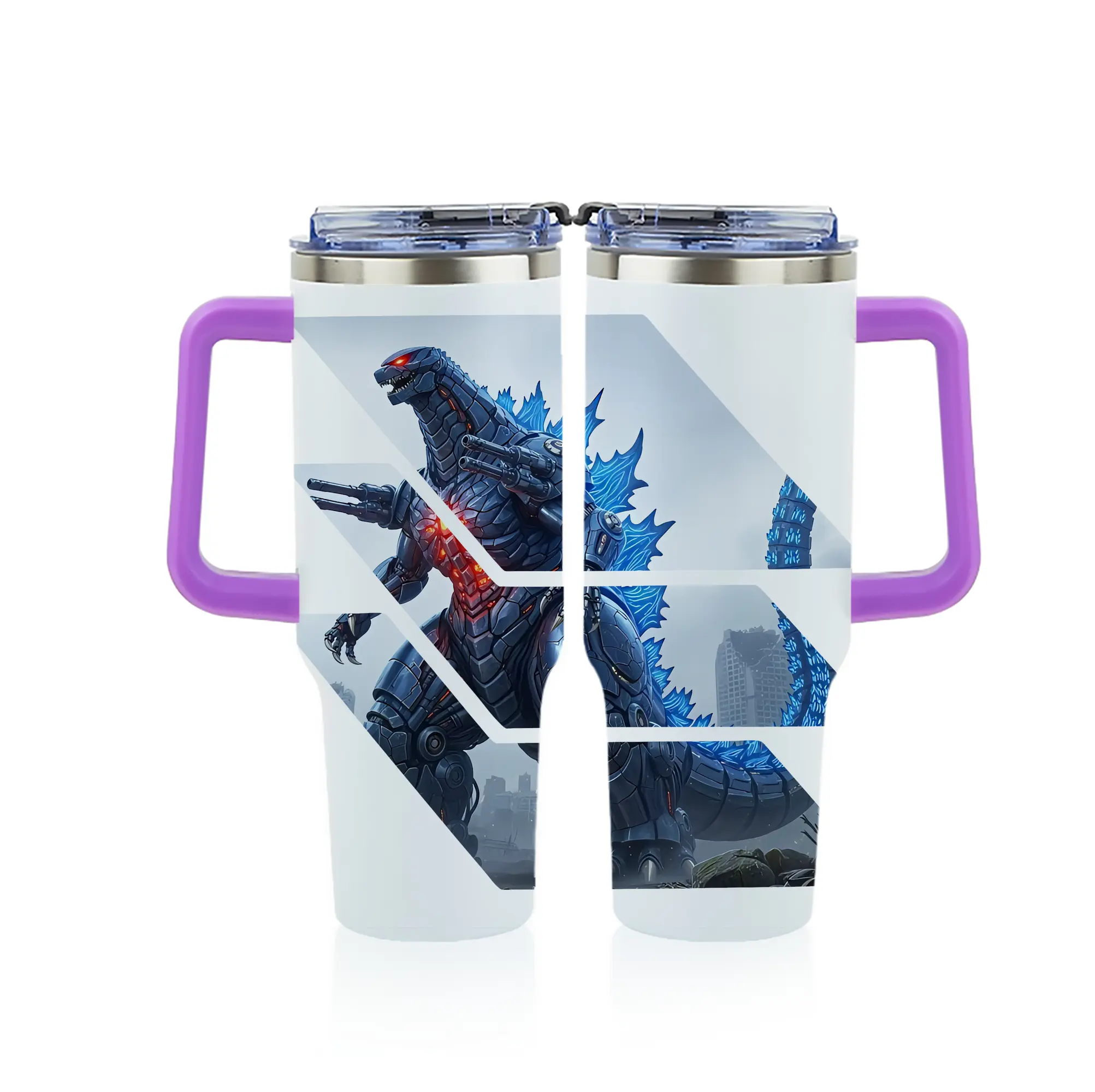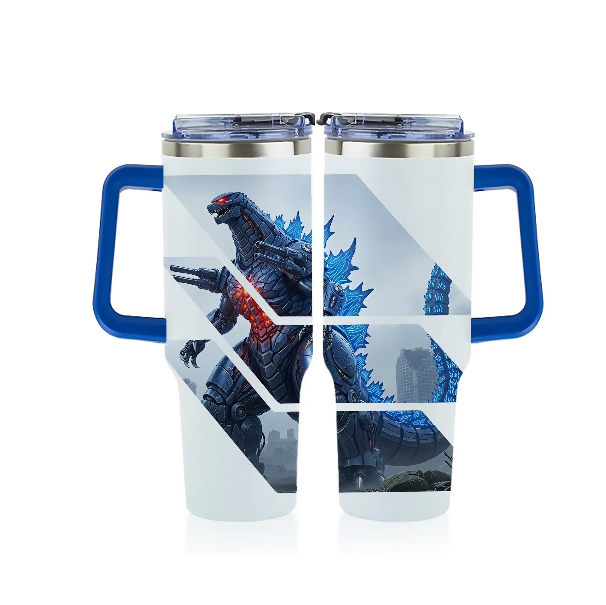 ゴジラ グッズ,メカゴジラ - 1200mL フルプリント車用タンブラー ・ 304ステンレス 内側 ・ 201ステンレス 外側 ・ 保温 保冷 ・ 通勤 ドライブ アウトドア用