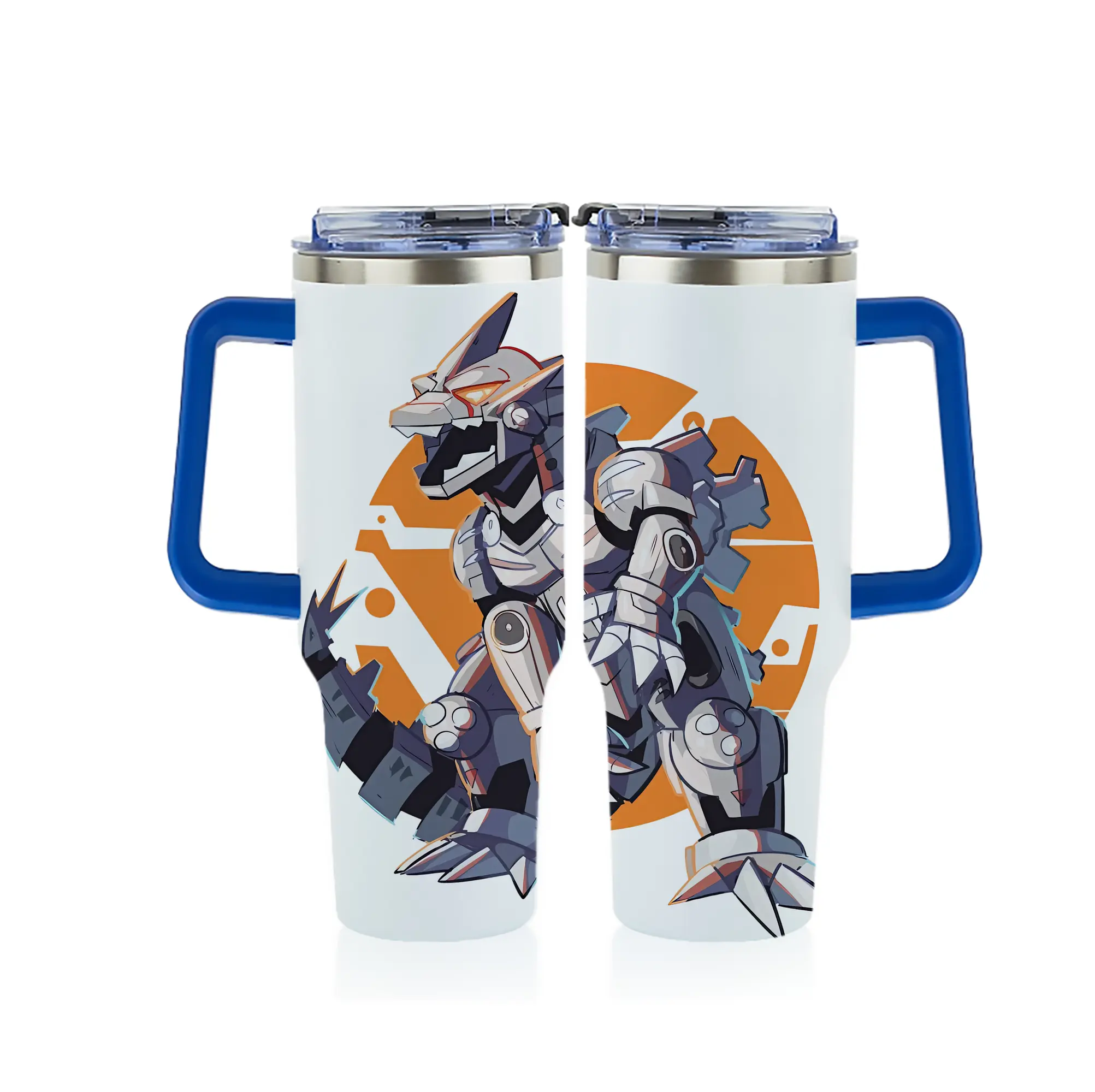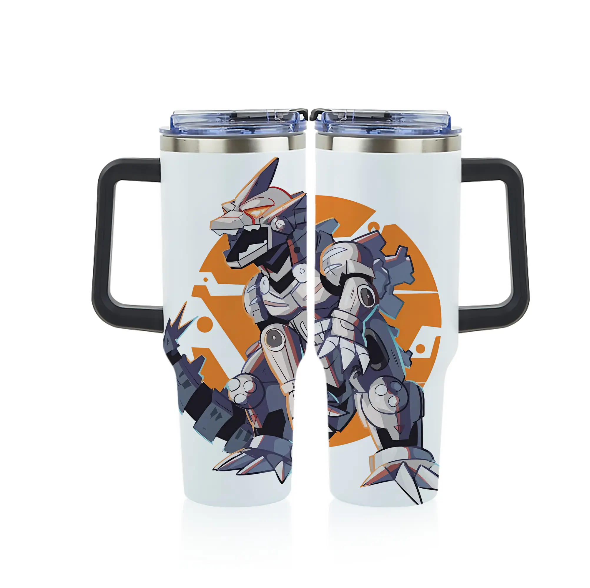 ゴジラ グッズ,メカゴジラ - 1200mL フルプリント車用タンブラー ・ 304ステンレス 内側 ・ 201ステンレス 外側 ・ 保温 保冷 ・ 通勤 ドライブ アウトドア用