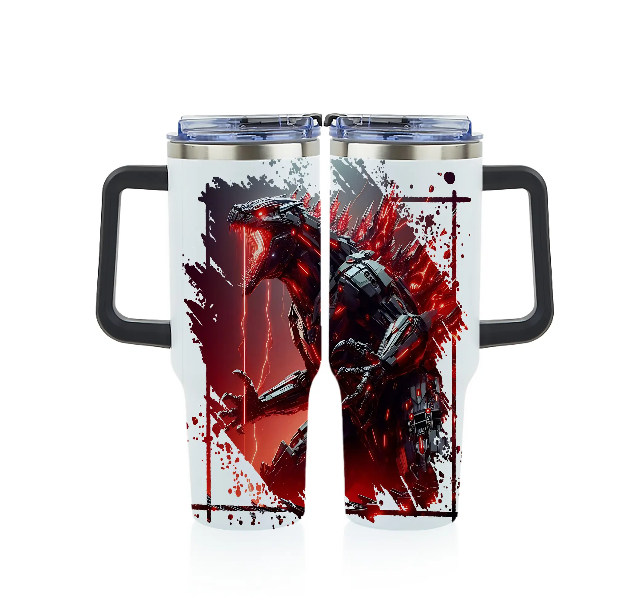 ゴジラ グッズ,メカゴジラ - 1200mL フルプリント車用タンブラー ・ 304ステンレス 内側 ・ 201ステンレス 外側 ・ 保温 保冷 ・ 通勤 ドライブ アウトドア用
