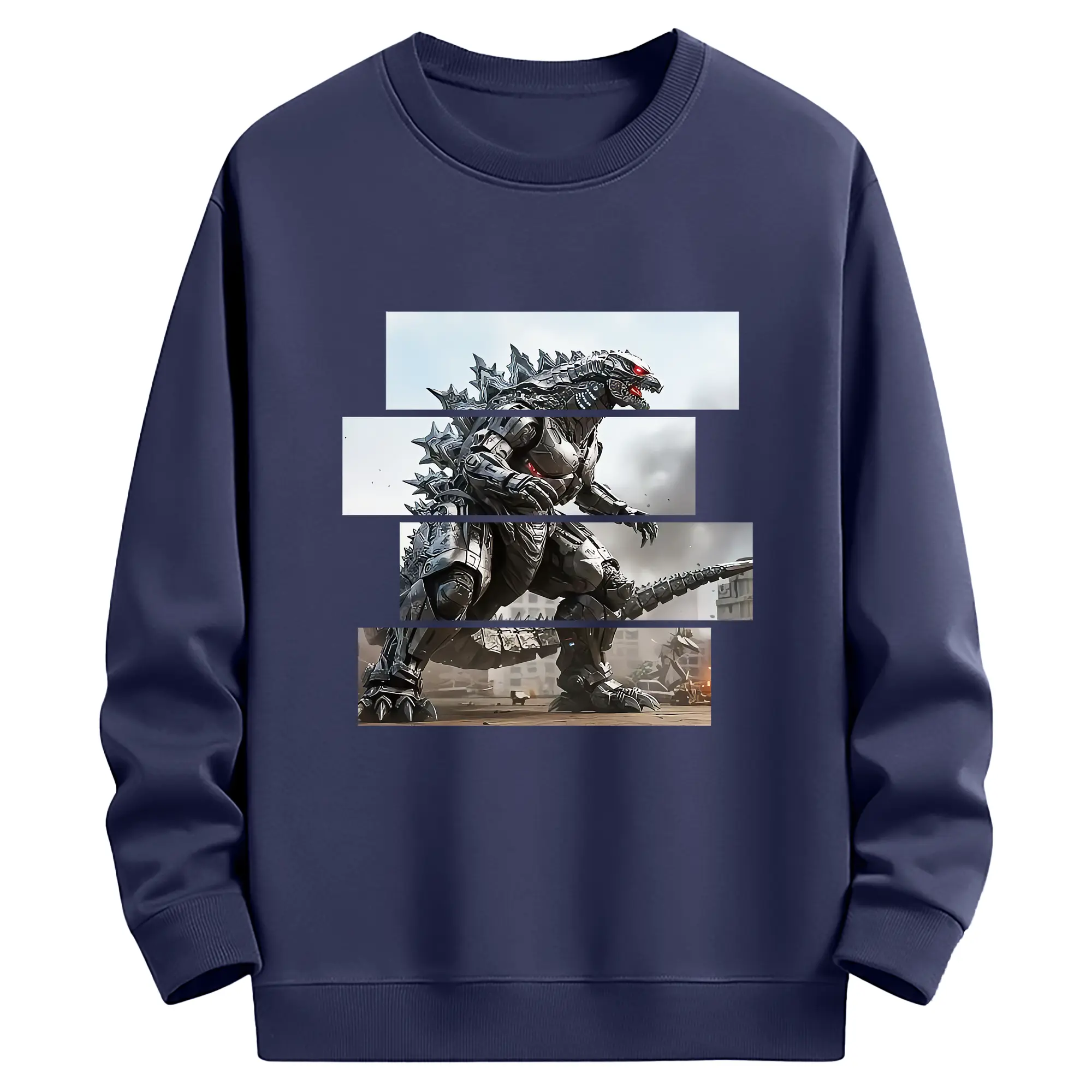 ゴジラ グッズ,メカゴジラ - 薄手 クルーネック スウェット 裏毛260g · ポリエステル 春秋向け カジュアル 男女兼用 · トレーナー デイリー スポーツ 散歩に最適
