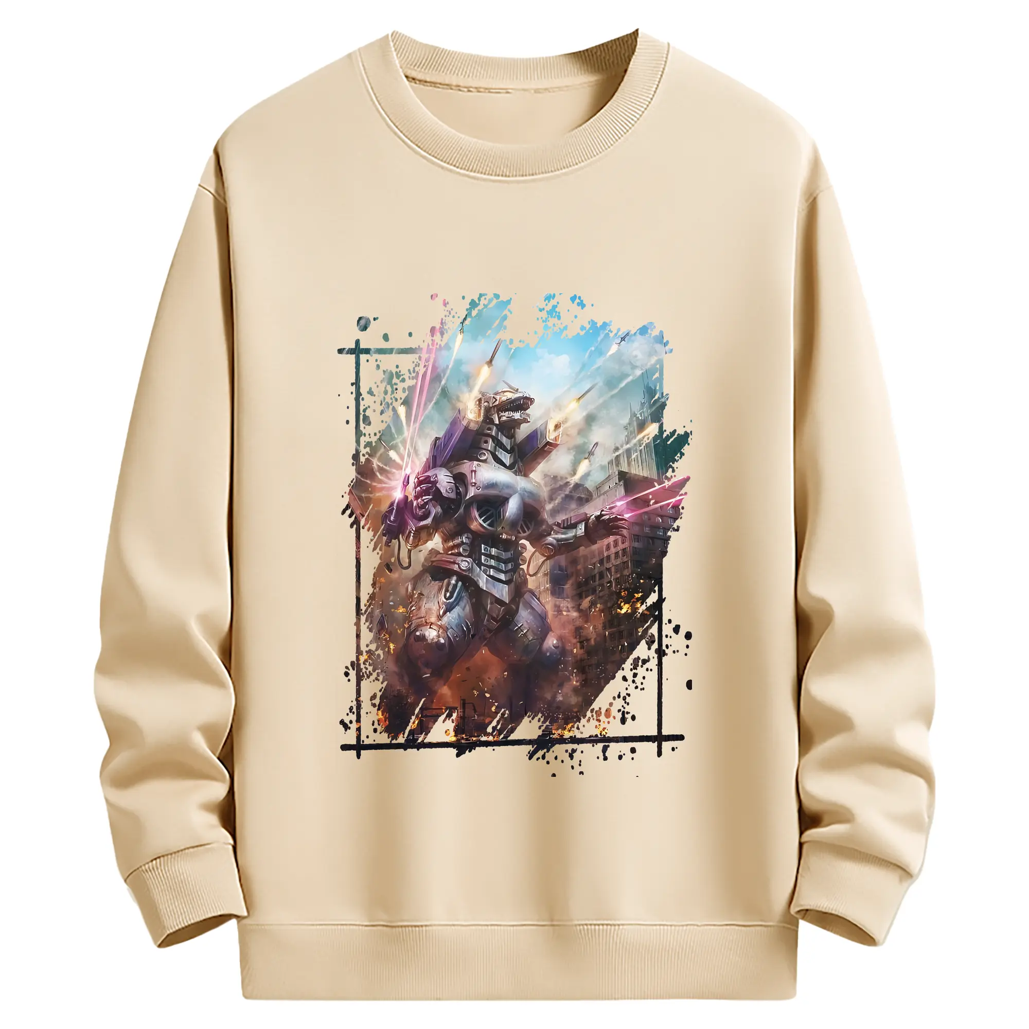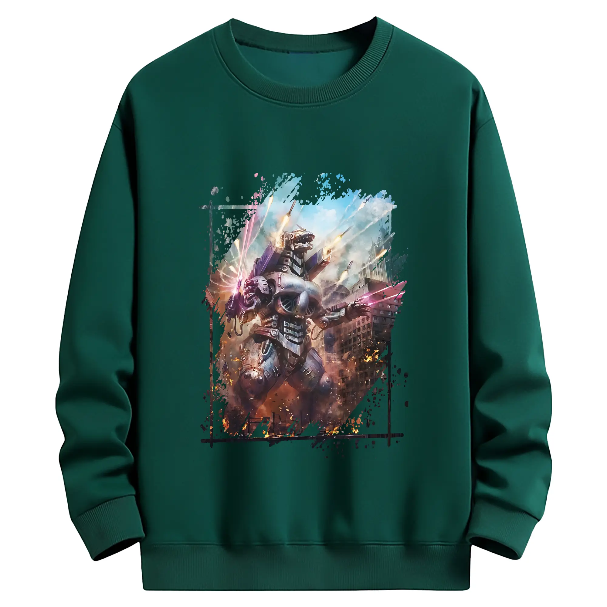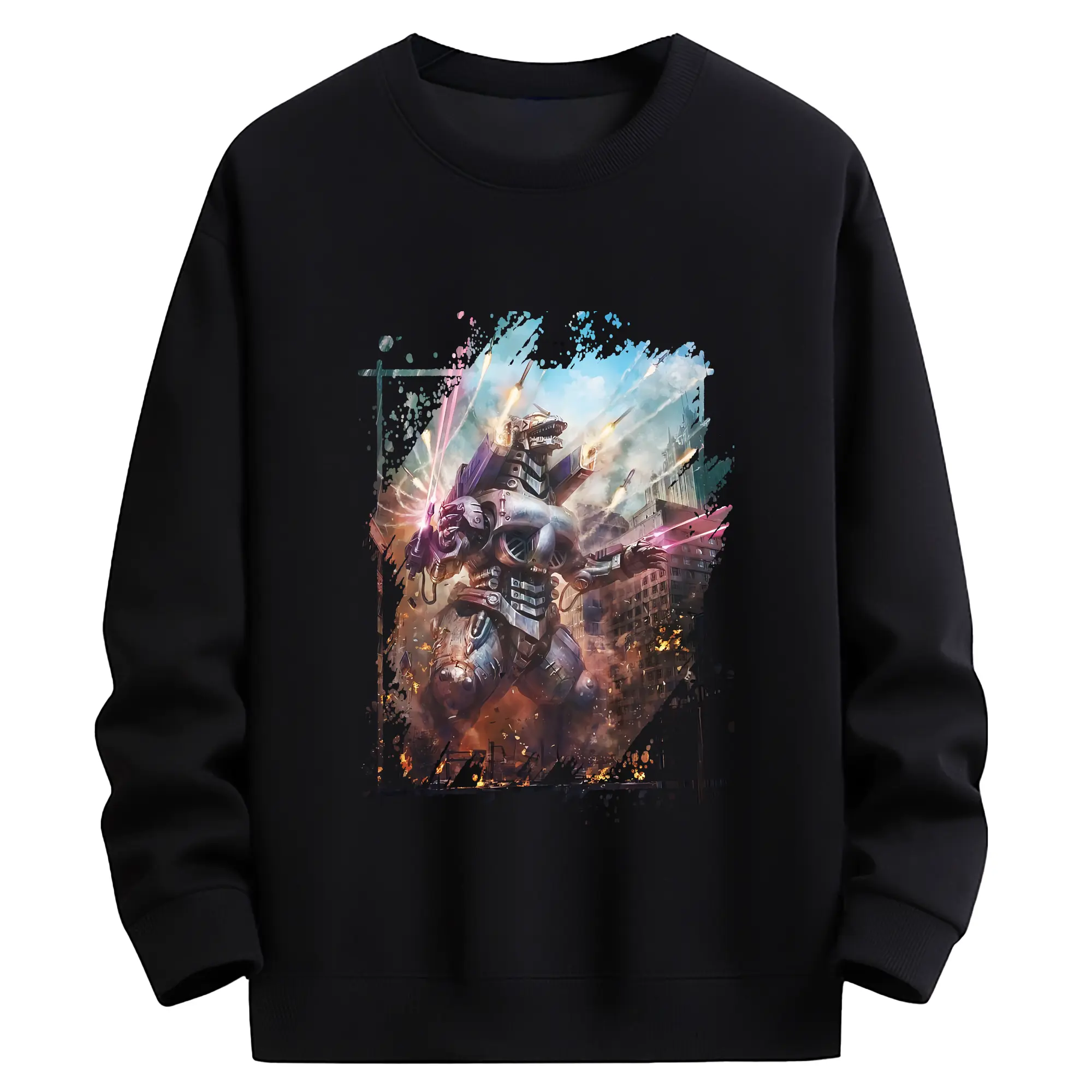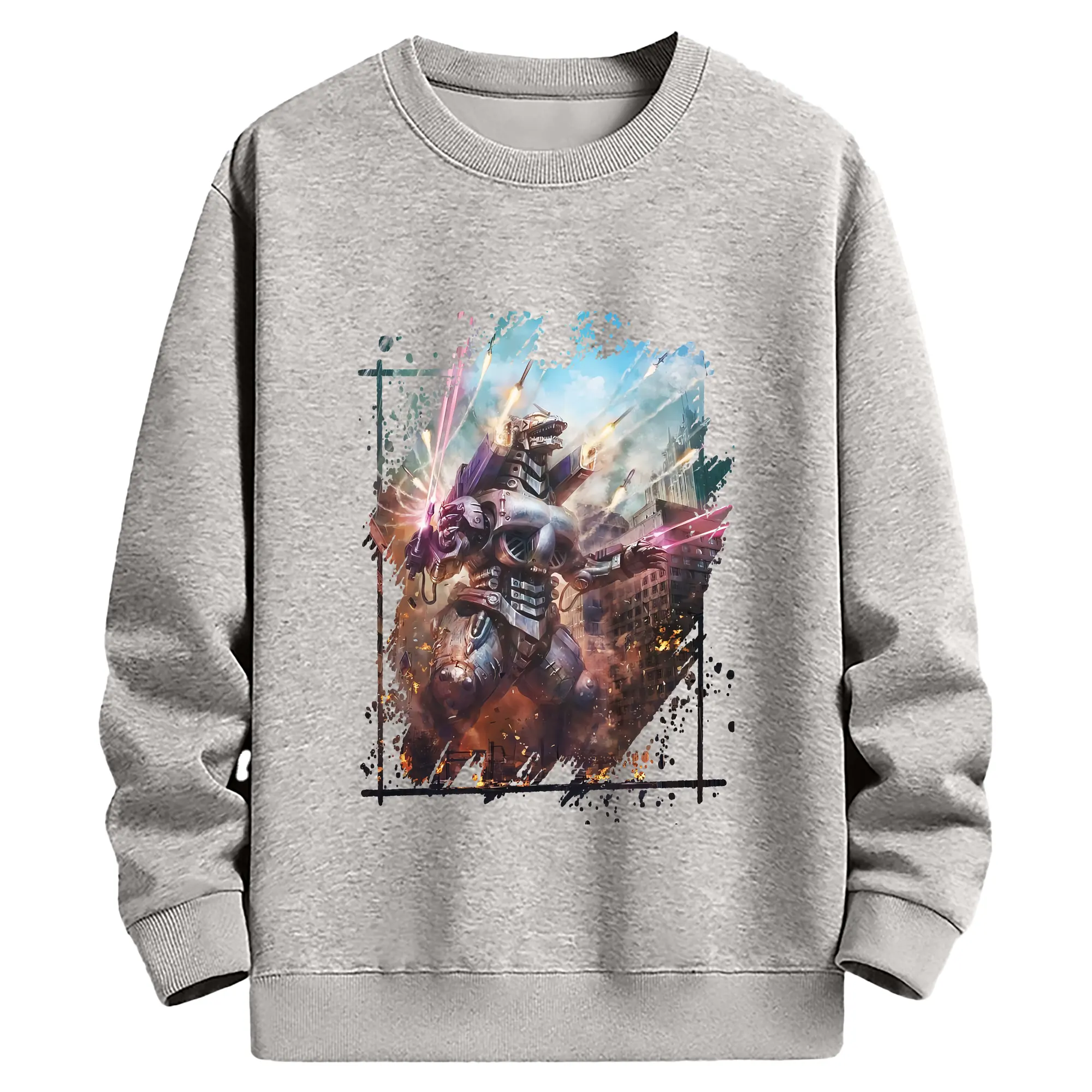 ゴジラ グッズ,メカゴジラ - 薄手 クルーネック スウェット 裏毛260g · ポリエステル 春秋向け カジュアル 男女兼用 · トレーナー デイリー スポーツ 散歩に最適