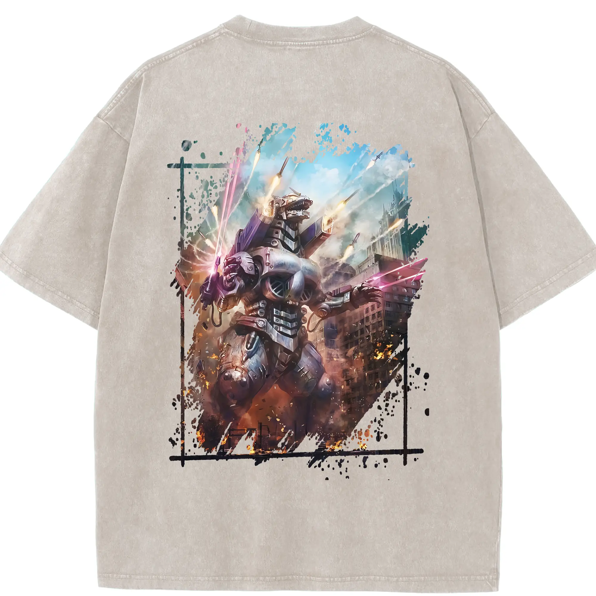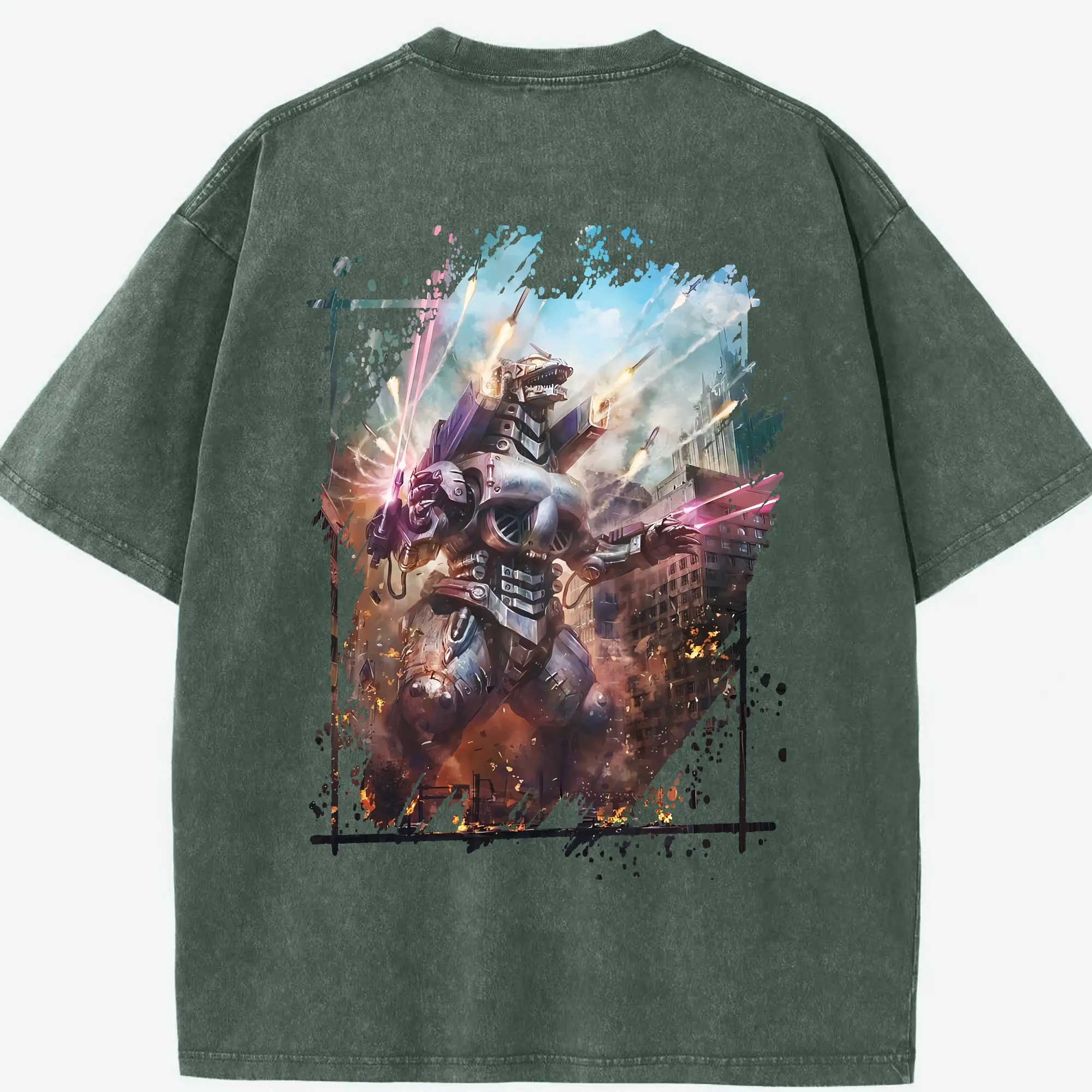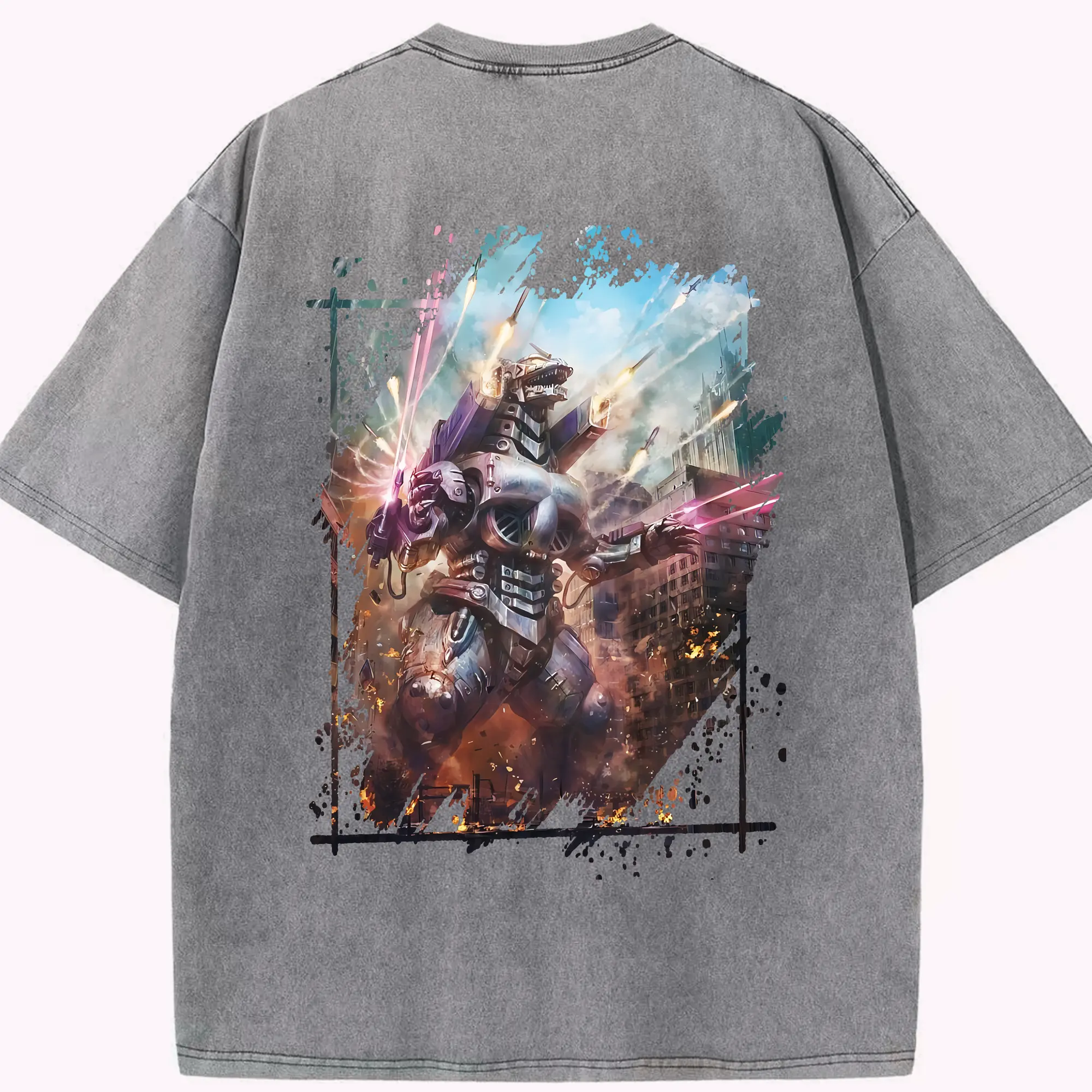 ゴジラ グッズ,メカゴジラ - 綿100% 半袖Tシャツ ・ バックプリント ・ 快適 通気性 ・ 日常使い 散歩 スポーツ用