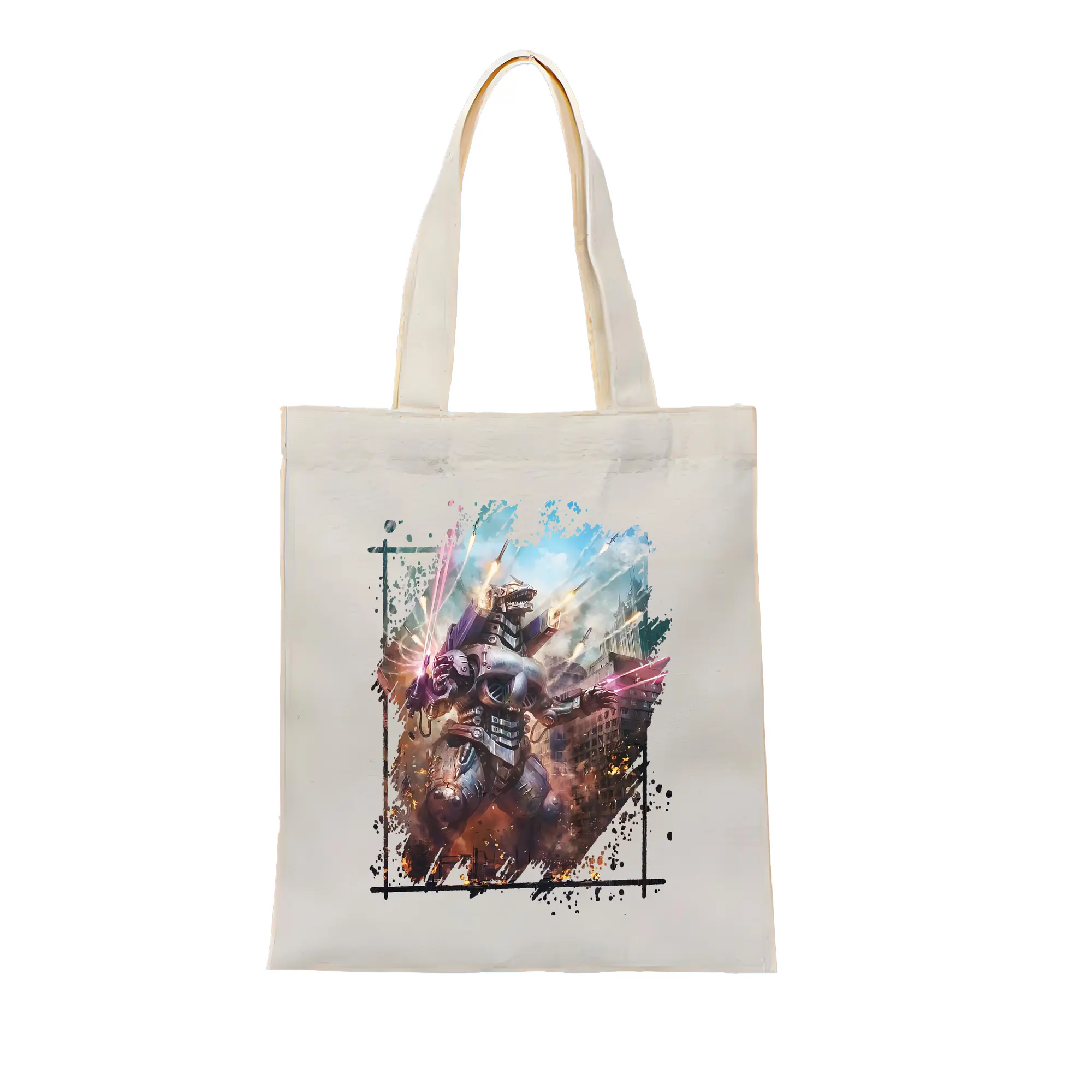 ゴジラ グッズ,メカゴジラ - 縦型キャンバス手提げバッグ(トートバッグ) ・ キャンバス素材 ・ ショッピング用 ・ 軽量 丈夫 お手入れ簡単
