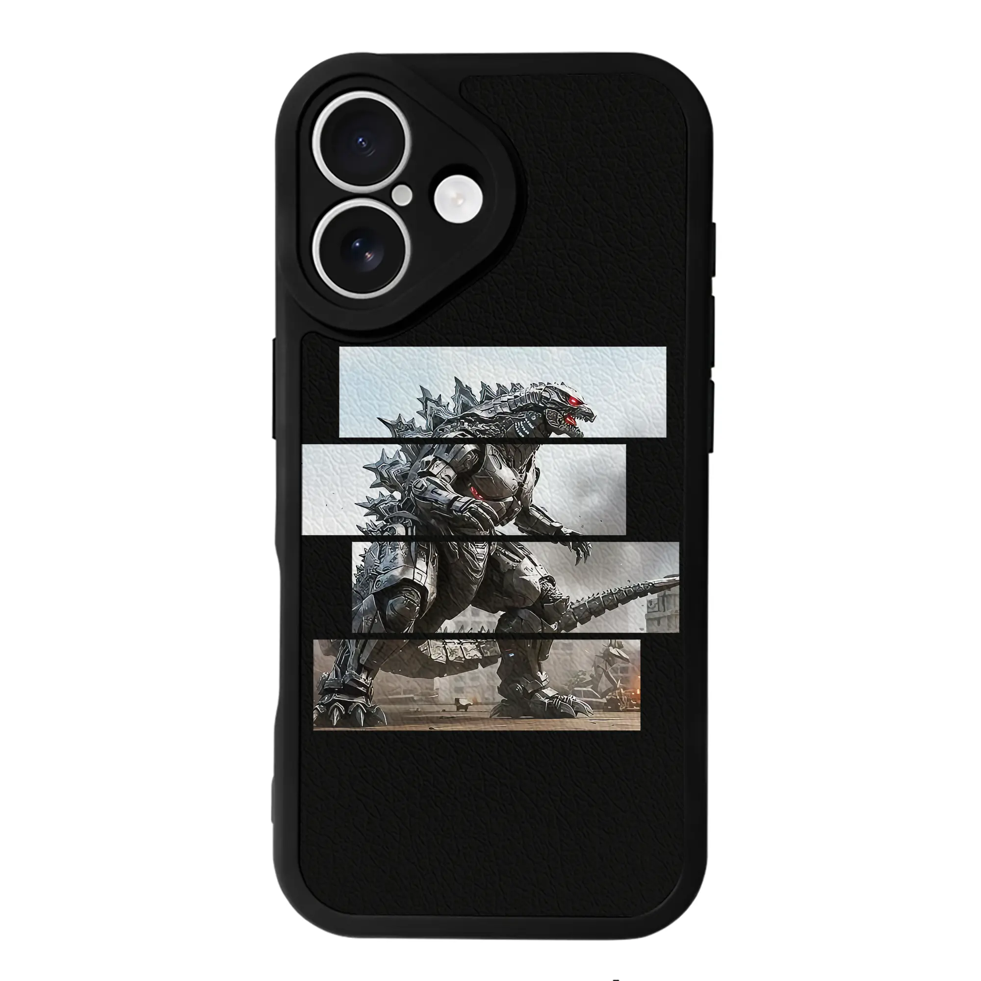 ゴジラ グッズ,メカゴジラ - IPhone 16シリーズ対応 ・ シリコンスマホケース ・ レザー調 ・ 高精度フィット ・ 耐衝撃 ・ ワイヤレス充電対応 ・ 精密カット