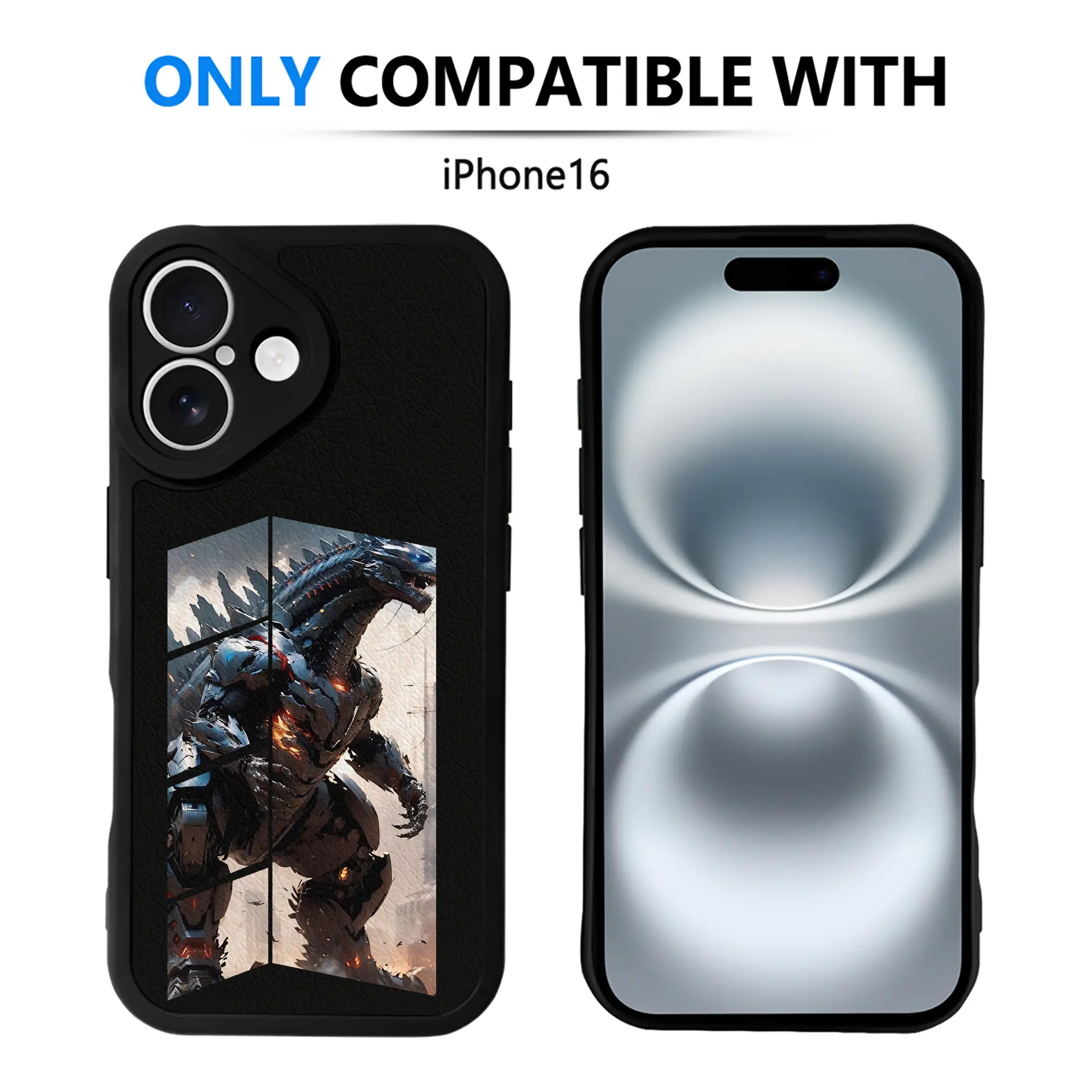 ゴジラ グッズ,メカゴジラ - IPhone 16シリーズ対応 ・ シリコンスマホケース ・ レザー調 ・ 高精度フィット ・ 耐衝撃 ・ ワイヤレス充電対応 ・ 精密カット