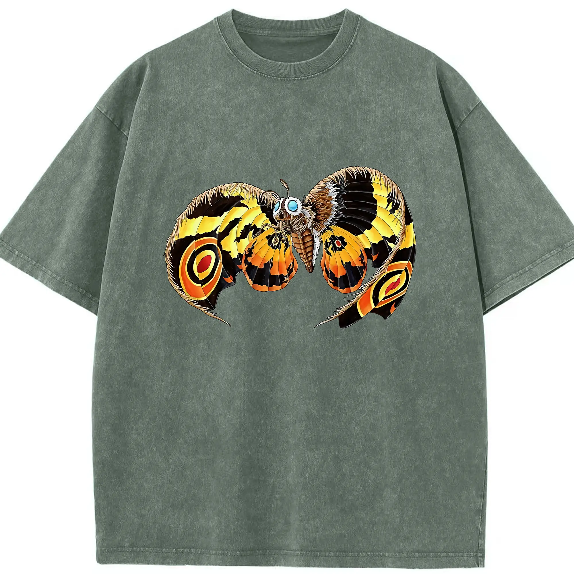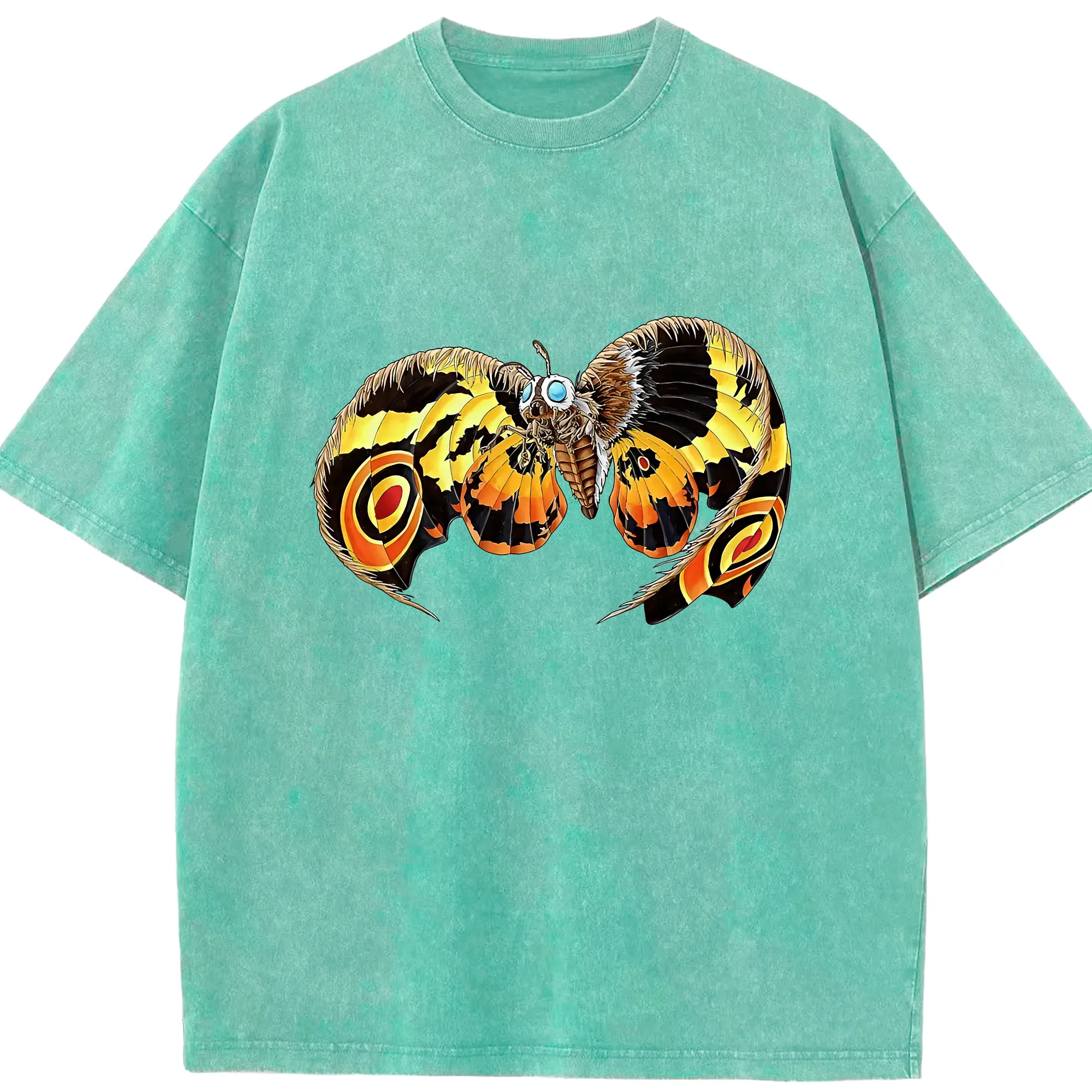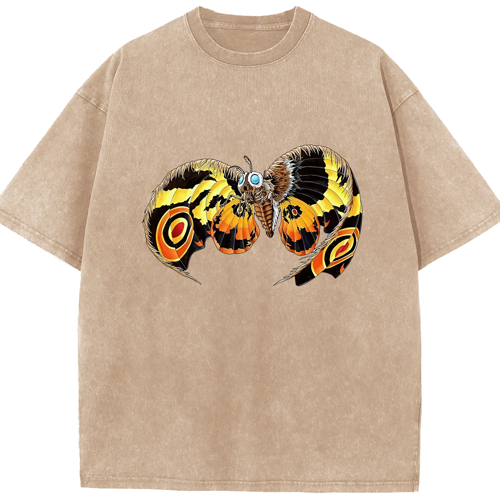 ゴジラ グッズ,モスラ - 綿100% ヴィンテージ風 半袖Tシャツ ・ 背面プリント ・ 柔らか肌触り ・ 通気性 快適 ・ スポーツ カジュアル 外出用