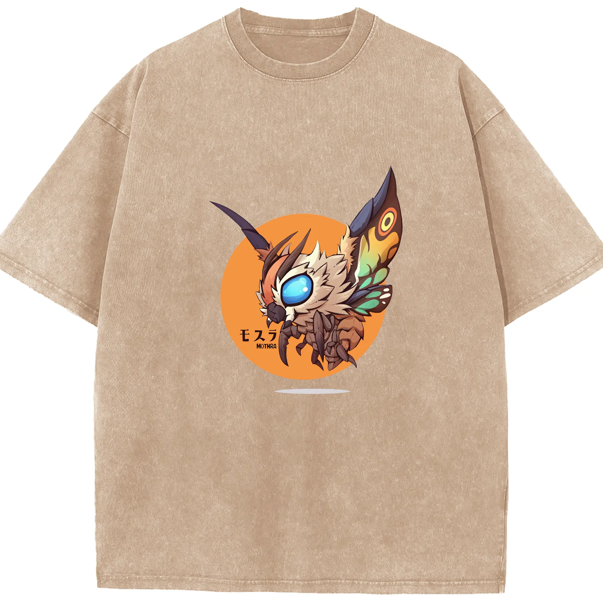 ゴジラ グッズ,モスラ - 綿100% ヴィンテージ風 半袖Tシャツ ・ 背面プリント ・ 柔らか肌触り ・ 通気性 快適 ・ スポーツ カジュアル 外出用