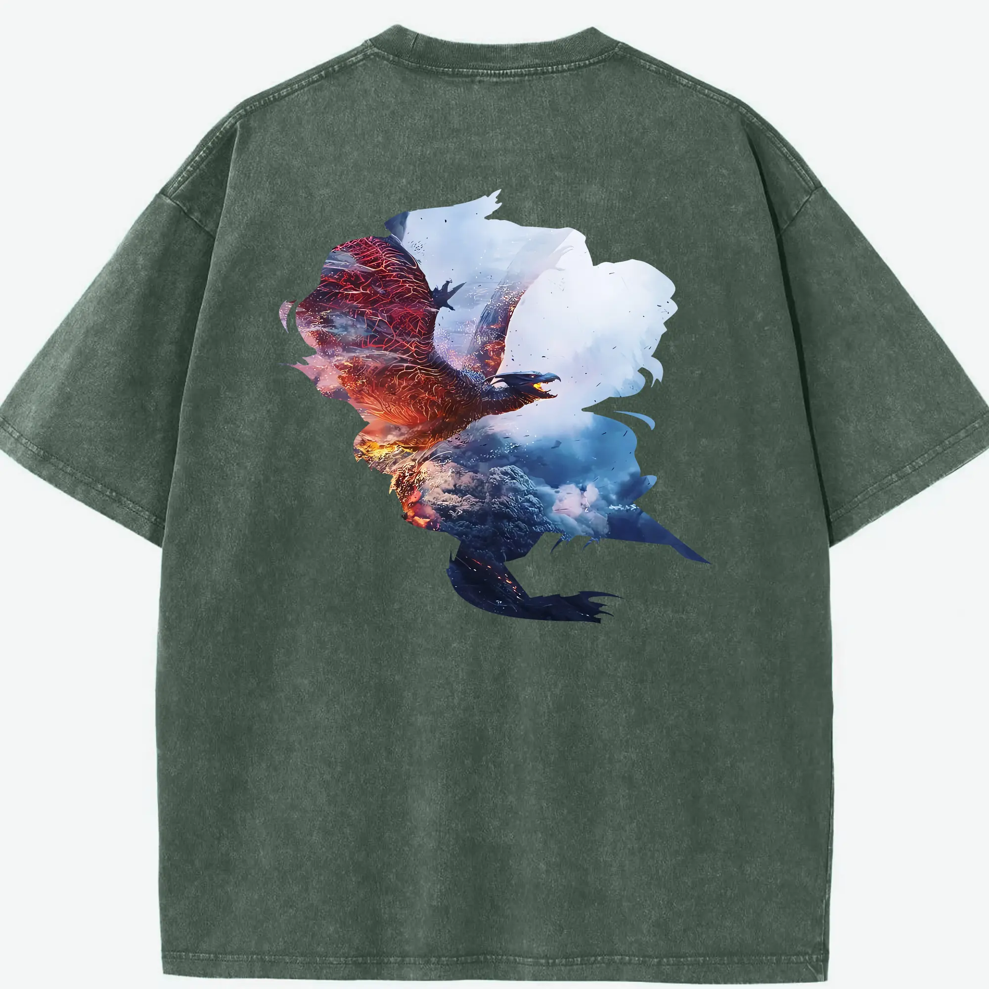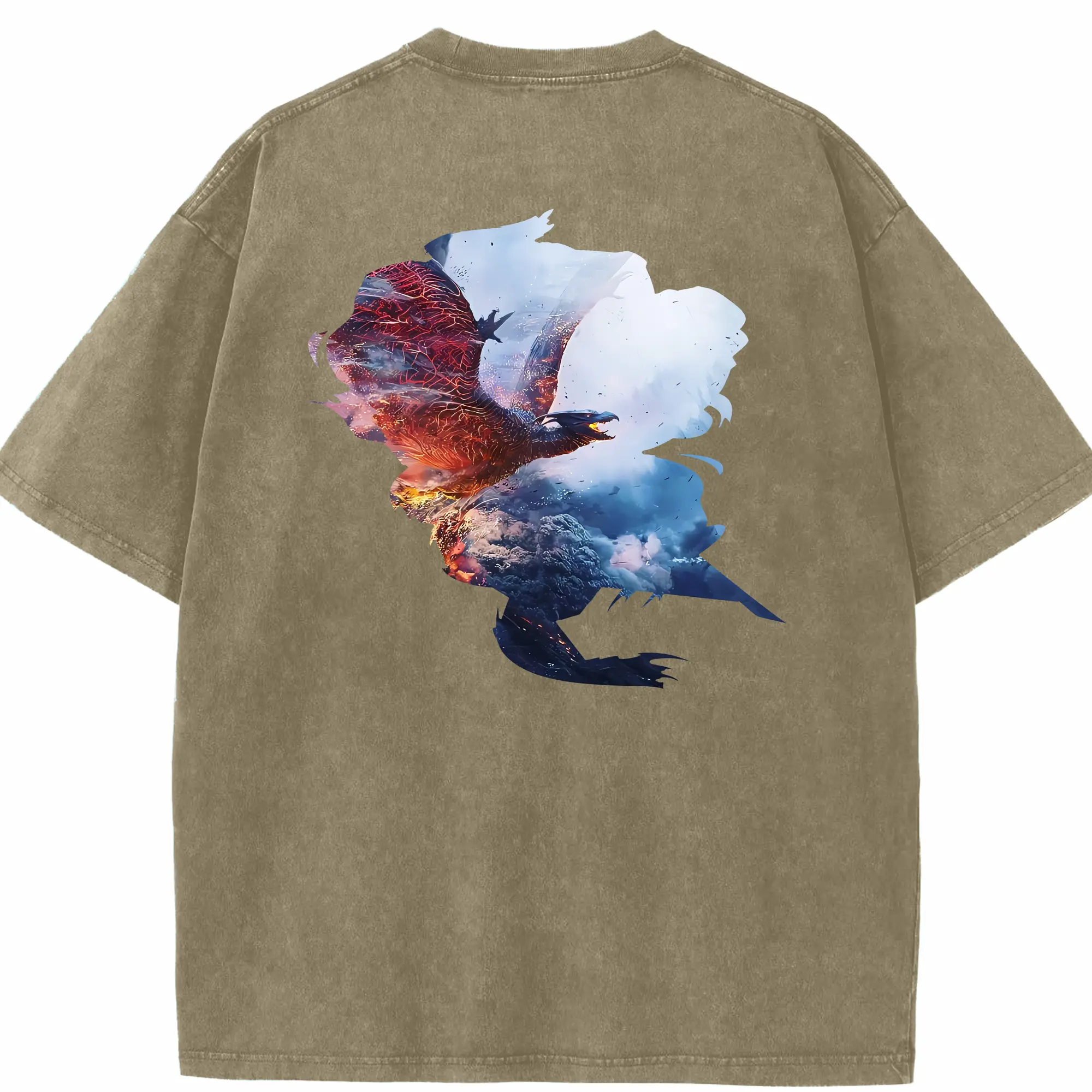 ゴジラ グッズ,ラドン - 綿100% ヴィンテージ風 半袖Tシャツ ・ フロントプリント ・ 柔らか肌触り ・ 通気性 快適 ・ スポーツ カジュアル 外出用