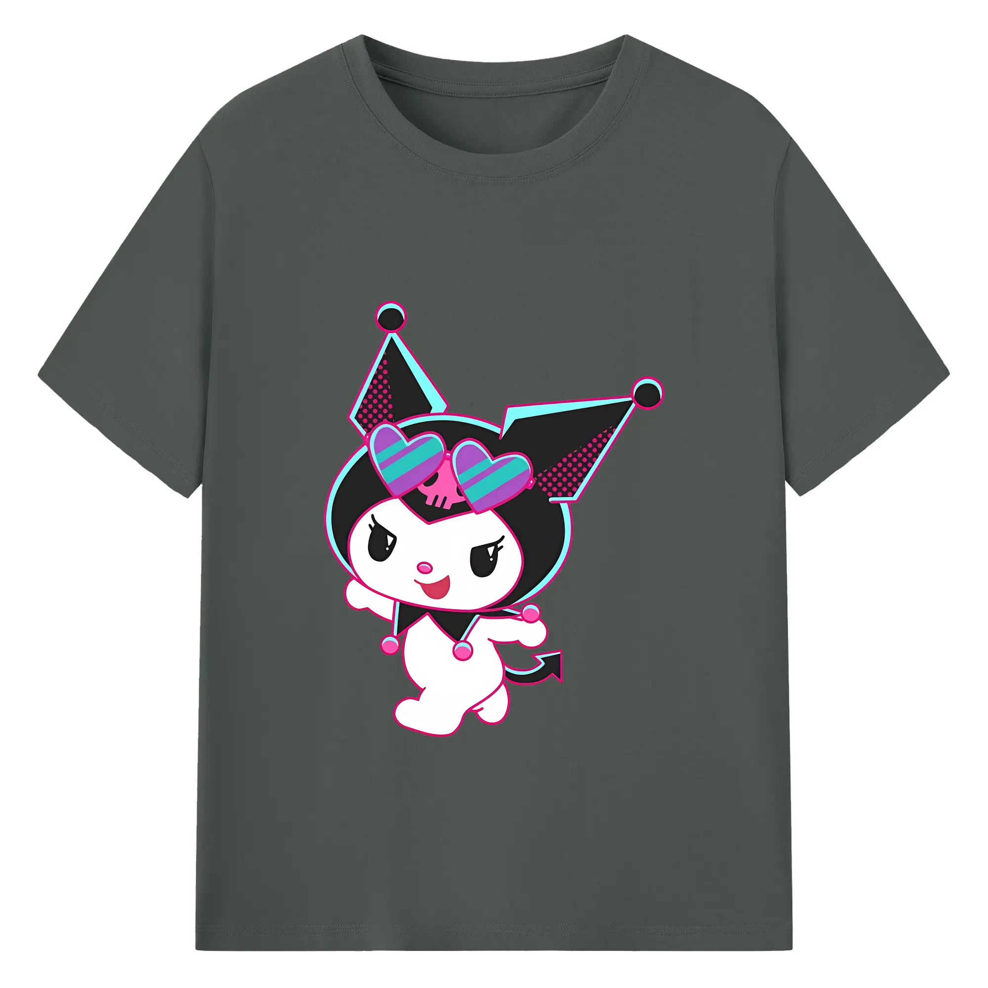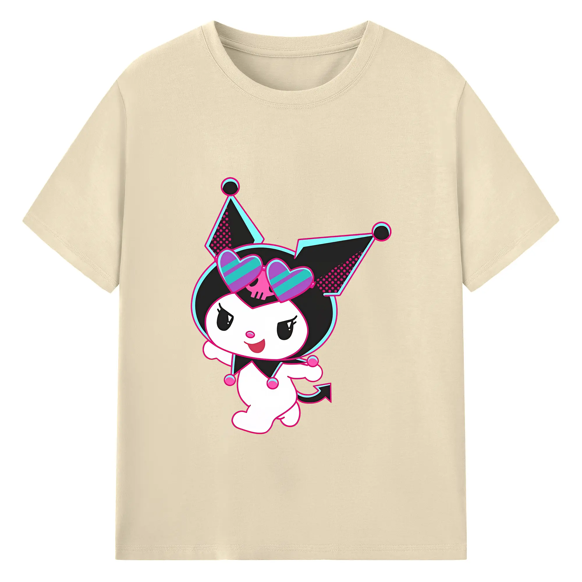サンリオ グッズ,クロミ - 綿100% ヴィンテージ風 半袖Tシャツ ・ フロントプリント ・ 柔らか肌触り ・ 通気性 快適 ・ スポーツ カジュアル 外出用