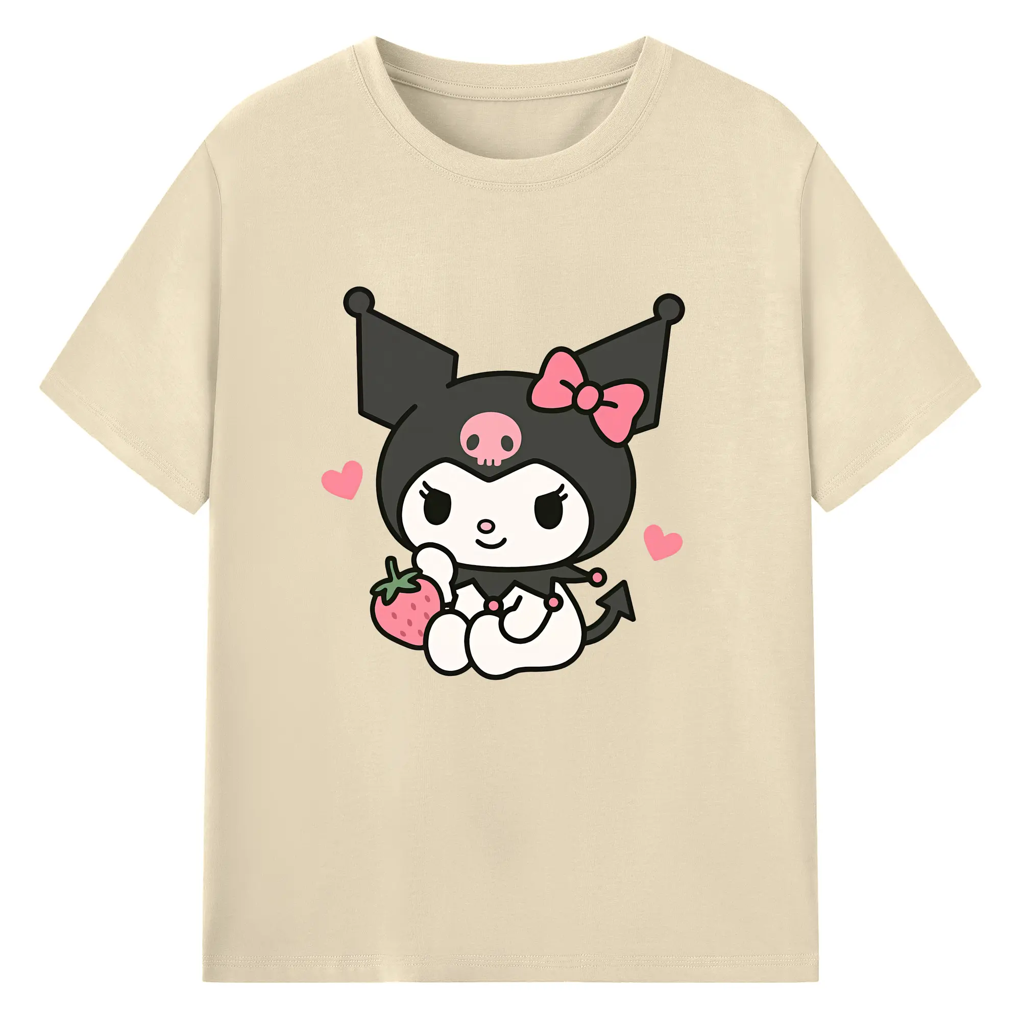 サンリオ グッズ,クロミ - 綿100% ヴィンテージ風 半袖Tシャツ ・ フロントプリント ・ 柔らか肌触り ・ 通気性 快適 ・ スポーツ カジュアル 外出用