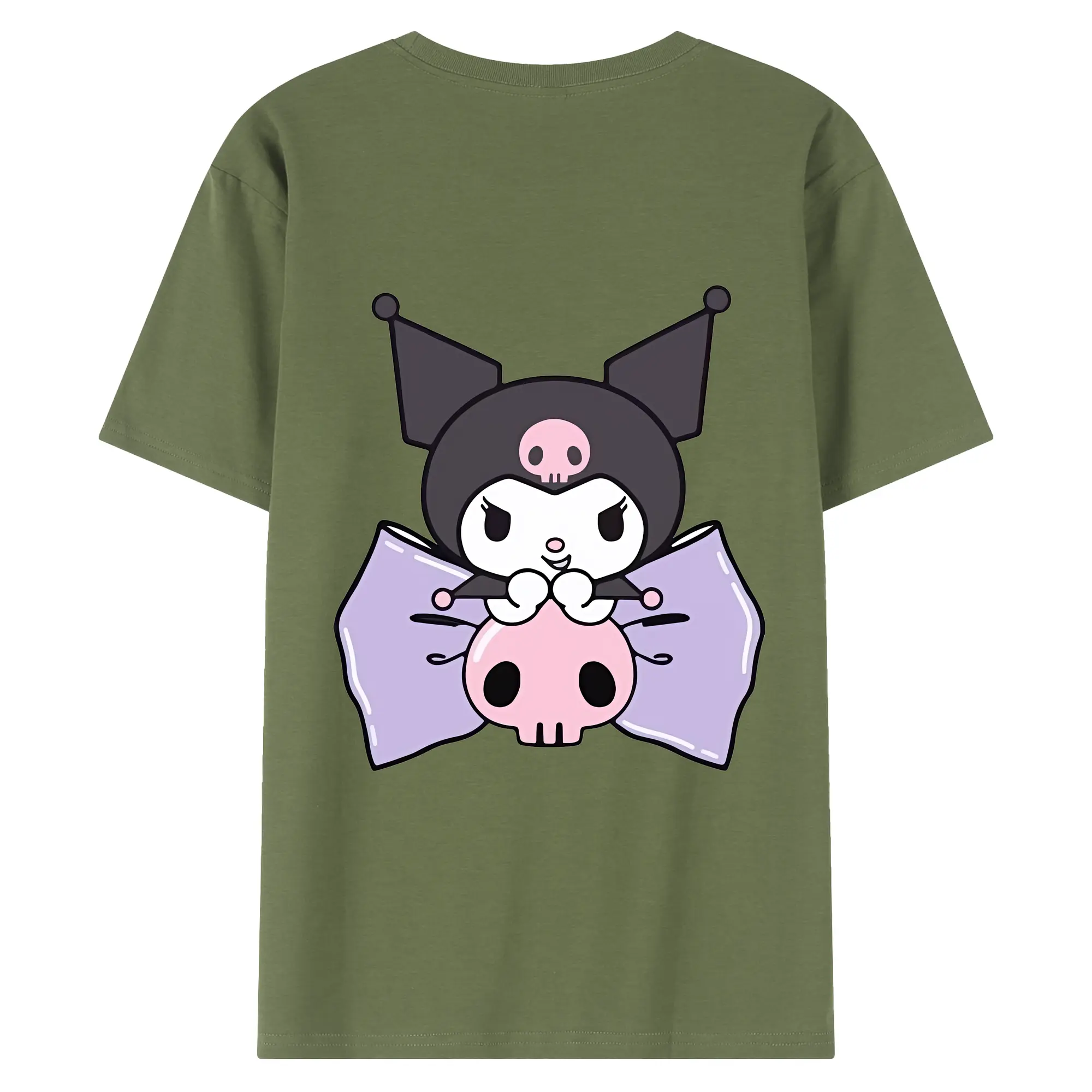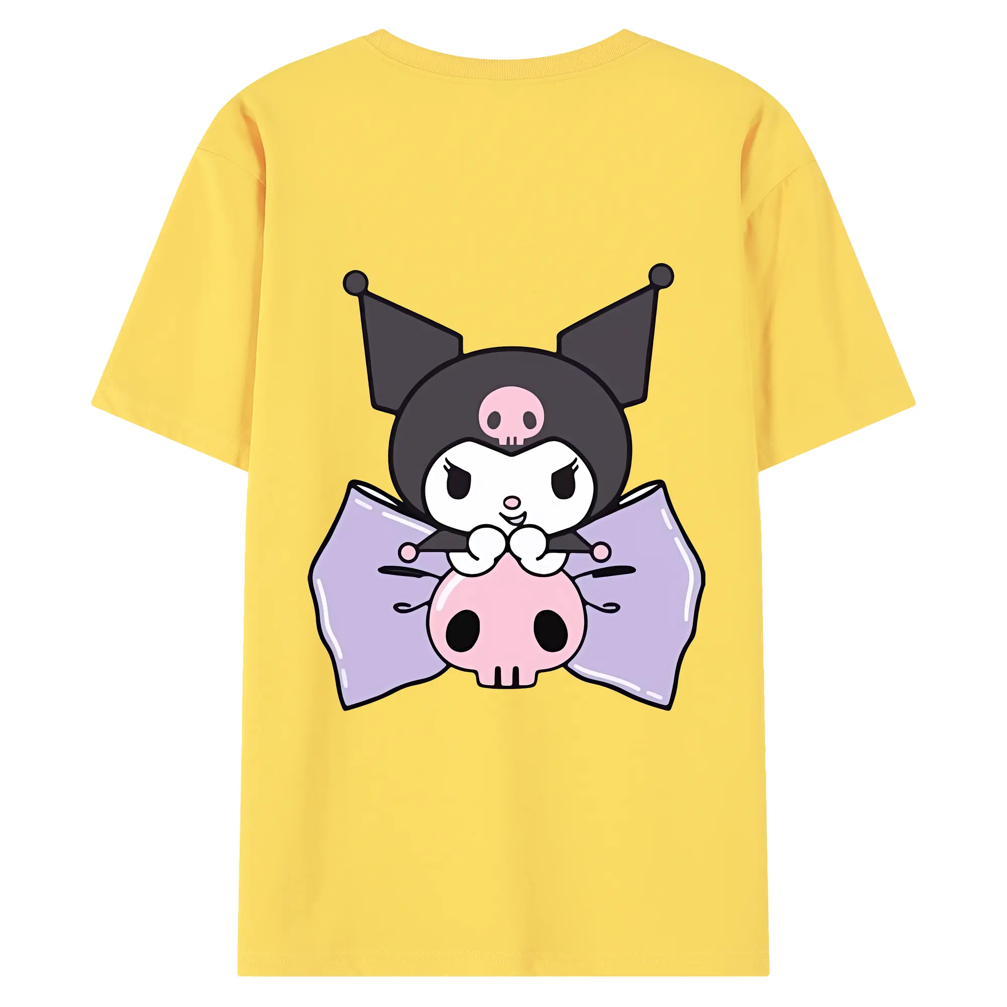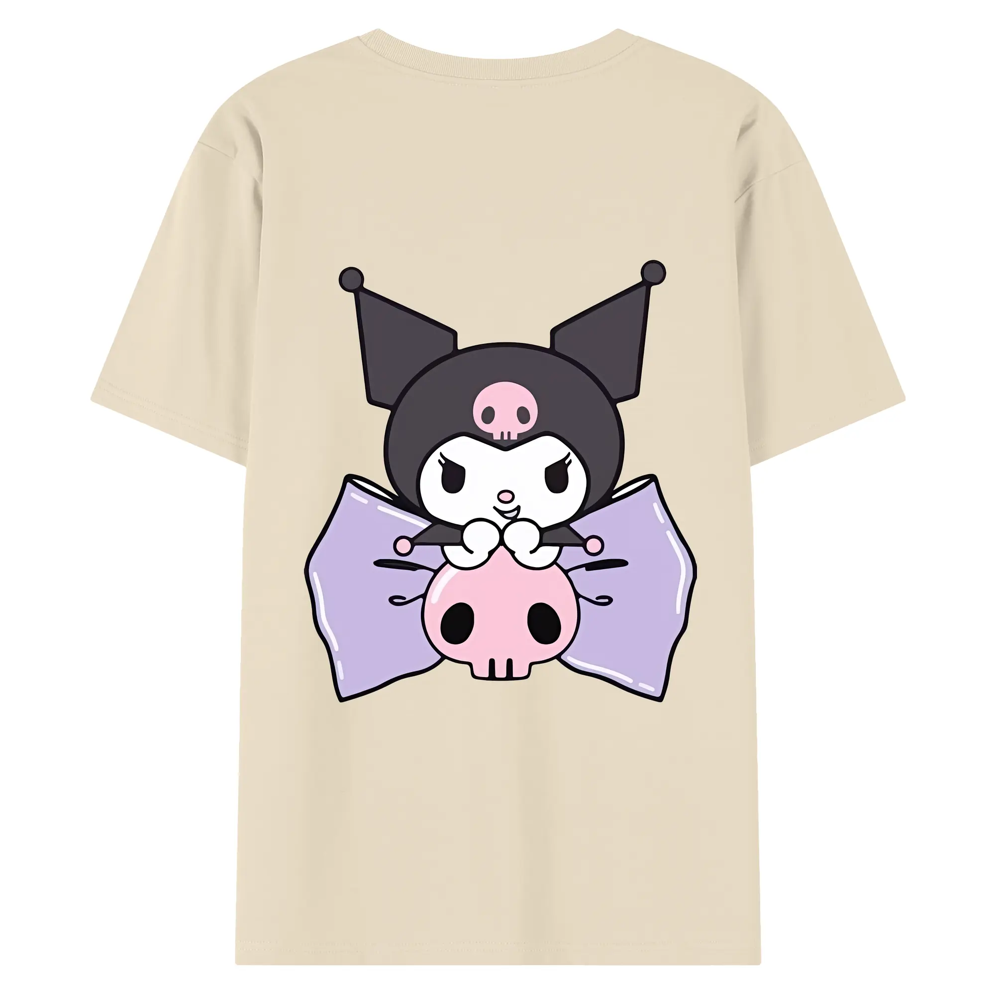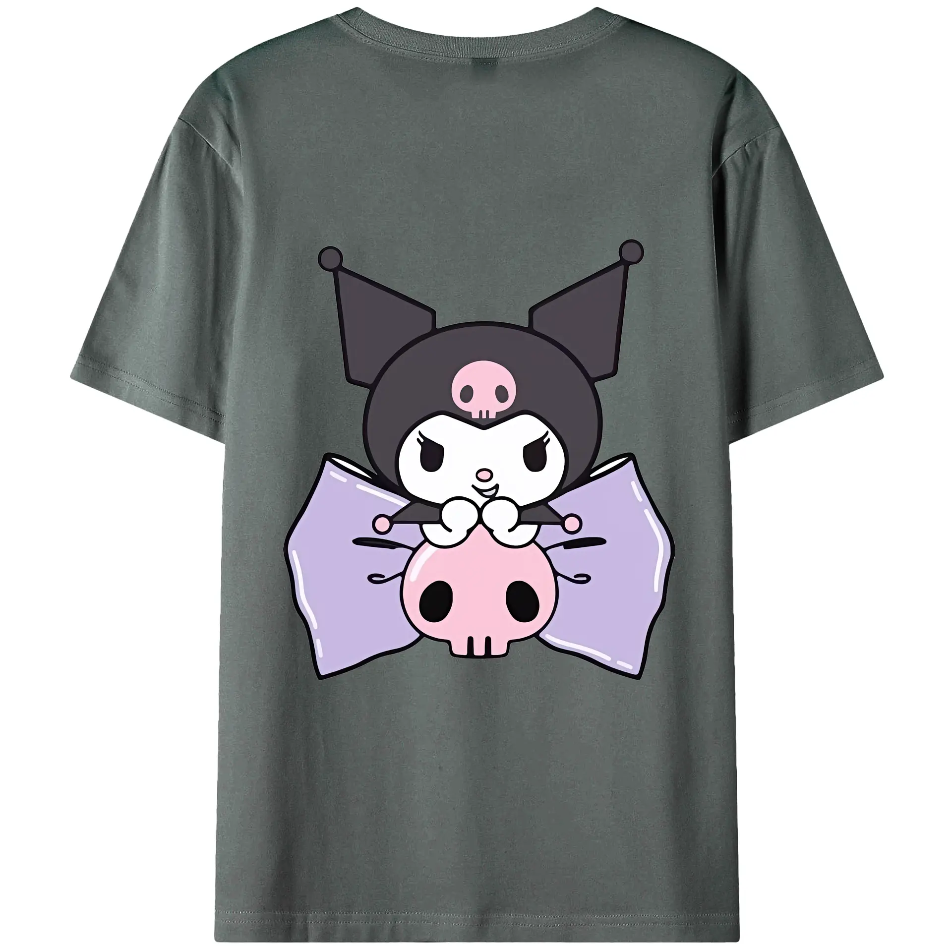 サンリオ グッズ,クロミ - 綿100% ヴィンテージ風 半袖Tシャツ ・ 背面プリント ・ 柔らか肌触り ・ 通気性 快適 ・ スポーツ カジュアル 外出用
