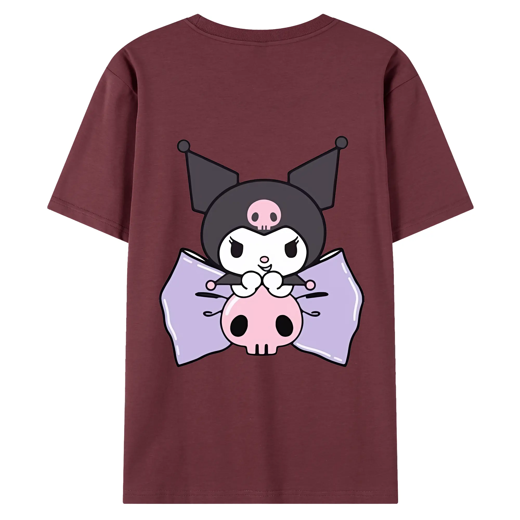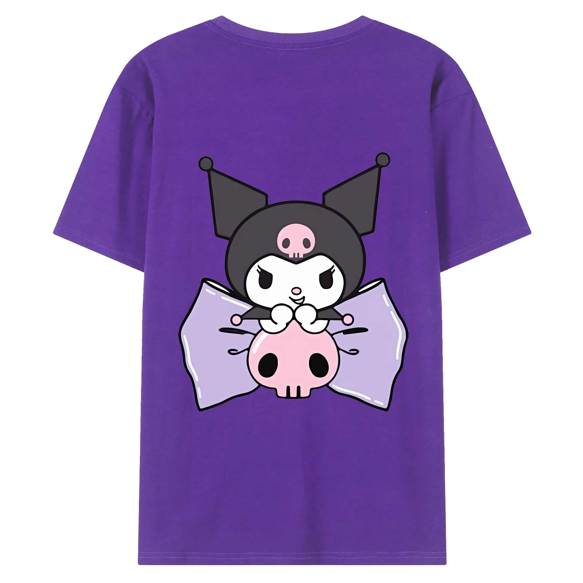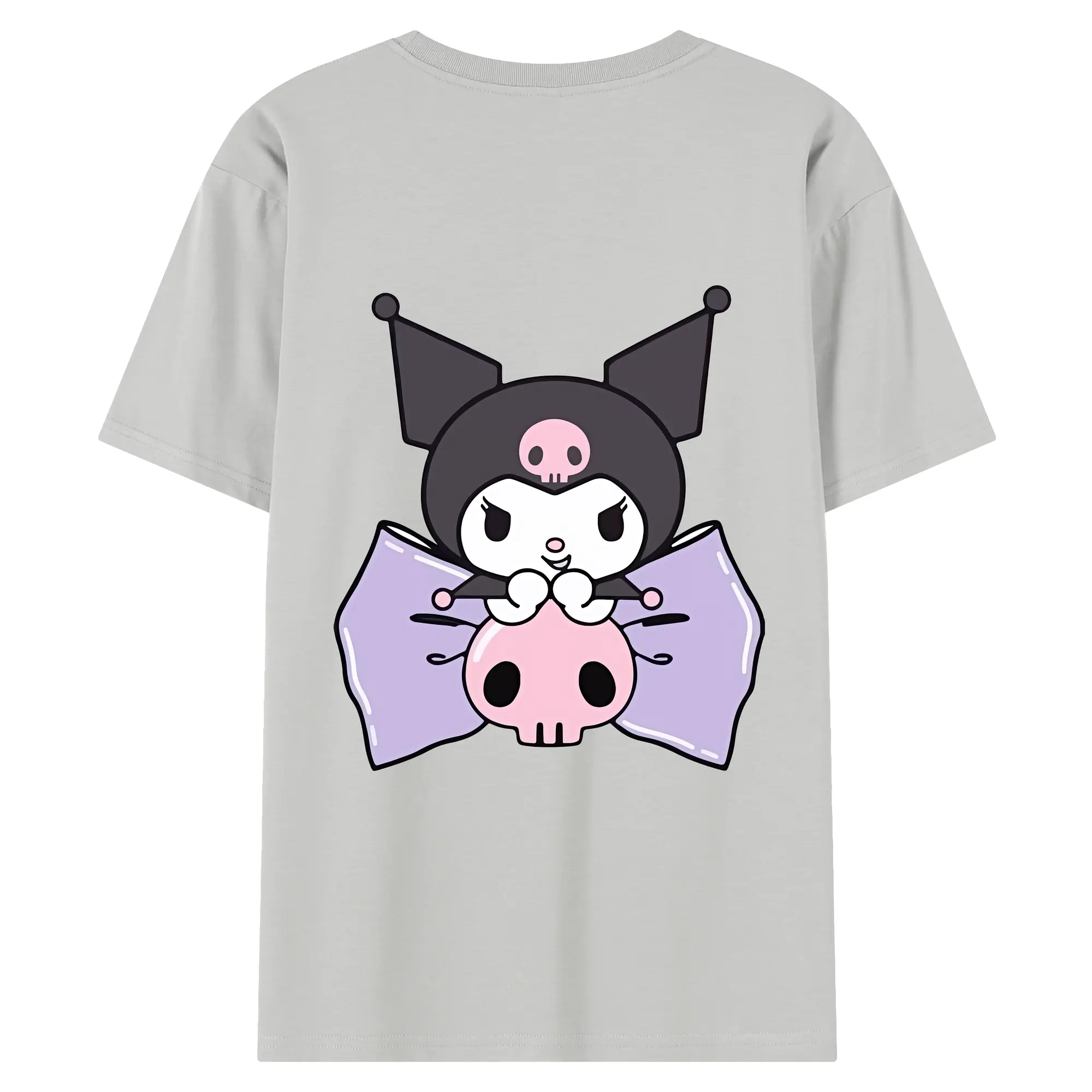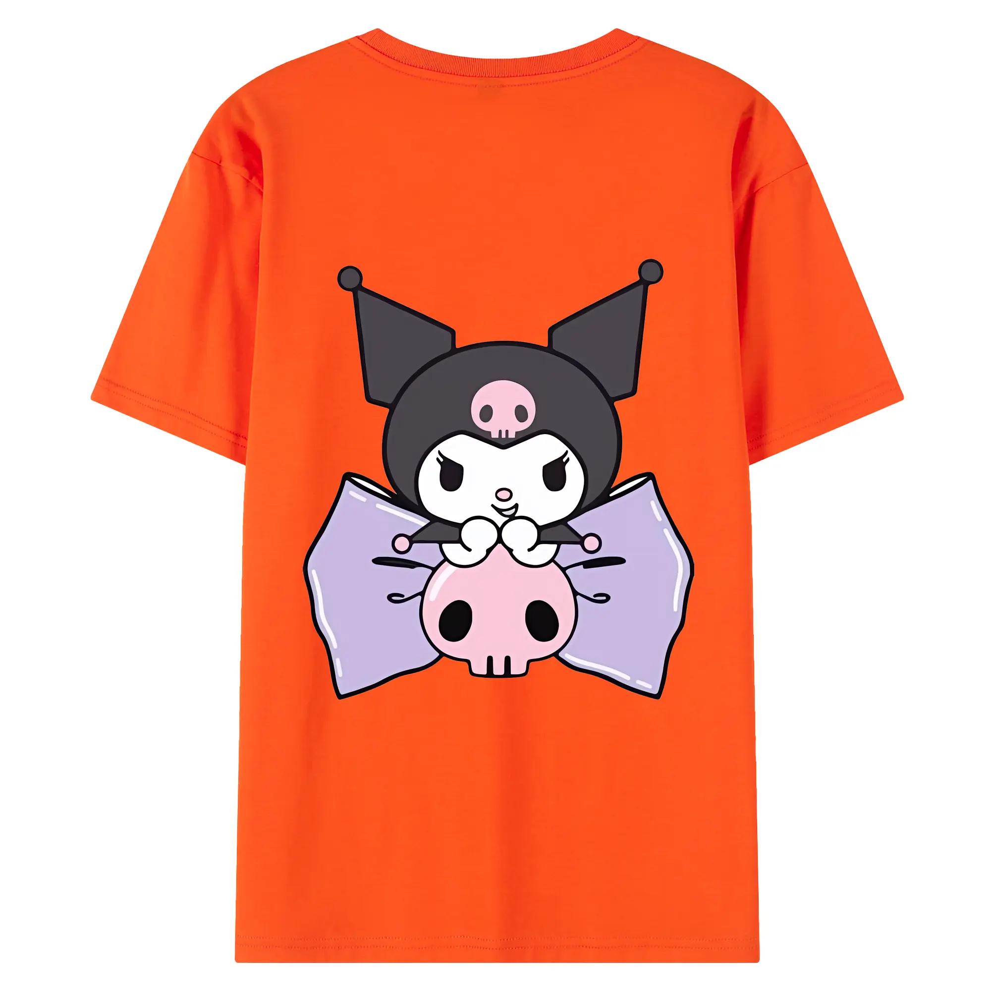 サンリオ グッズ,クロミ - 綿100% ヴィンテージ風 半袖Tシャツ ・ 背面プリント ・ 柔らか肌触り ・ 通気性 快適 ・ スポーツ カジュアル 外出用