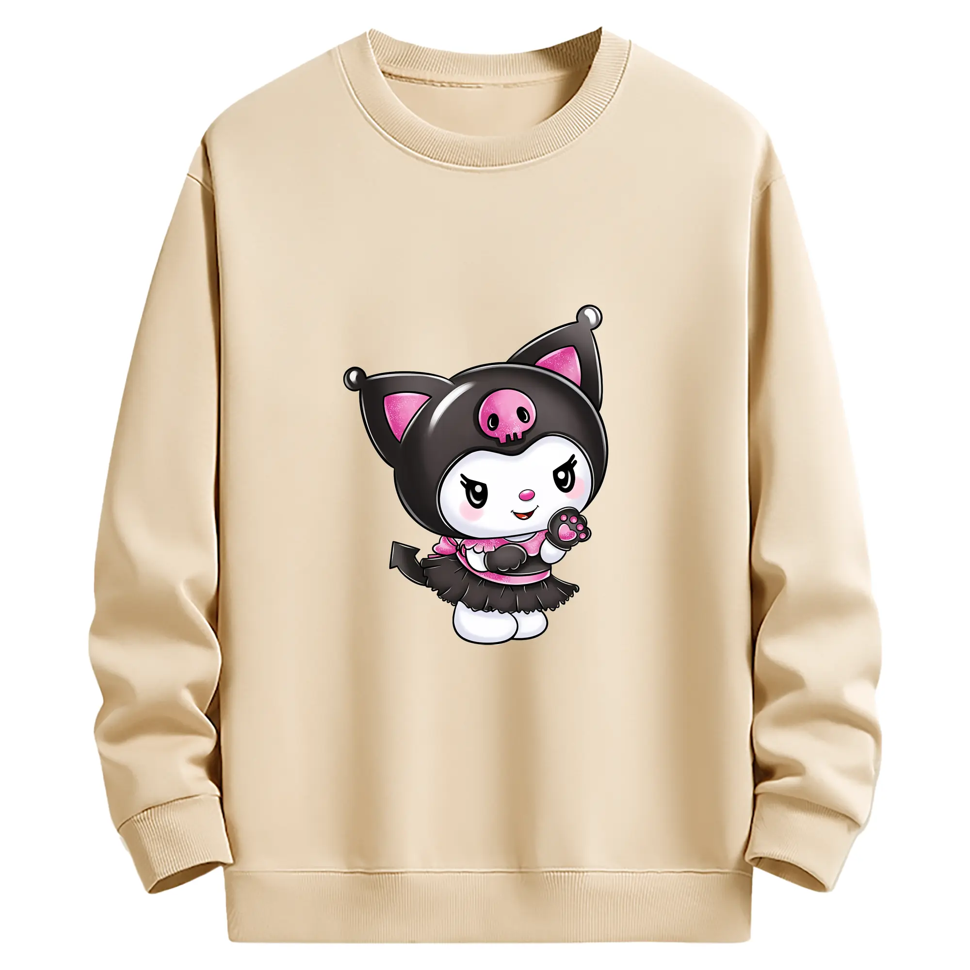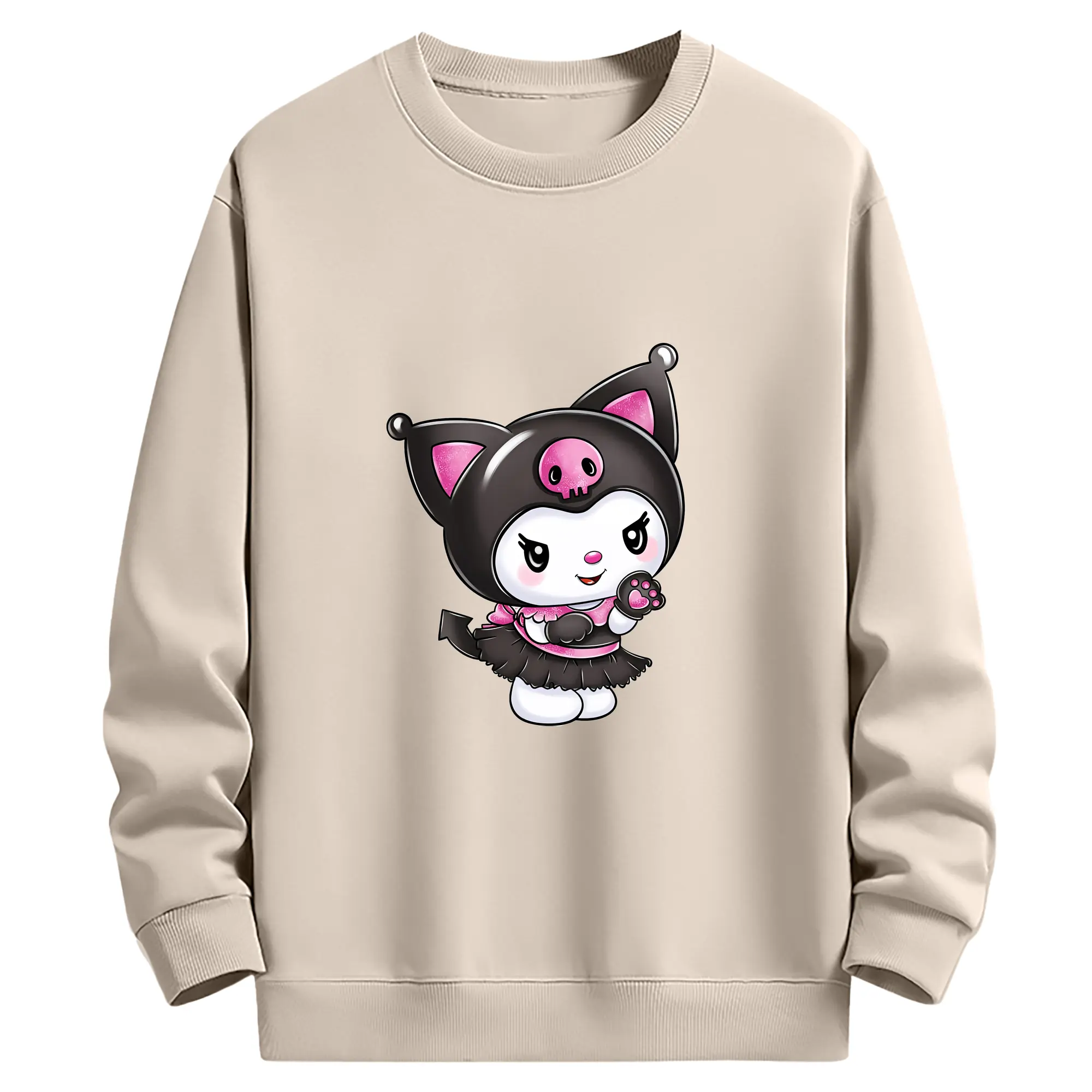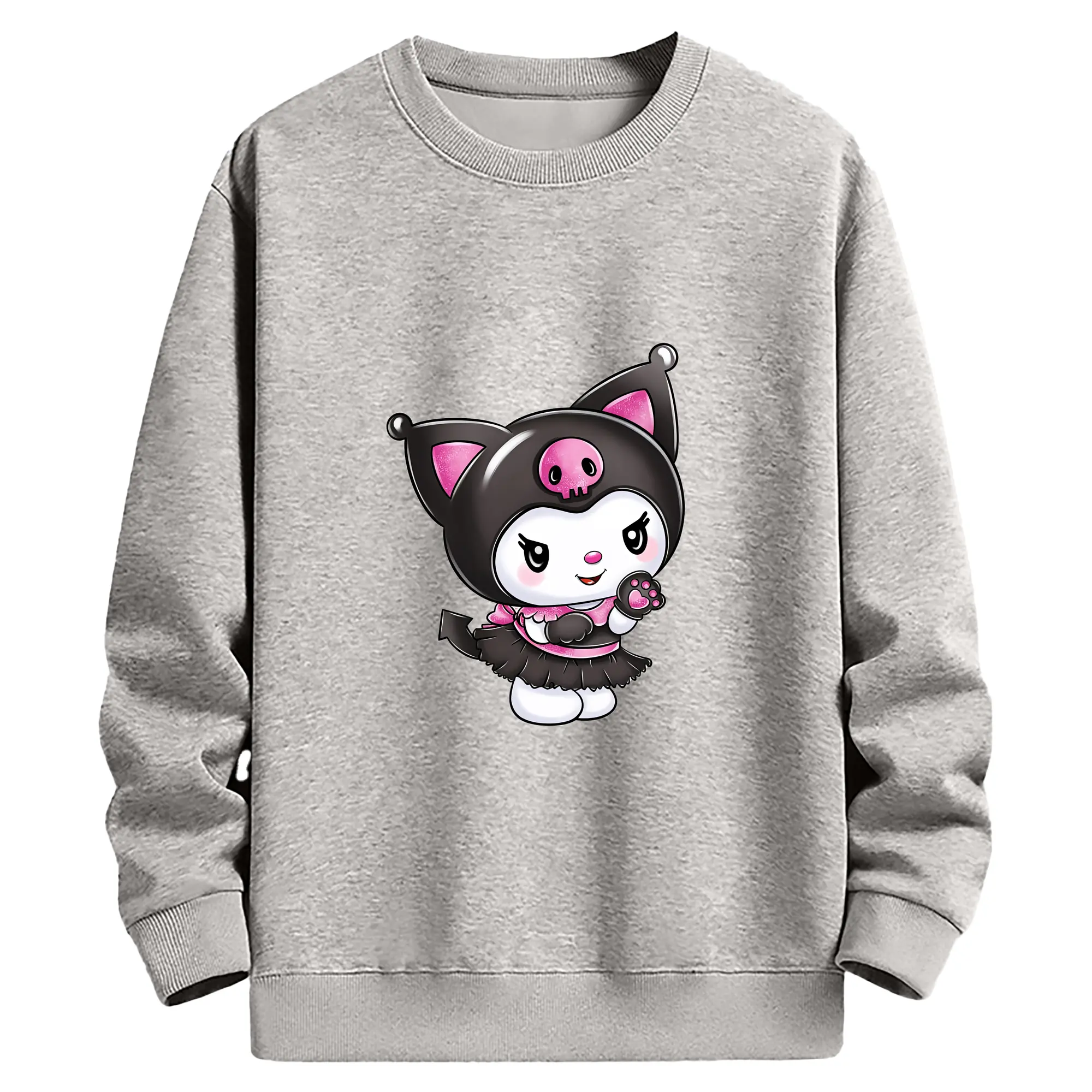 サンリオ グッズ,クロミ - 薄手 クルーネック スウェット 裏毛260g · ポリエステル 春秋向け カジュアル 男女兼用 · トレーナー デイリー スポーツ 散歩に最適