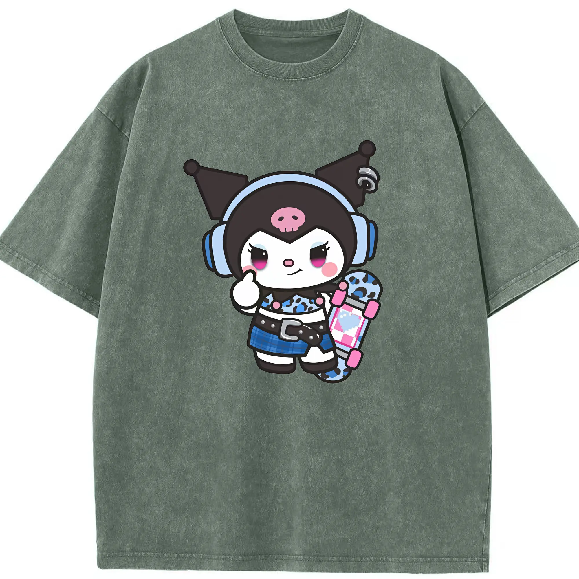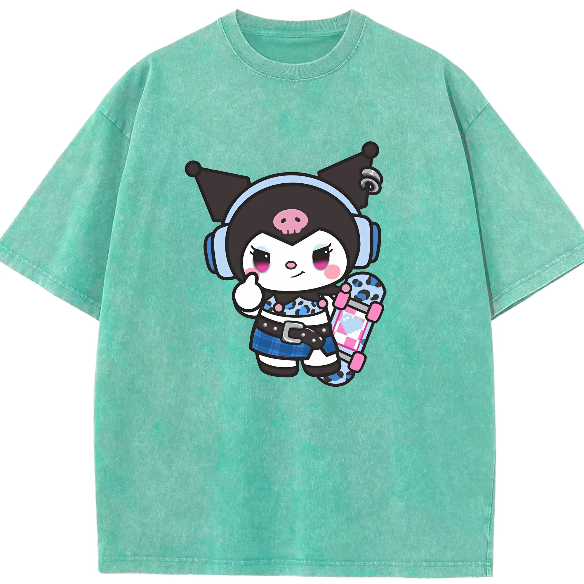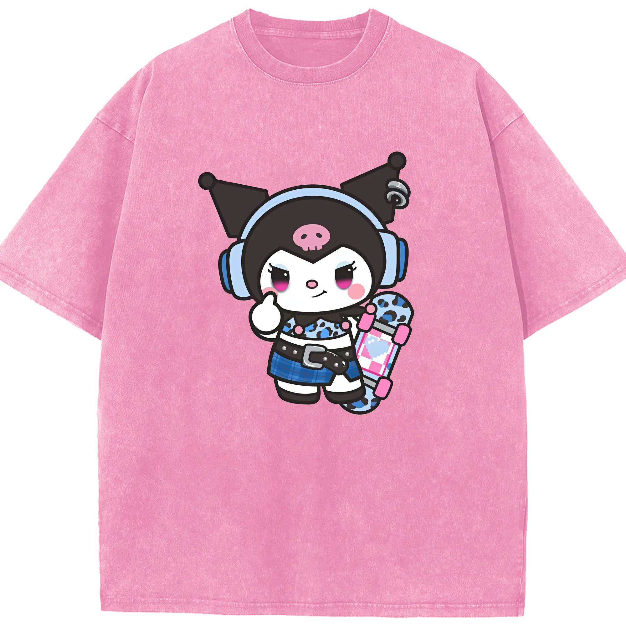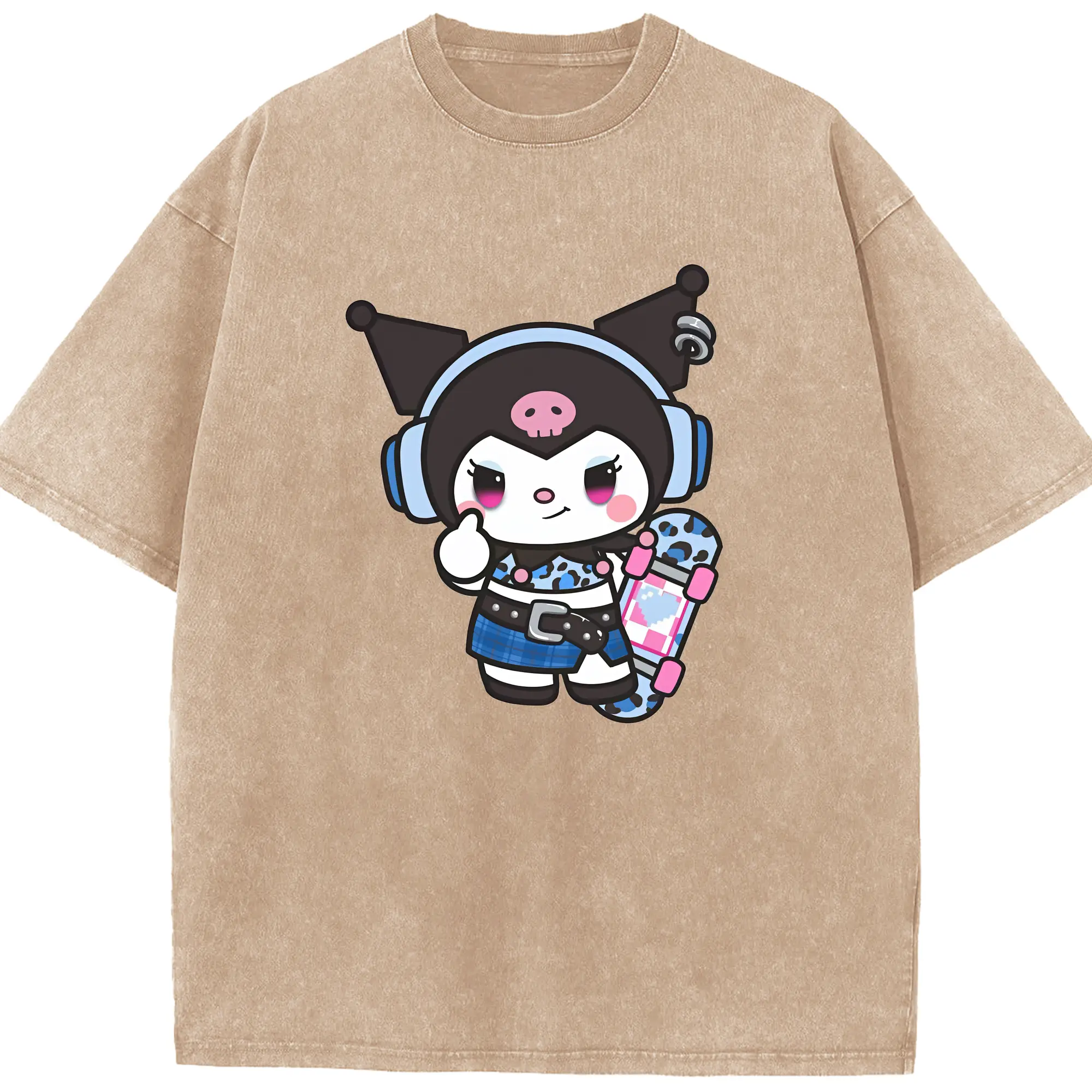サンリオ グッズ,クロミ - 綿100% ヴィンテージ風 半袖Tシャツ ・ 背面プリント ・ 柔らか肌触り ・ 通気性 快適 ・ スポーツ カジュアル 外出用
