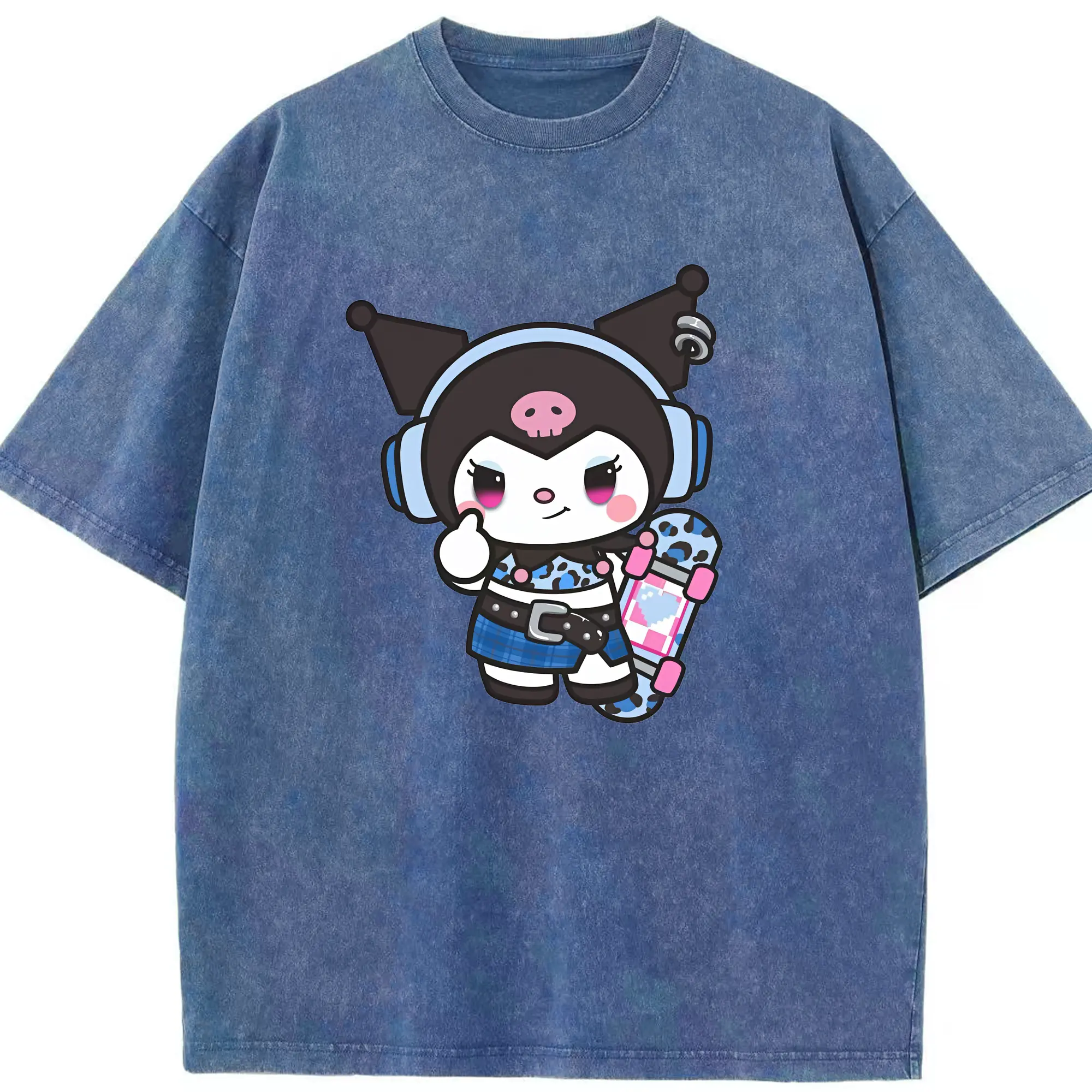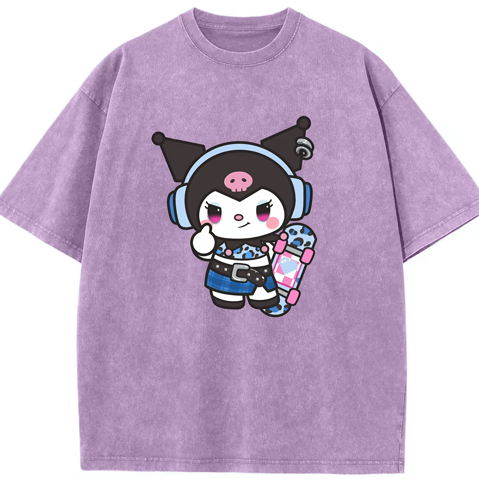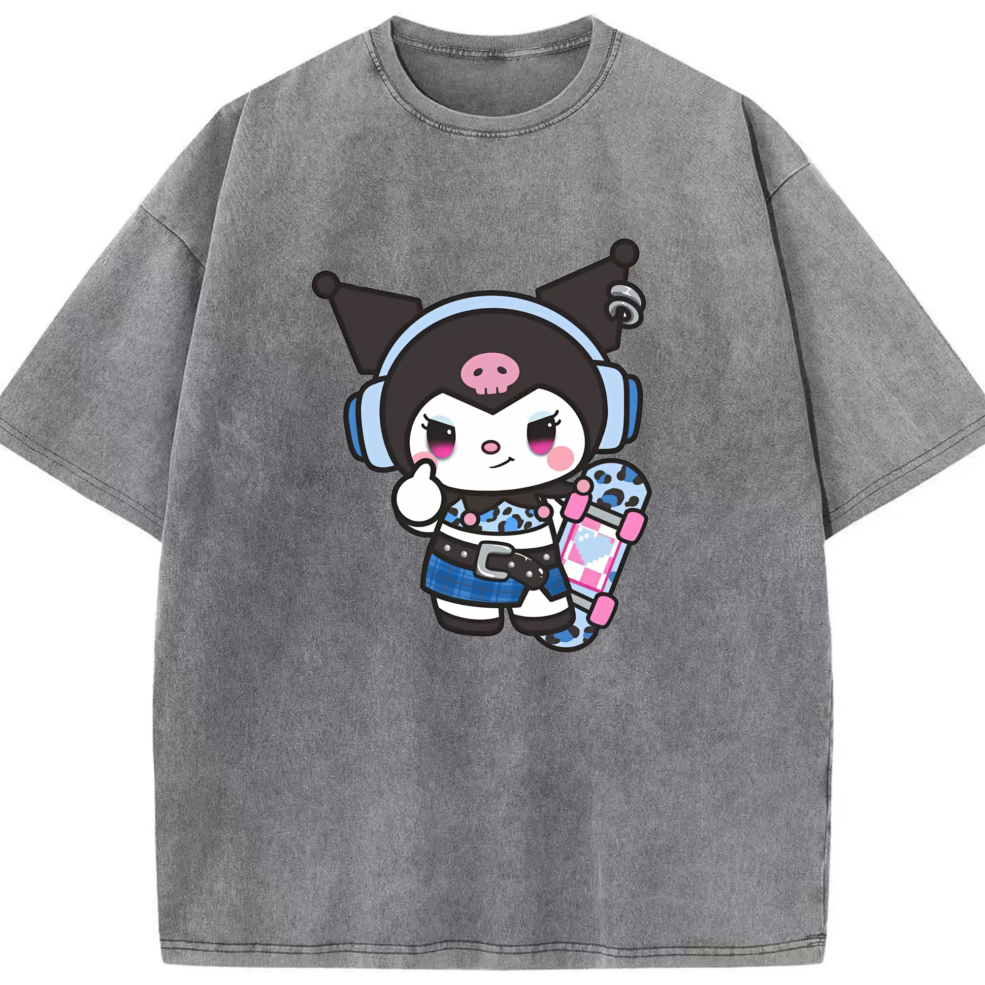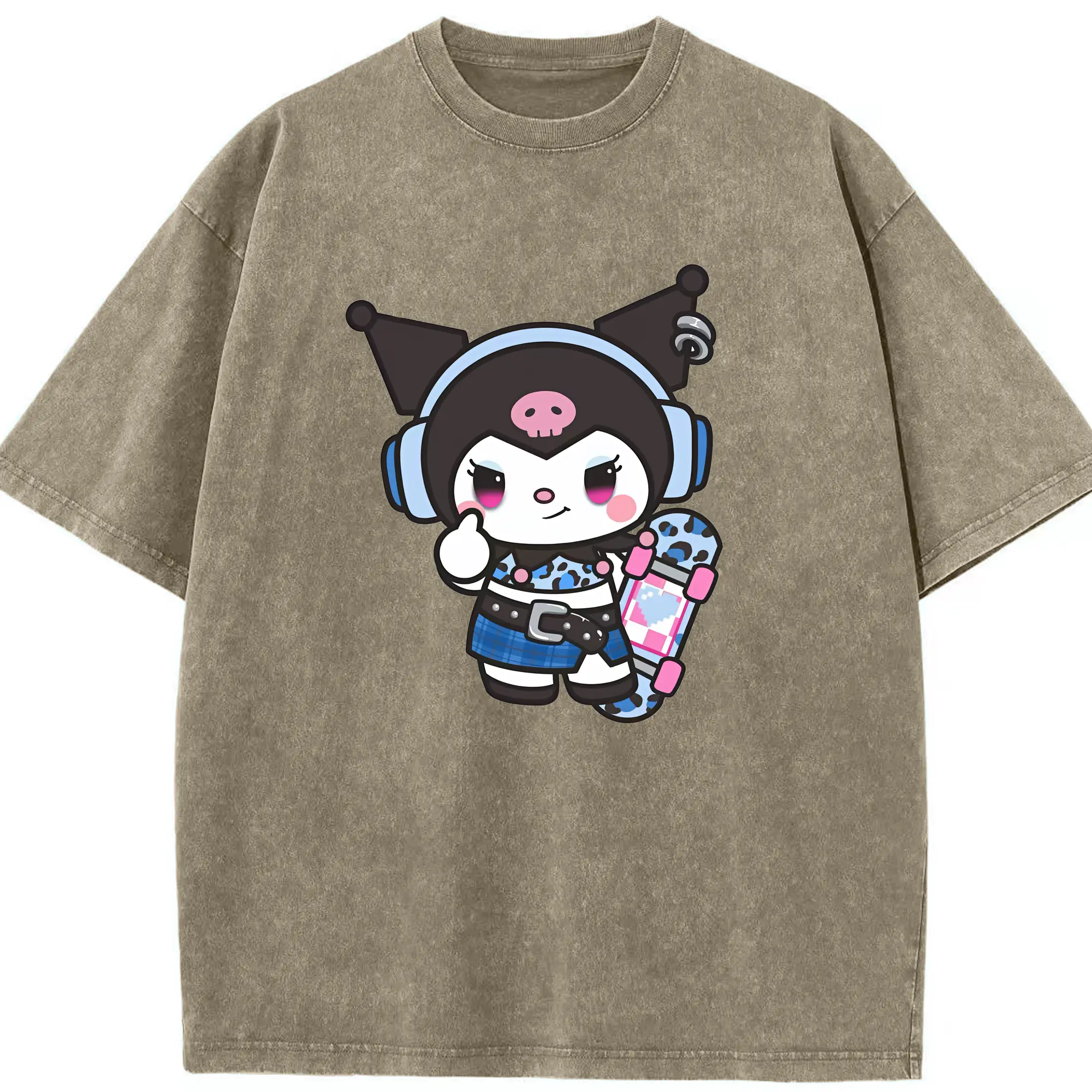 サンリオ グッズ,クロミ - 綿100% ヴィンテージ風 半袖Tシャツ ・ 背面プリント ・ 柔らか肌触り ・ 通気性 快適 ・ スポーツ カジュアル 外出用