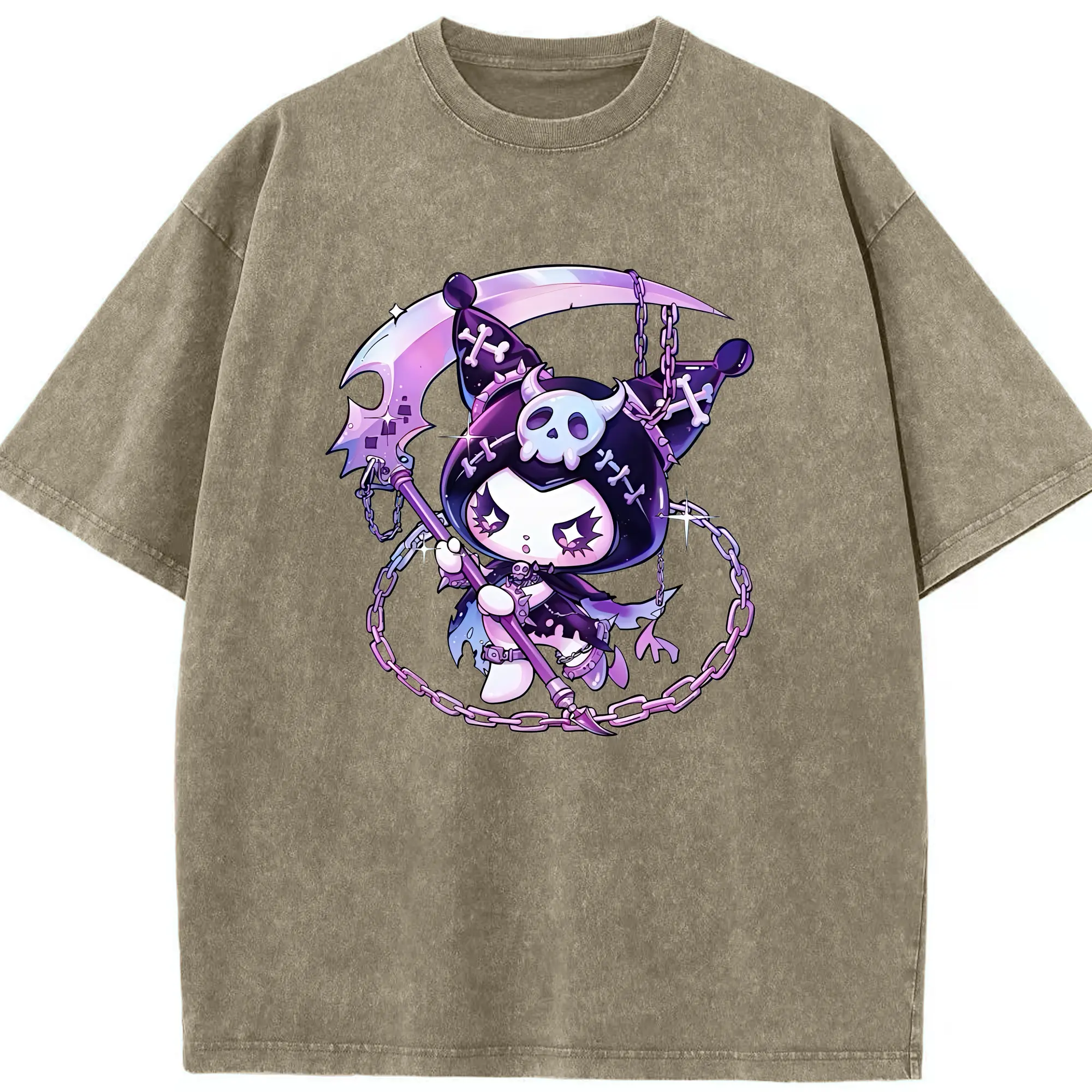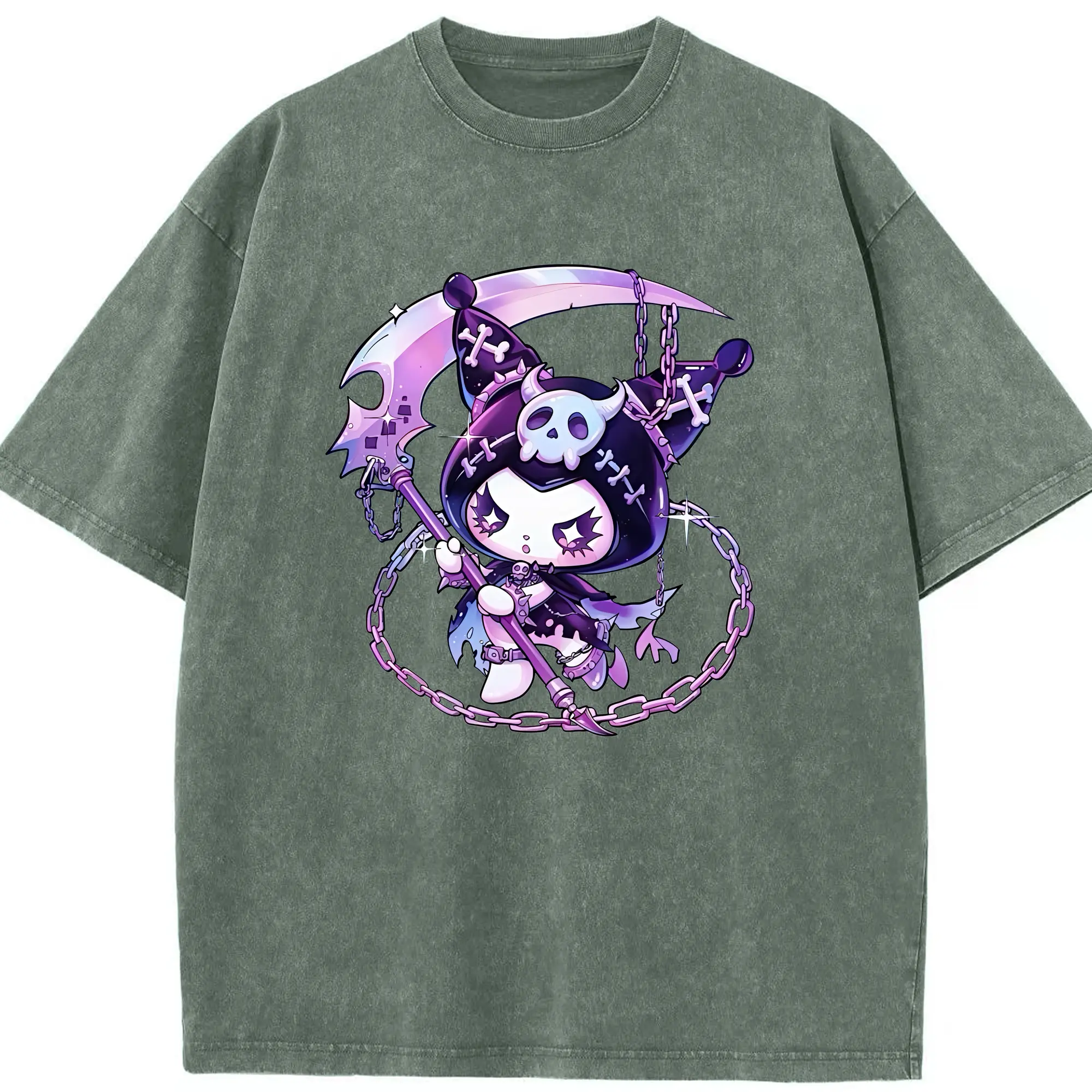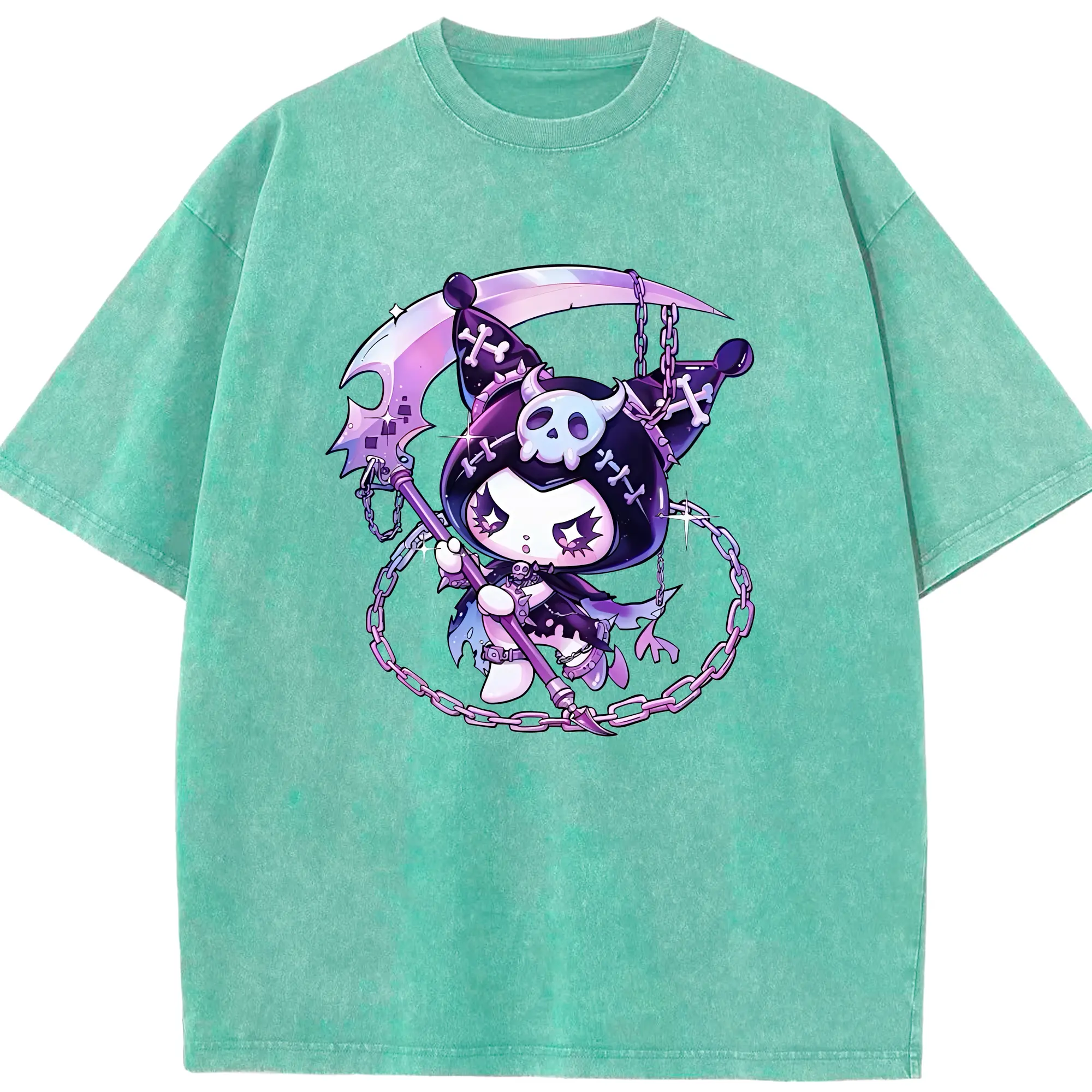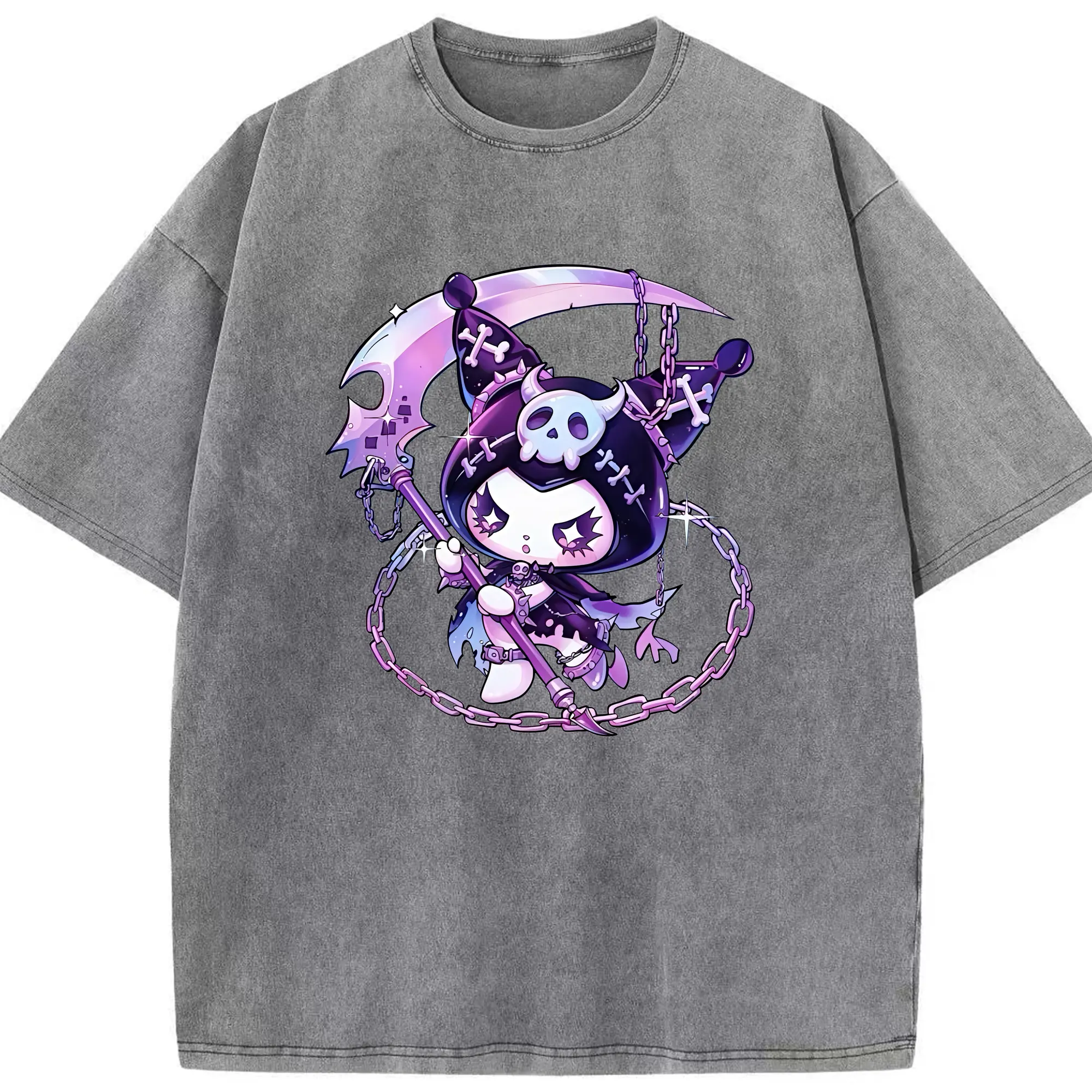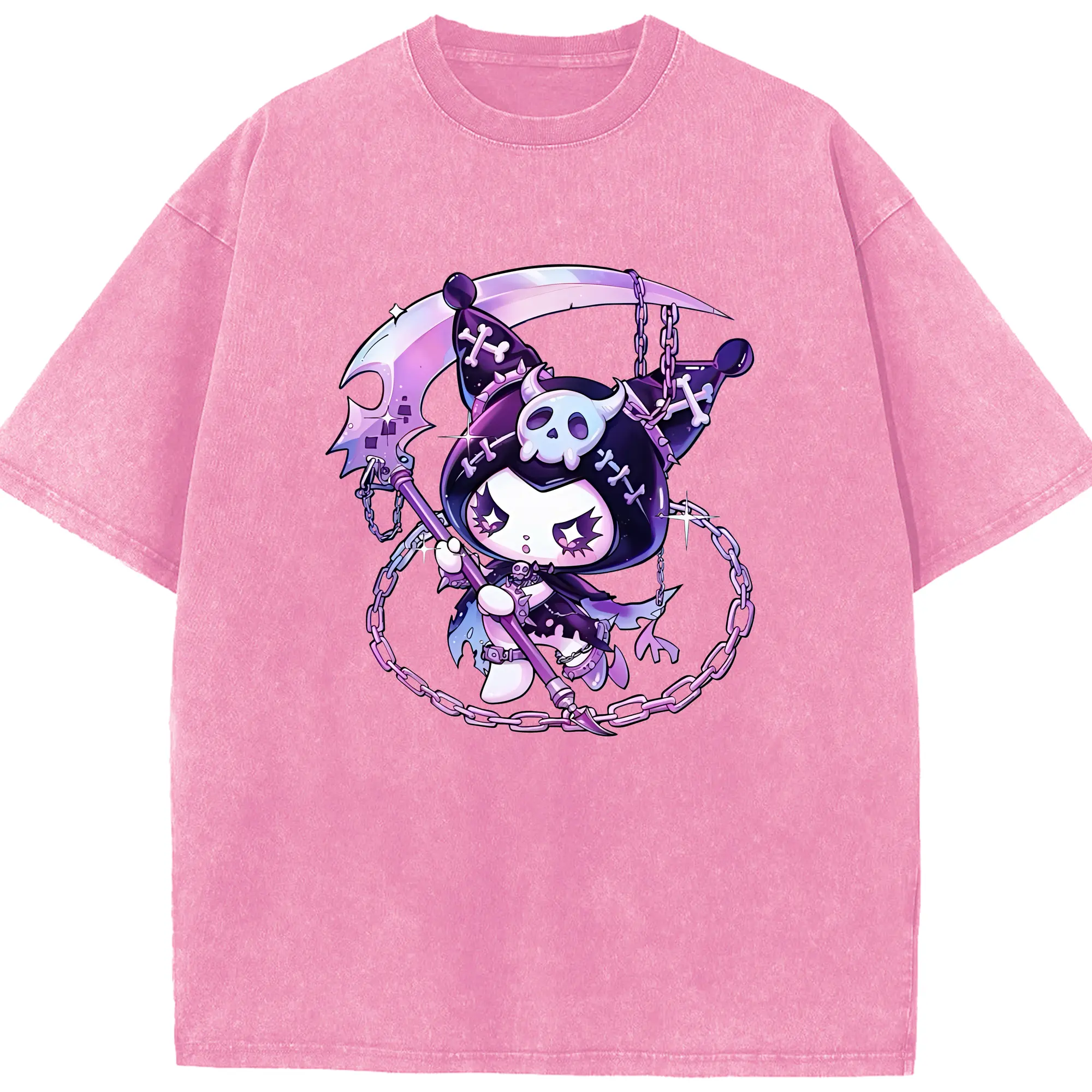 サンリオ グッズ,クロミ - 綿100% ヴィンテージ風 半袖Tシャツ ・ 背面プリント ・ 柔らか肌触り ・ 通気性 快適 ・ スポーツ カジュアル 外出用