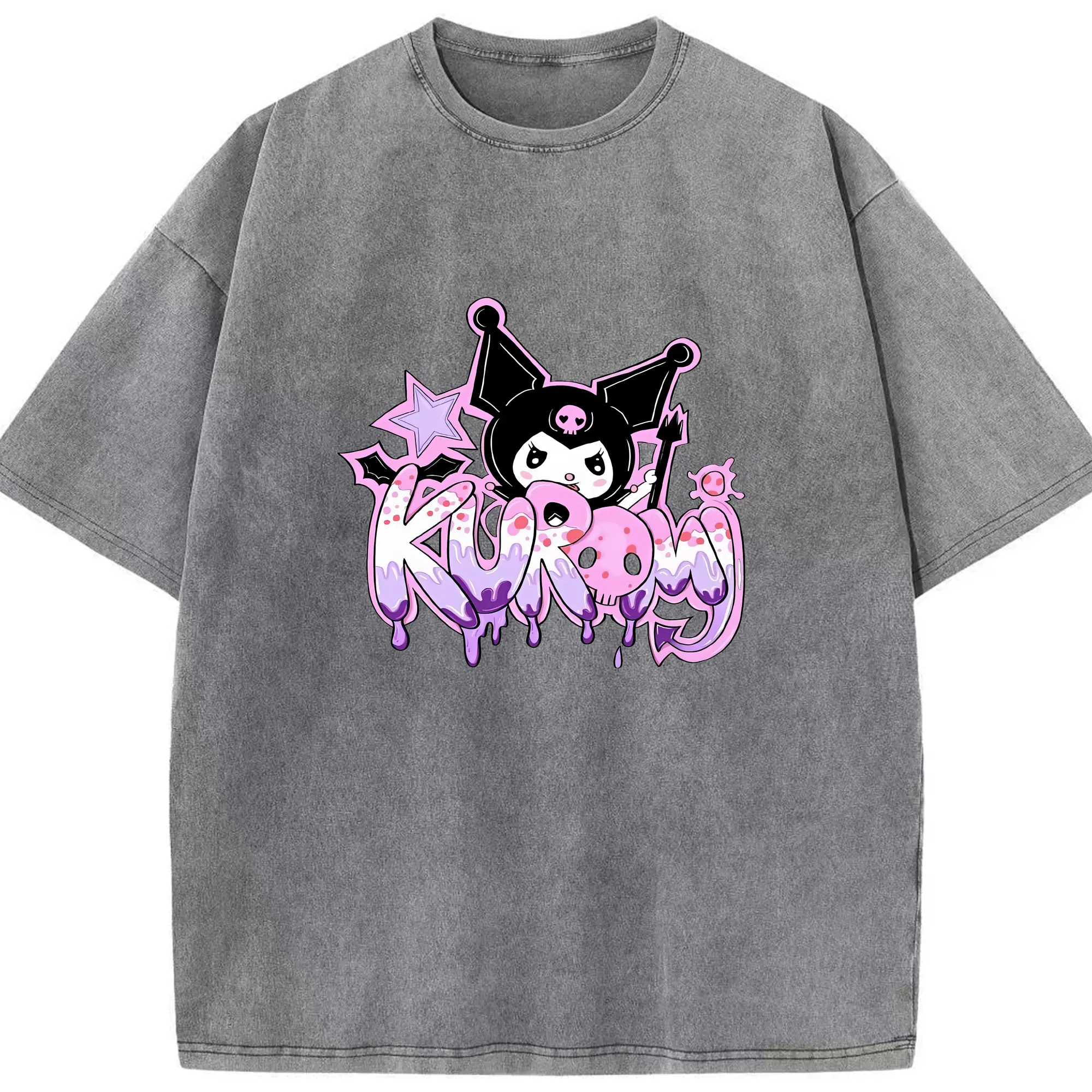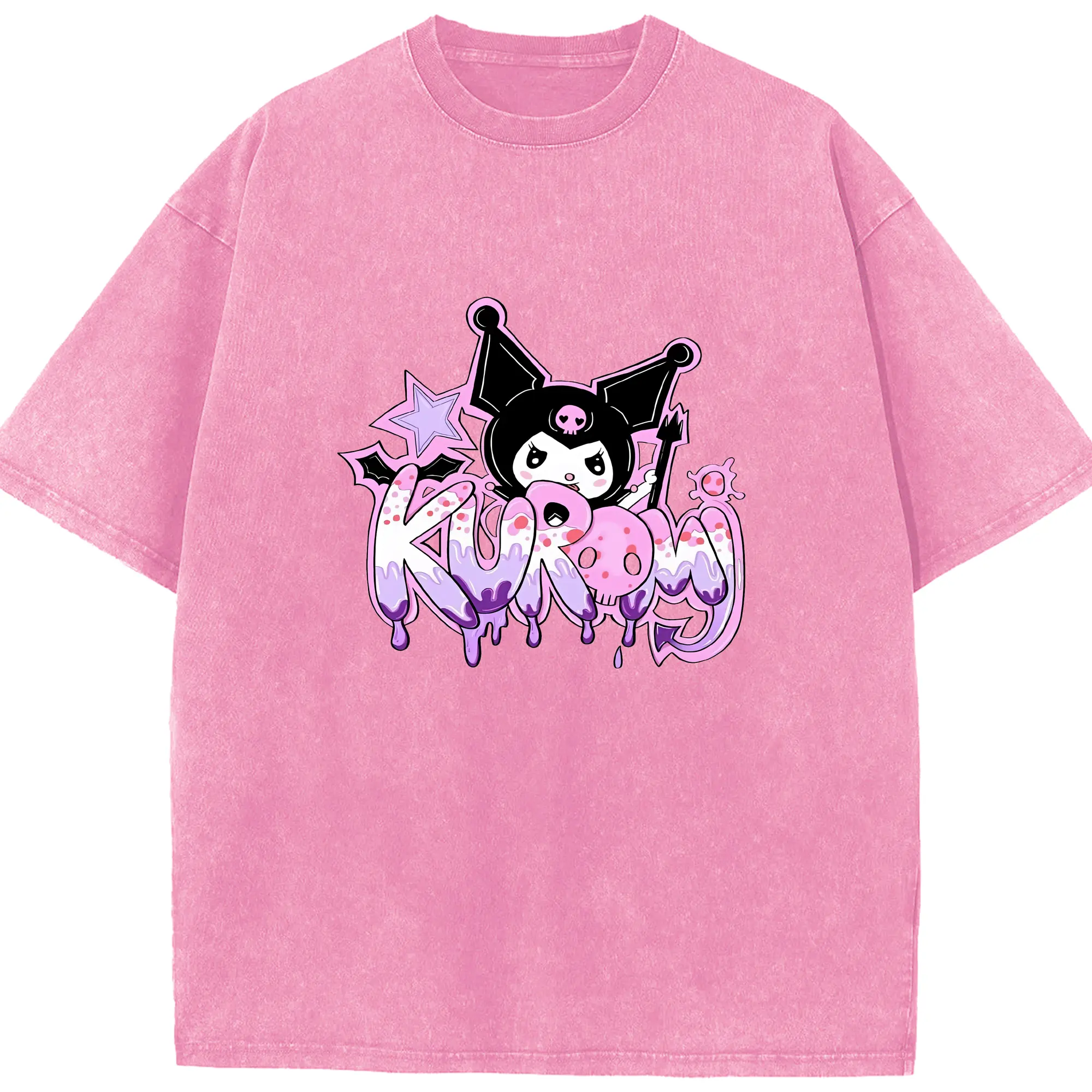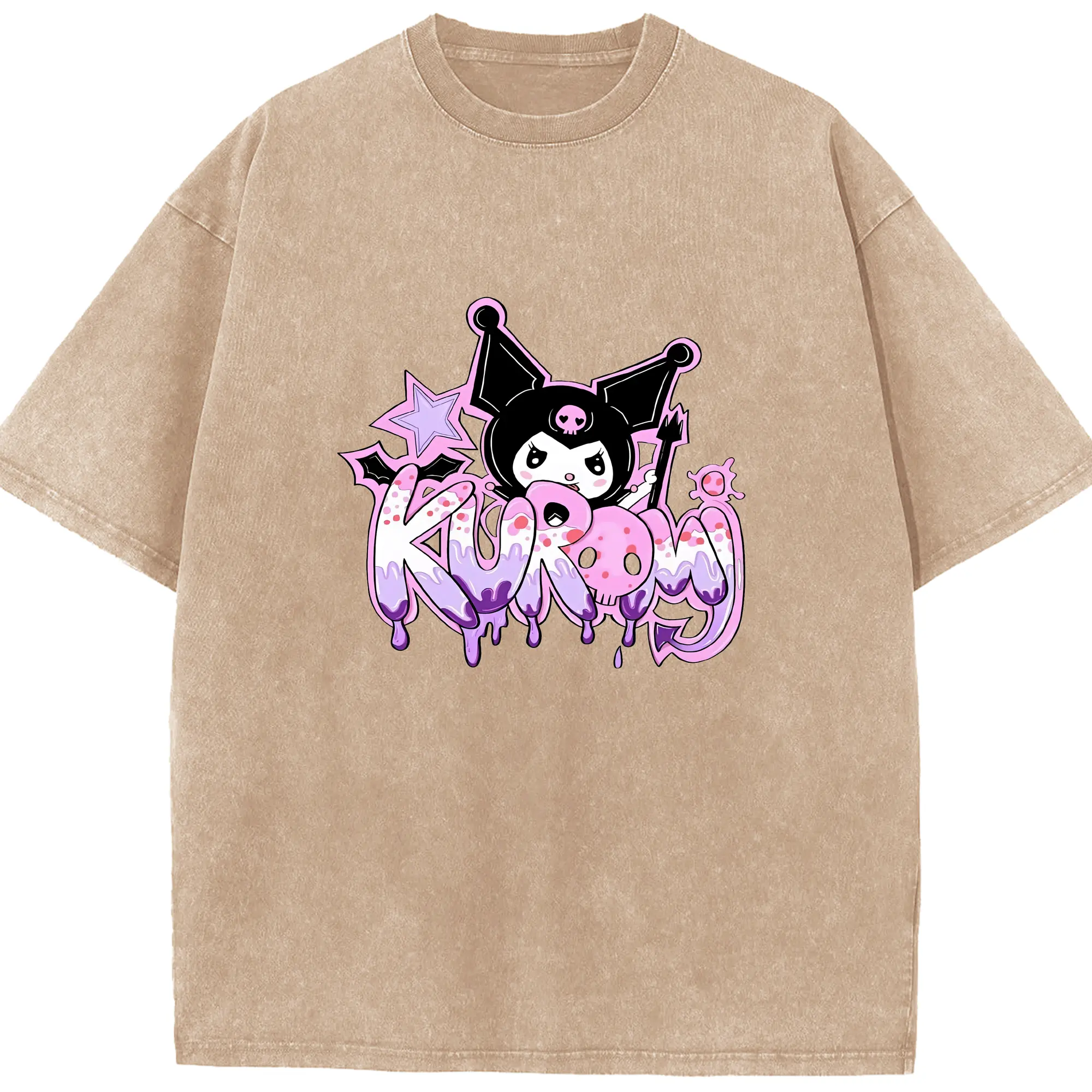 サンリオ グッズ,クロミ - 綿100% ヴィンテージ風 半袖Tシャツ ・ 背面プリント ・ 柔らか肌触り ・ 通気性 快適 ・ スポーツ カジュアル 外出用