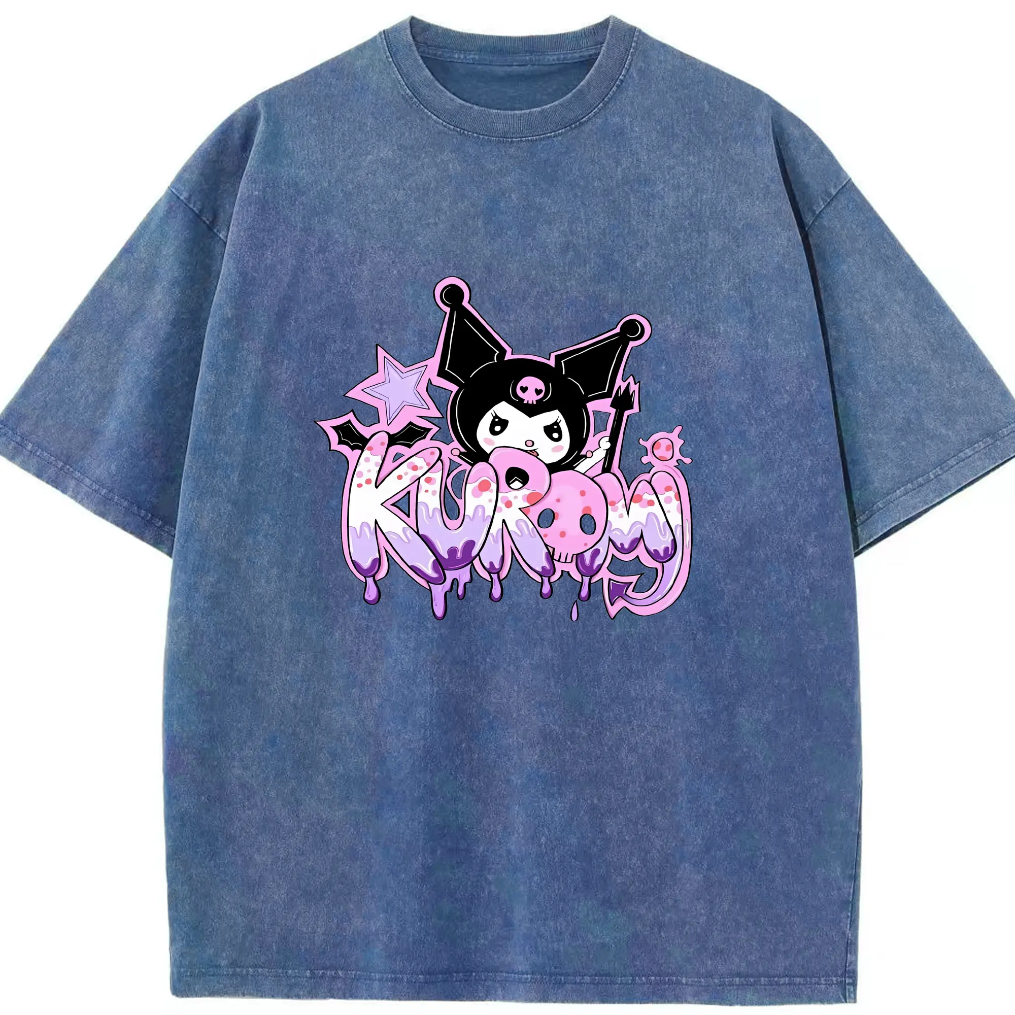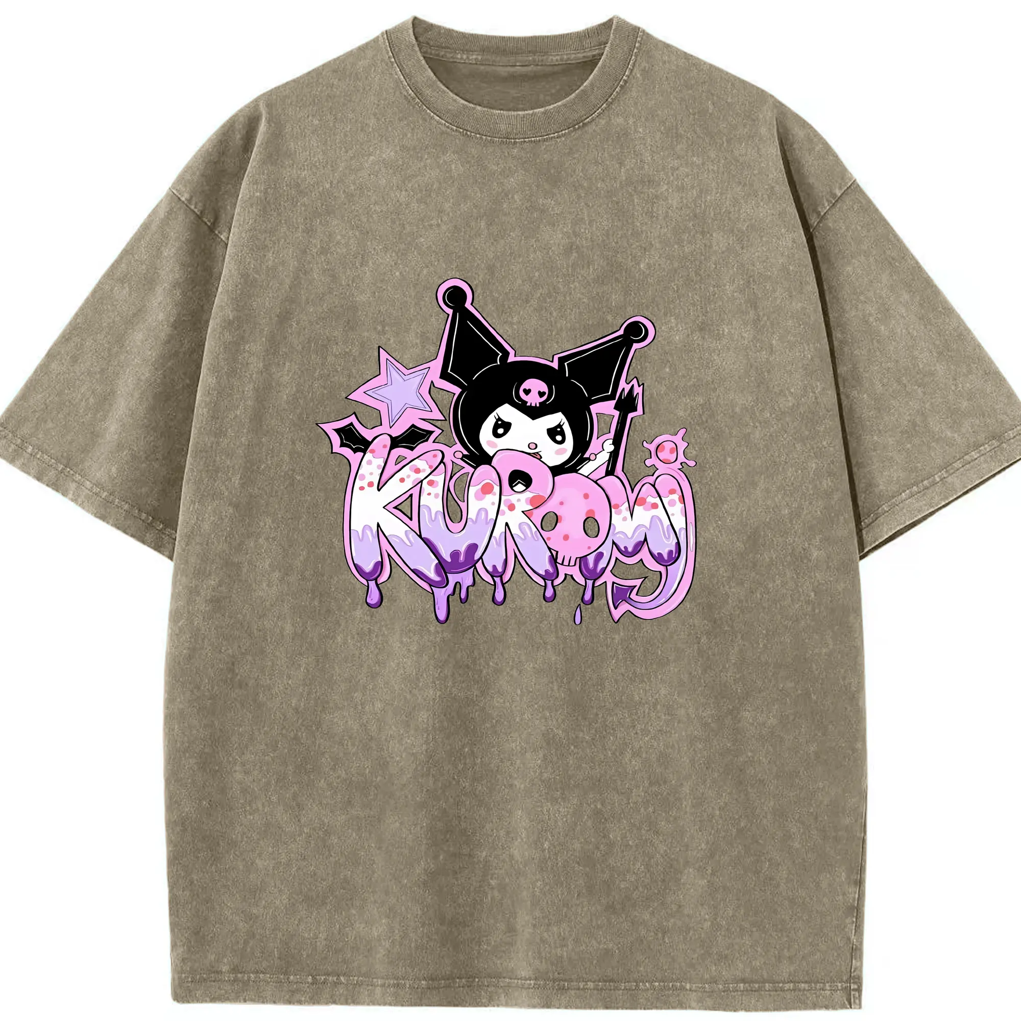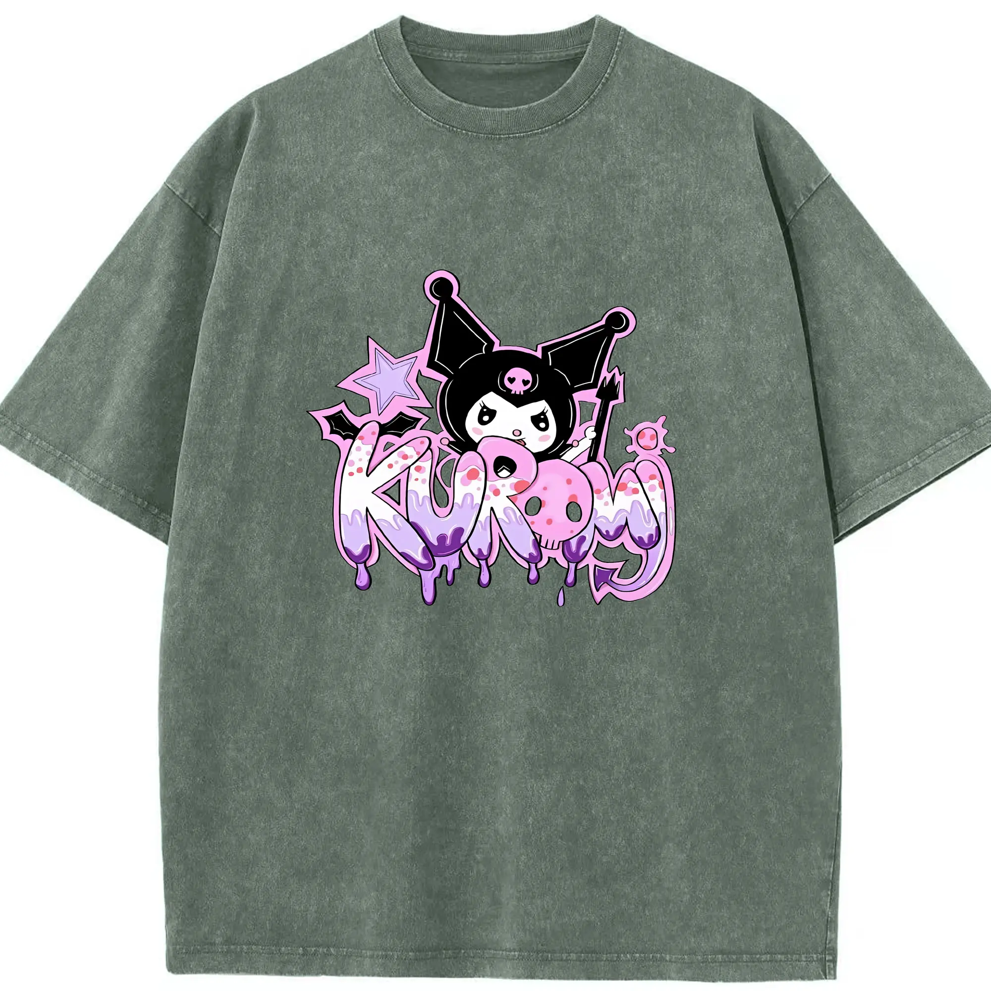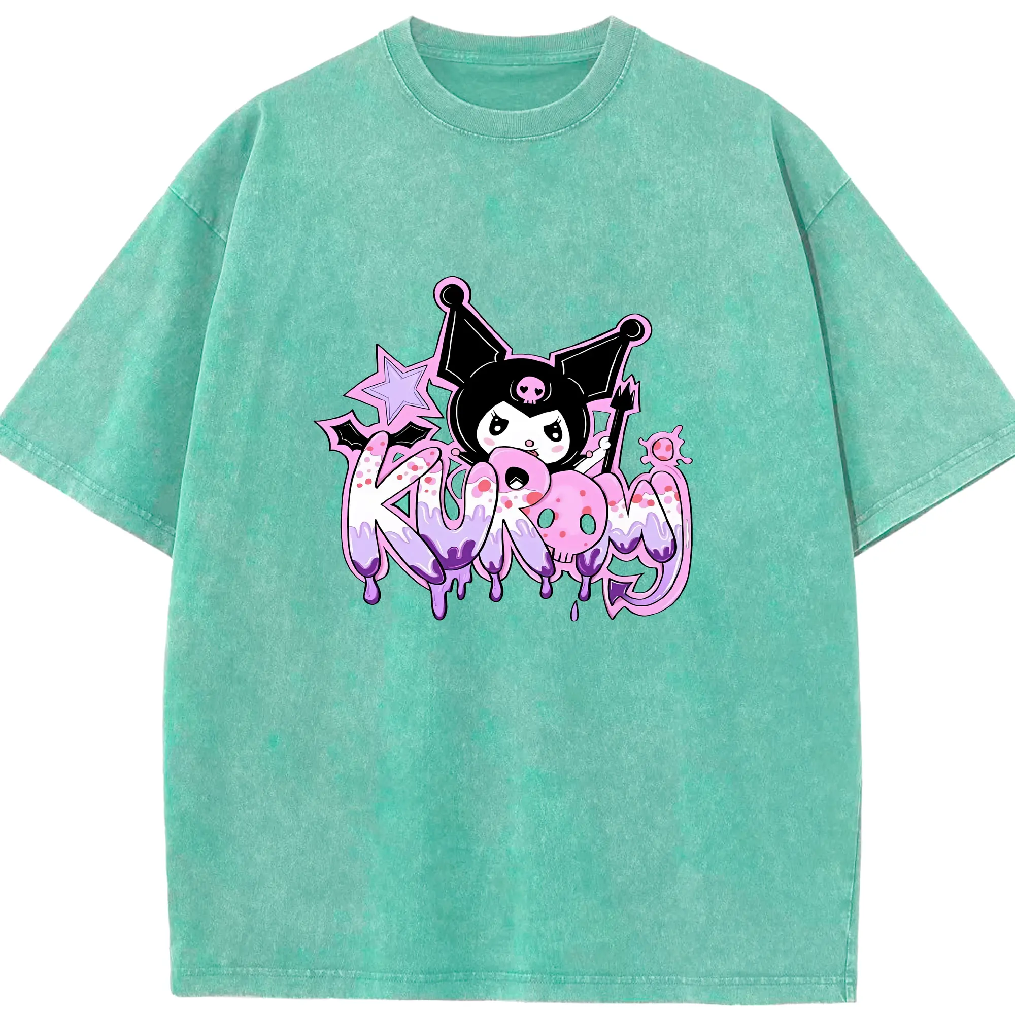 サンリオ グッズ,クロミ - 綿100% ヴィンテージ風 半袖Tシャツ ・ 背面プリント ・ 柔らか肌触り ・ 通気性 快適 ・ スポーツ カジュアル 外出用