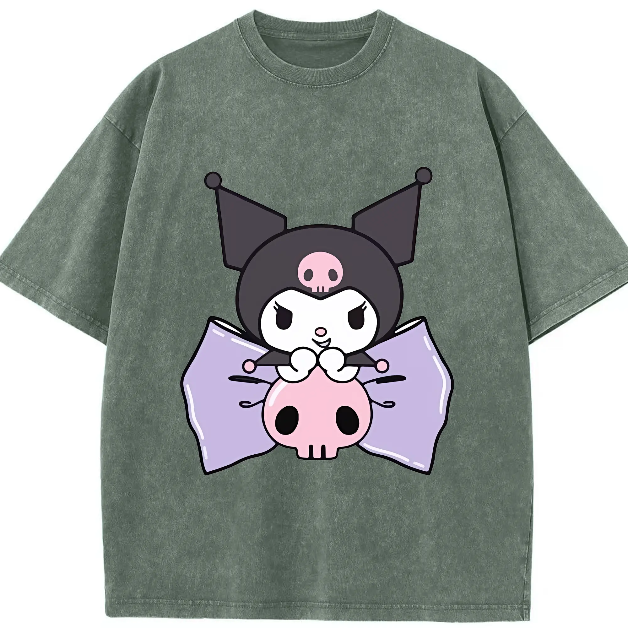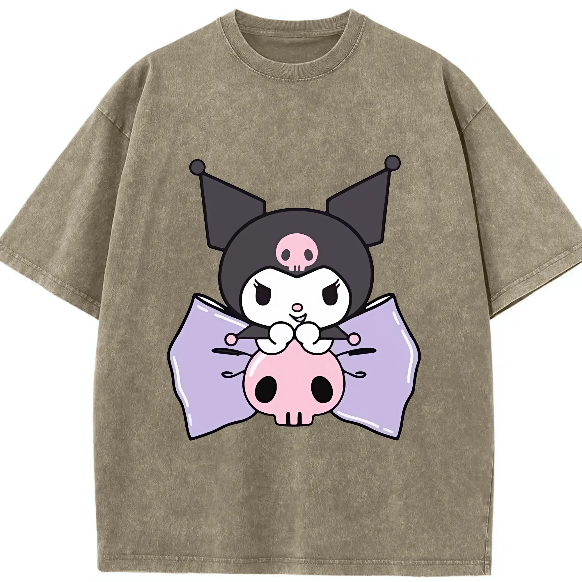 サンリオ グッズ,クロミ - 綿100% ヴィンテージ風 半袖Tシャツ ・ 背面プリント ・ 柔らか肌触り ・ 通気性 快適 ・ スポーツ カジュアル 外出用