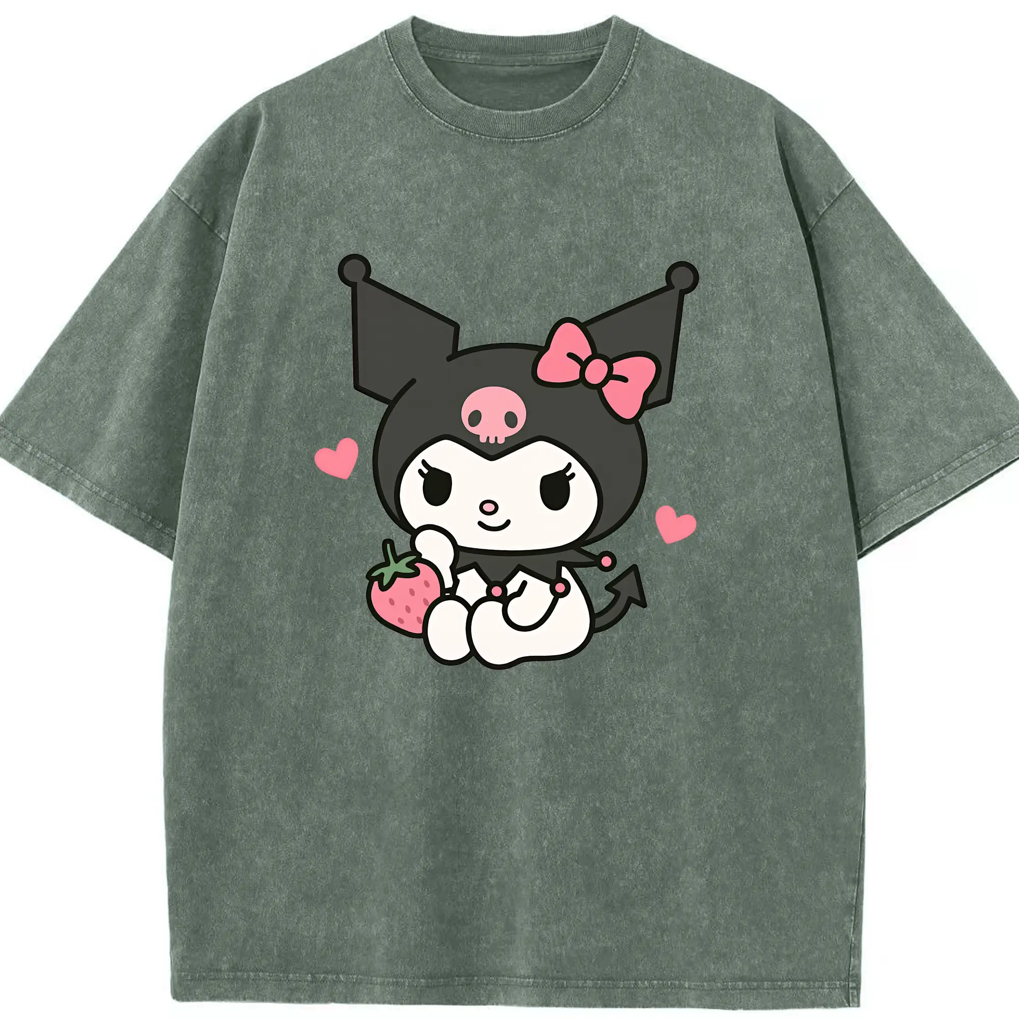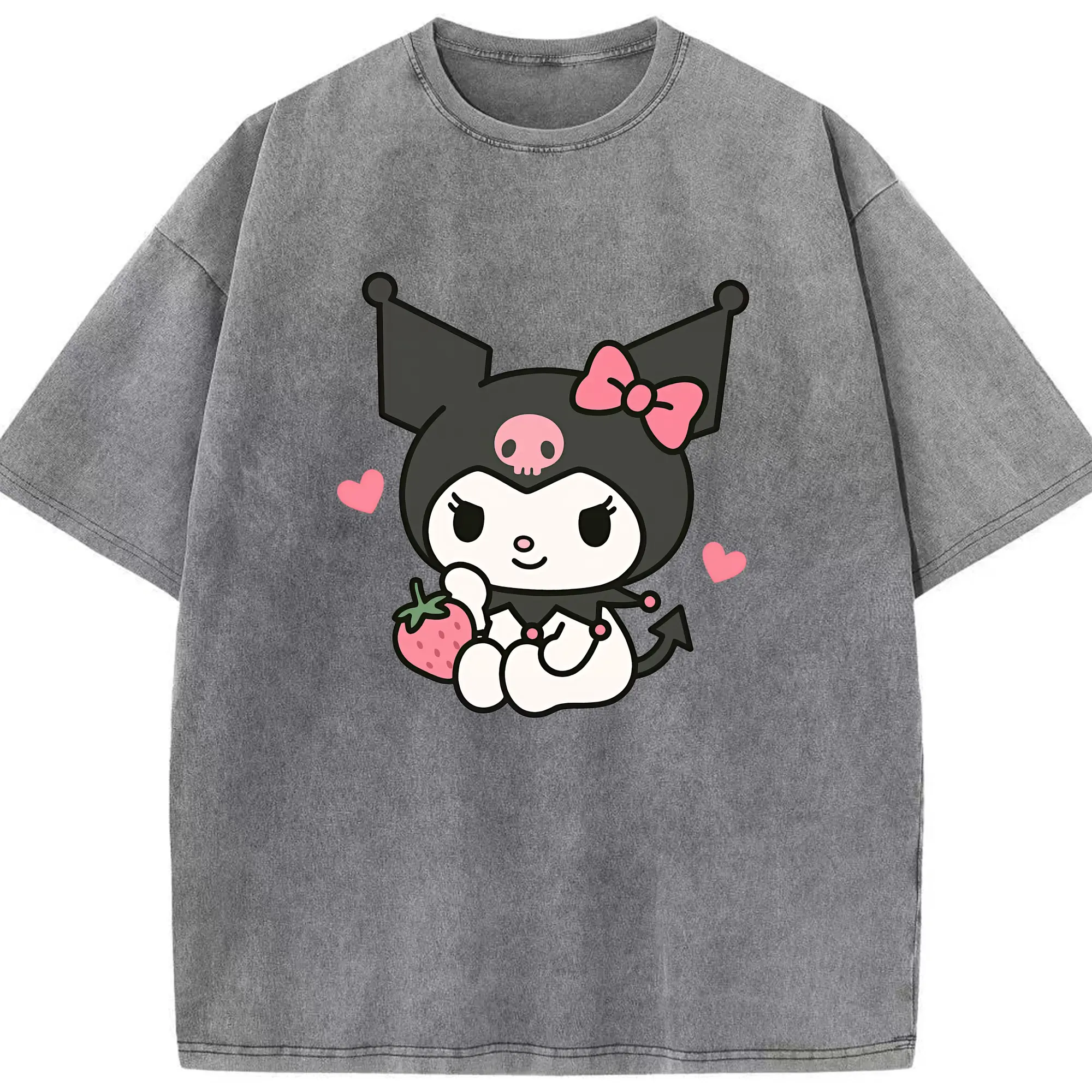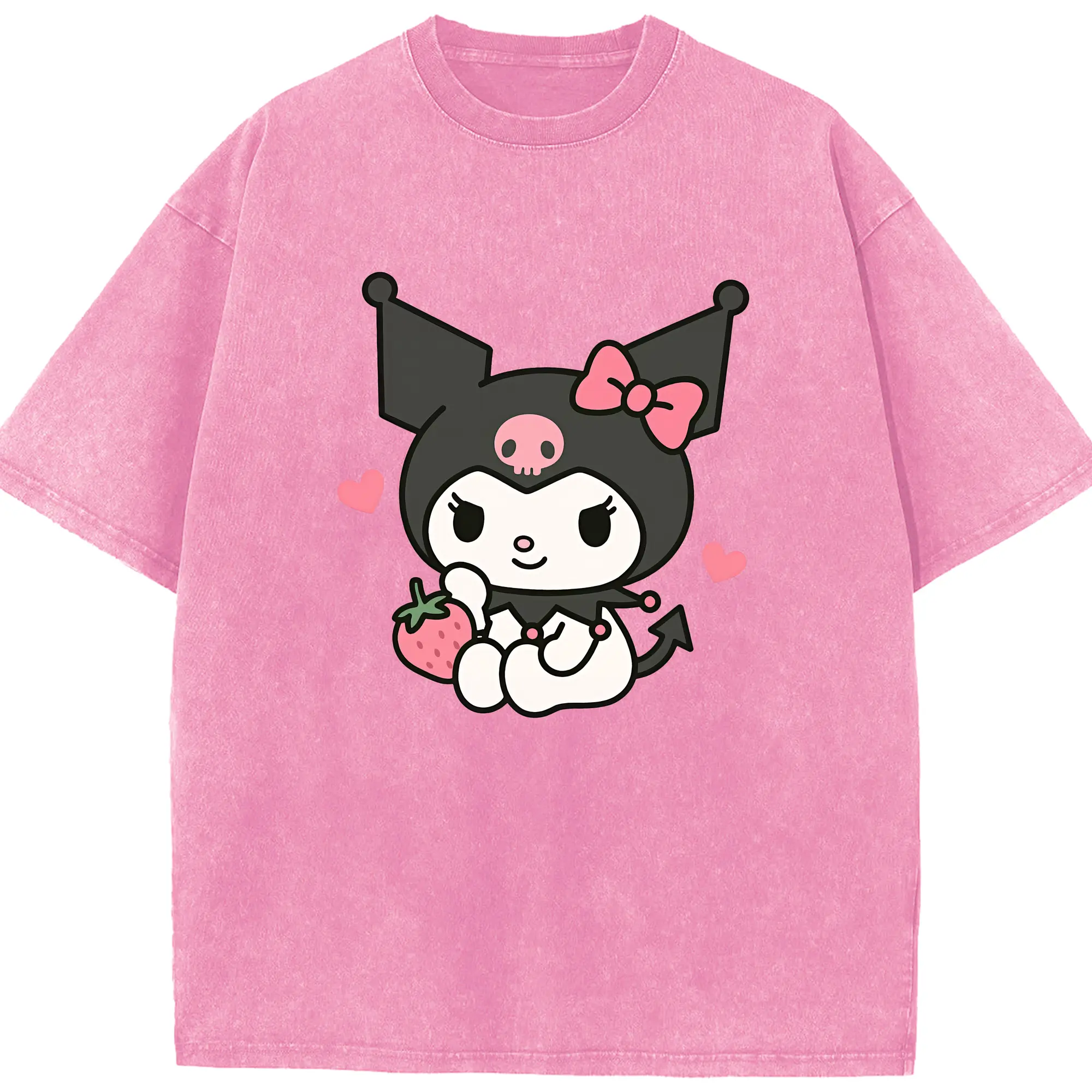 サンリオ グッズ,クロミ - 綿100% ヴィンテージ風 半袖Tシャツ ・ 背面プリント ・ 柔らか肌触り ・ 通気性 快適 ・ スポーツ カジュアル 外出用