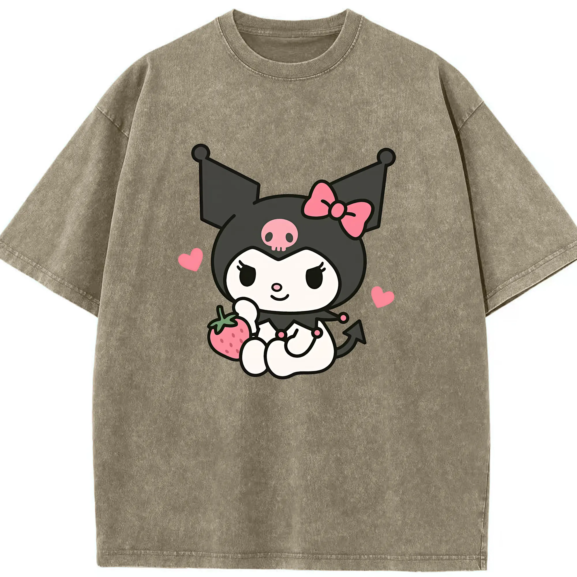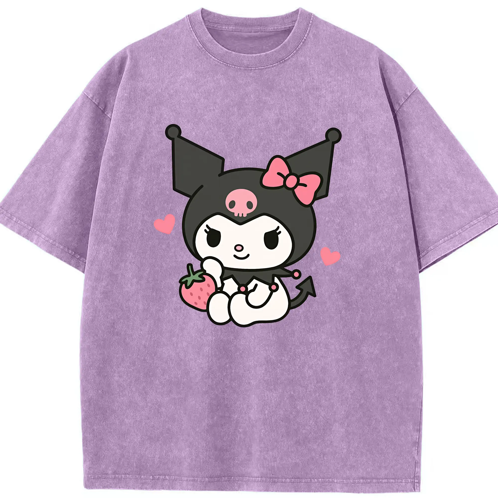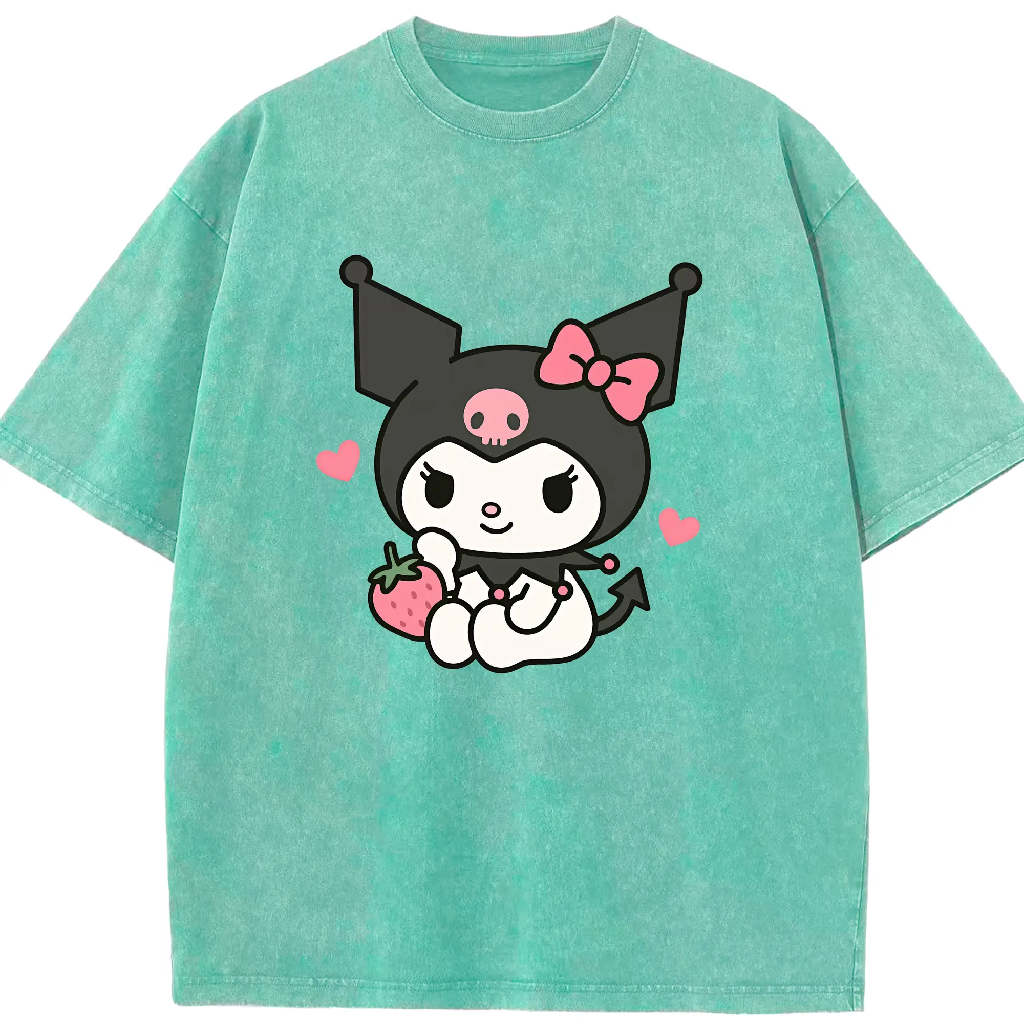 サンリオ グッズ,クロミ - 綿100% ヴィンテージ風 半袖Tシャツ ・ 背面プリント ・ 柔らか肌触り ・ 通気性 快適 ・ スポーツ カジュアル 外出用