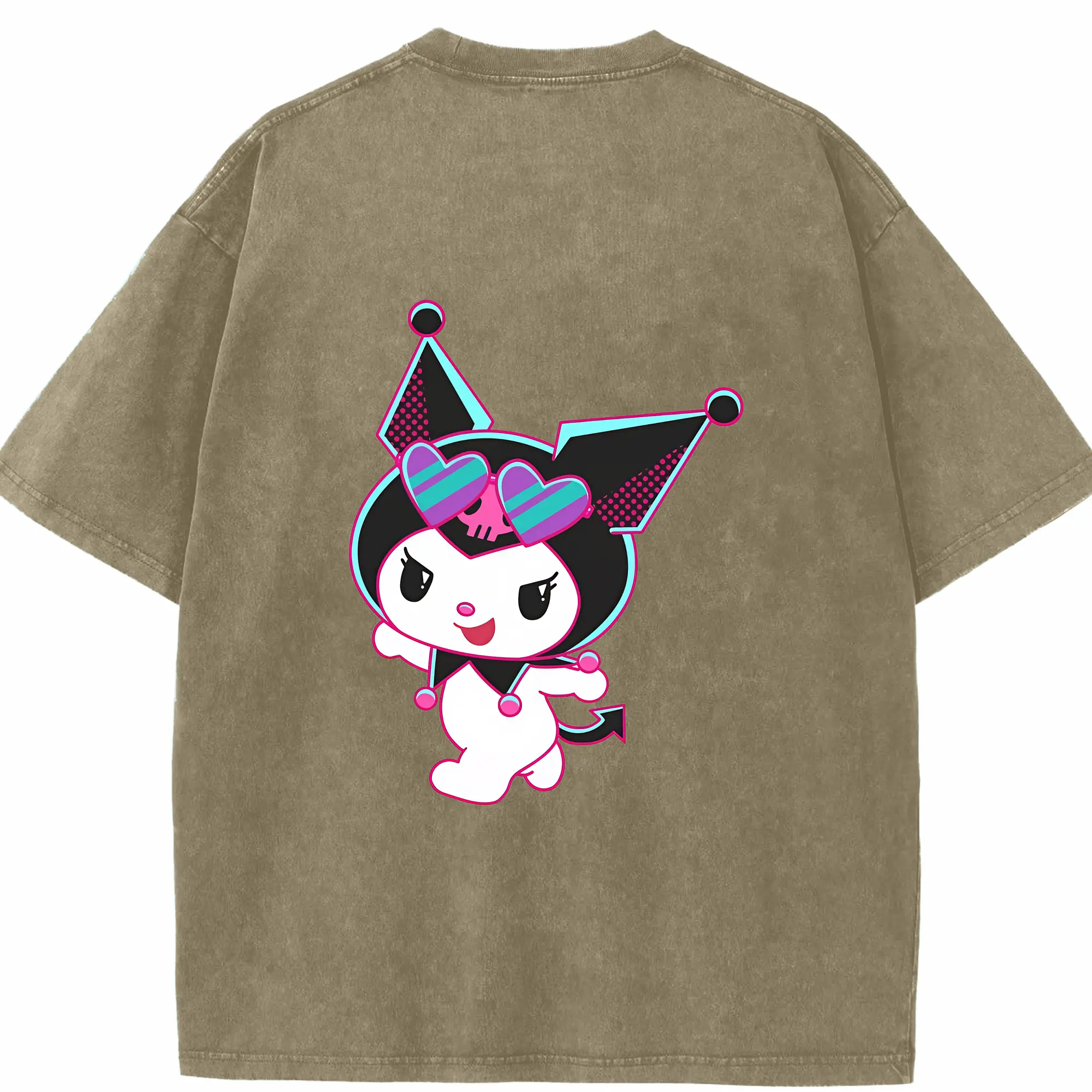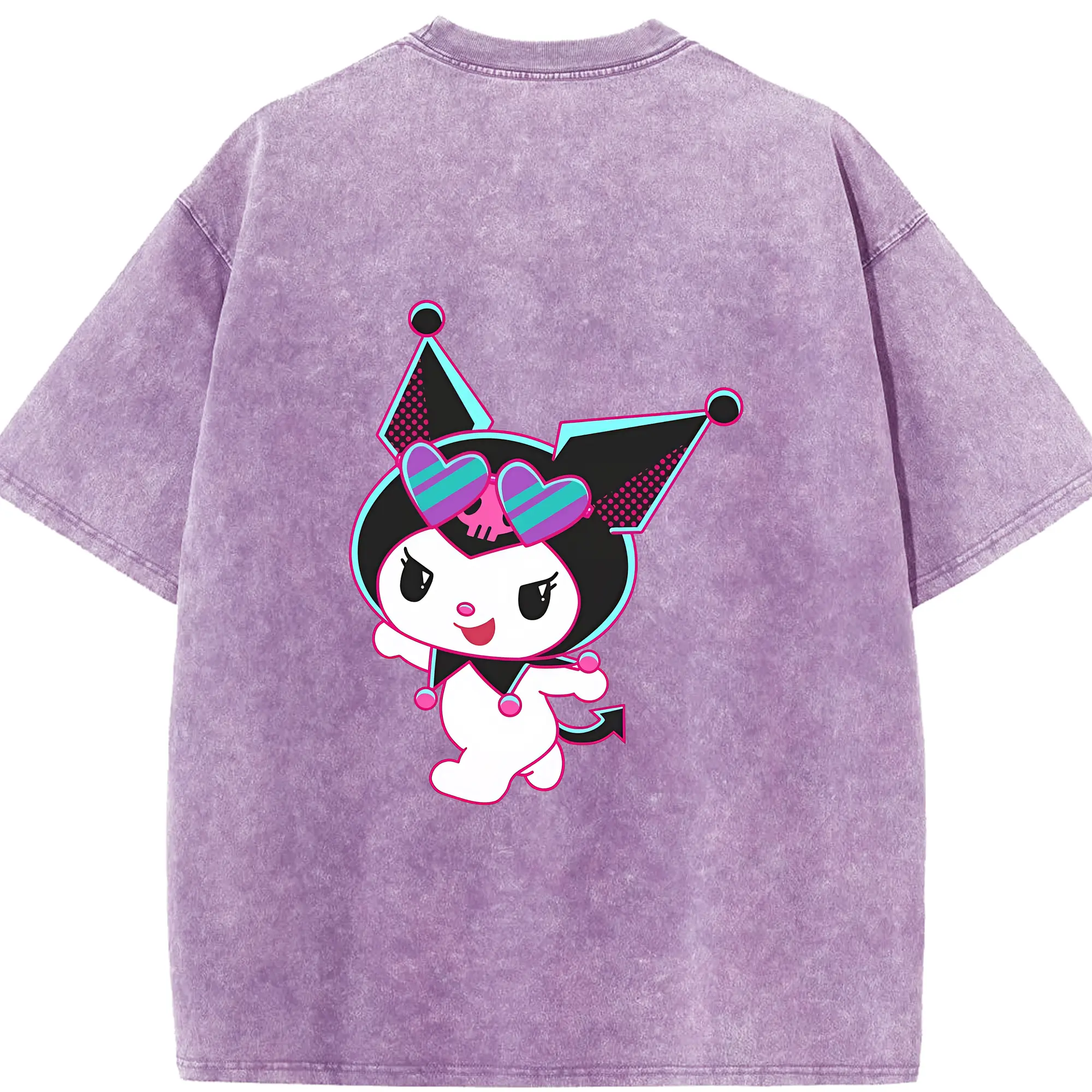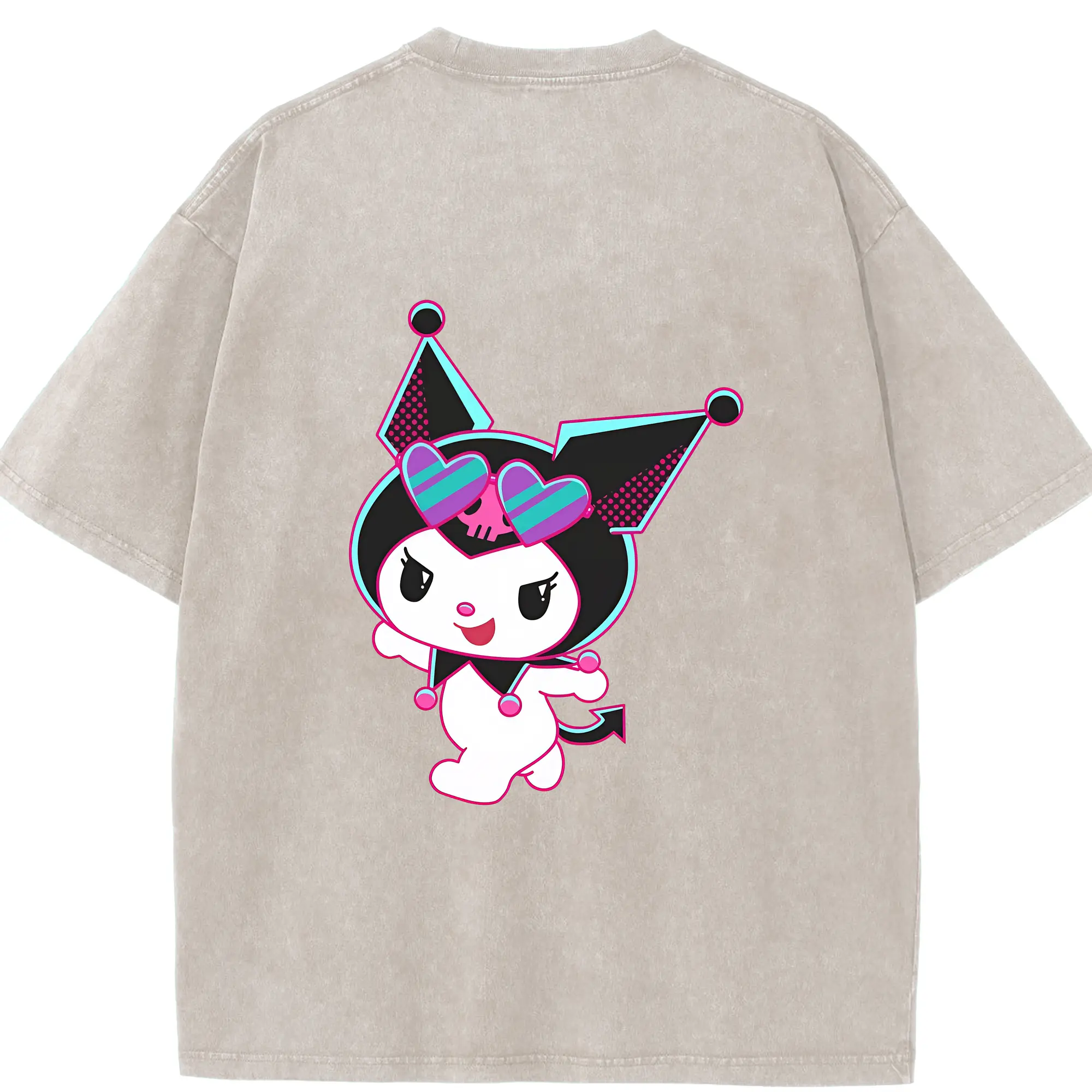 サンリオ グッズ,クロミ - 綿100% ヴィンテージ風 半袖Tシャツ ・ フロントプリント ・ 柔らか肌触り ・ 通気性 快適 ・ スポーツ カジュアル 外出用
