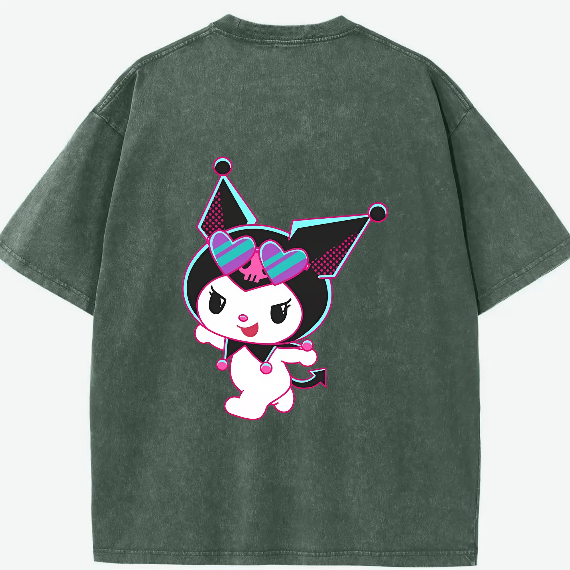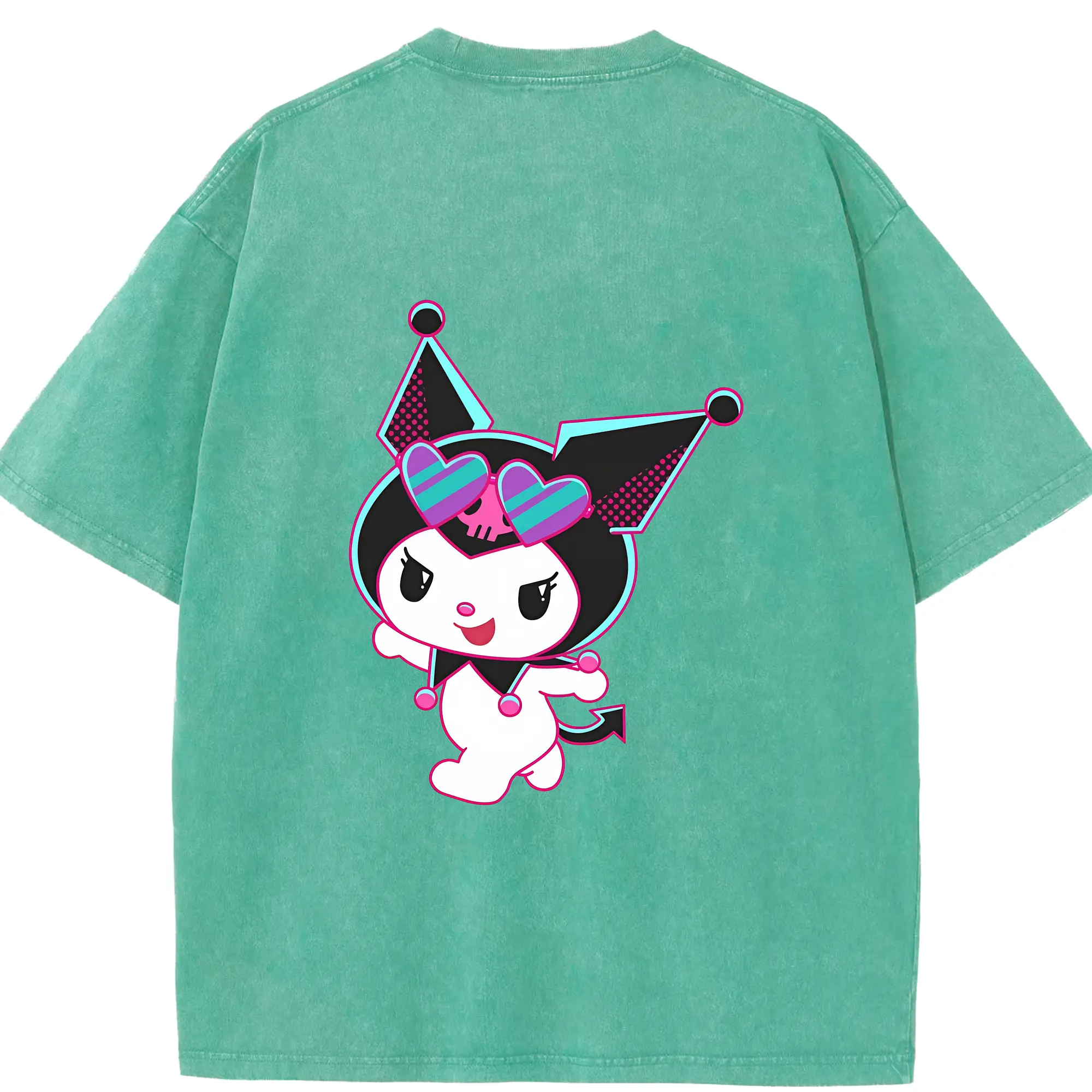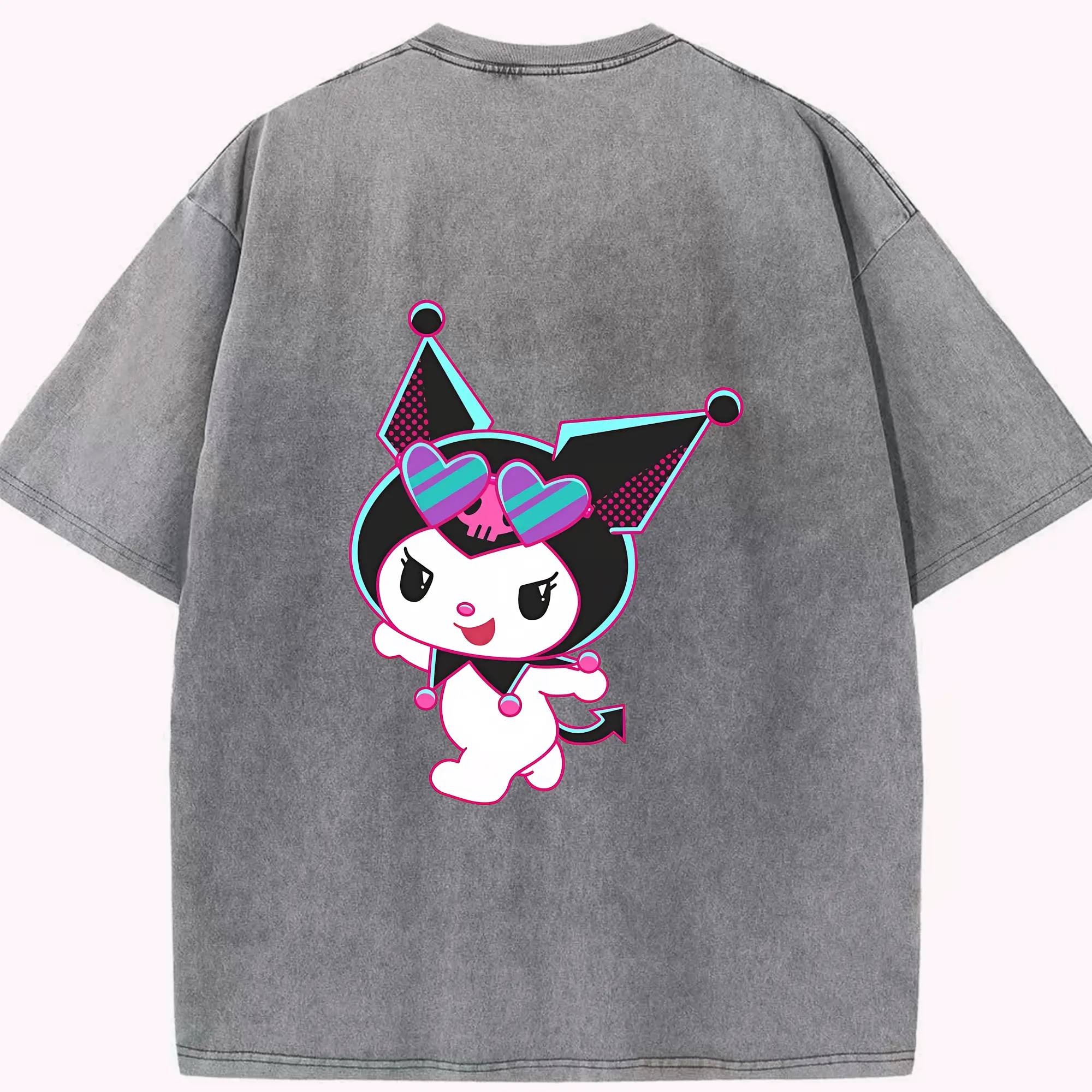 サンリオ グッズ,クロミ - 綿100% ヴィンテージ風 半袖Tシャツ ・ フロントプリント ・ 柔らか肌触り ・ 通気性 快適 ・ スポーツ カジュアル 外出用