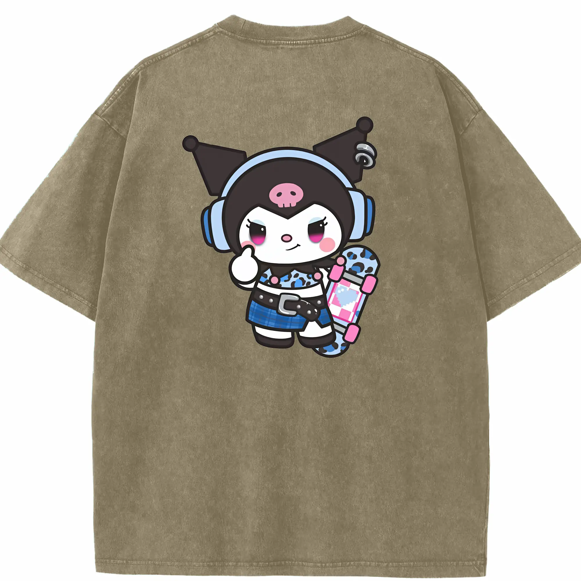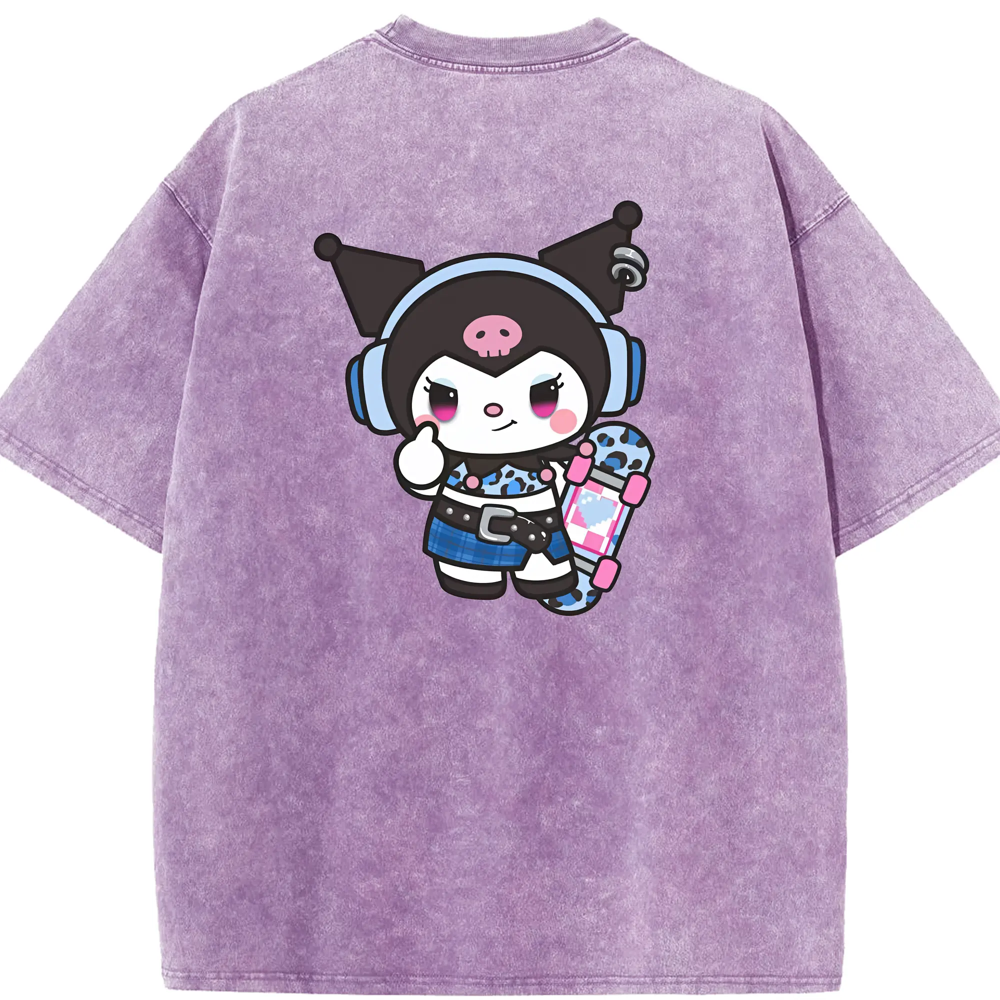 サンリオ グッズ,クロミ - 綿100% ヴィンテージ風 半袖Tシャツ ・ フロントプリント ・ 柔らか肌触り ・ 通気性 快適 ・ スポーツ カジュアル 外出用