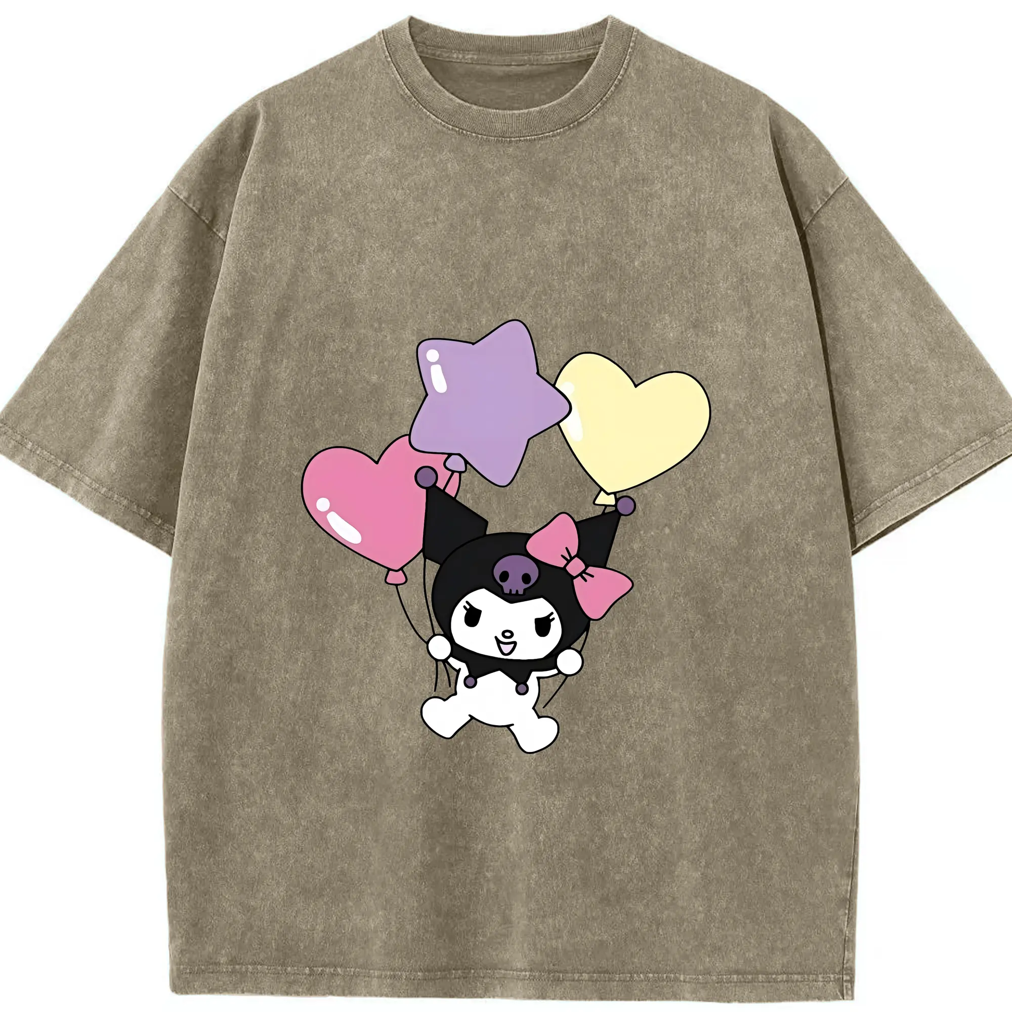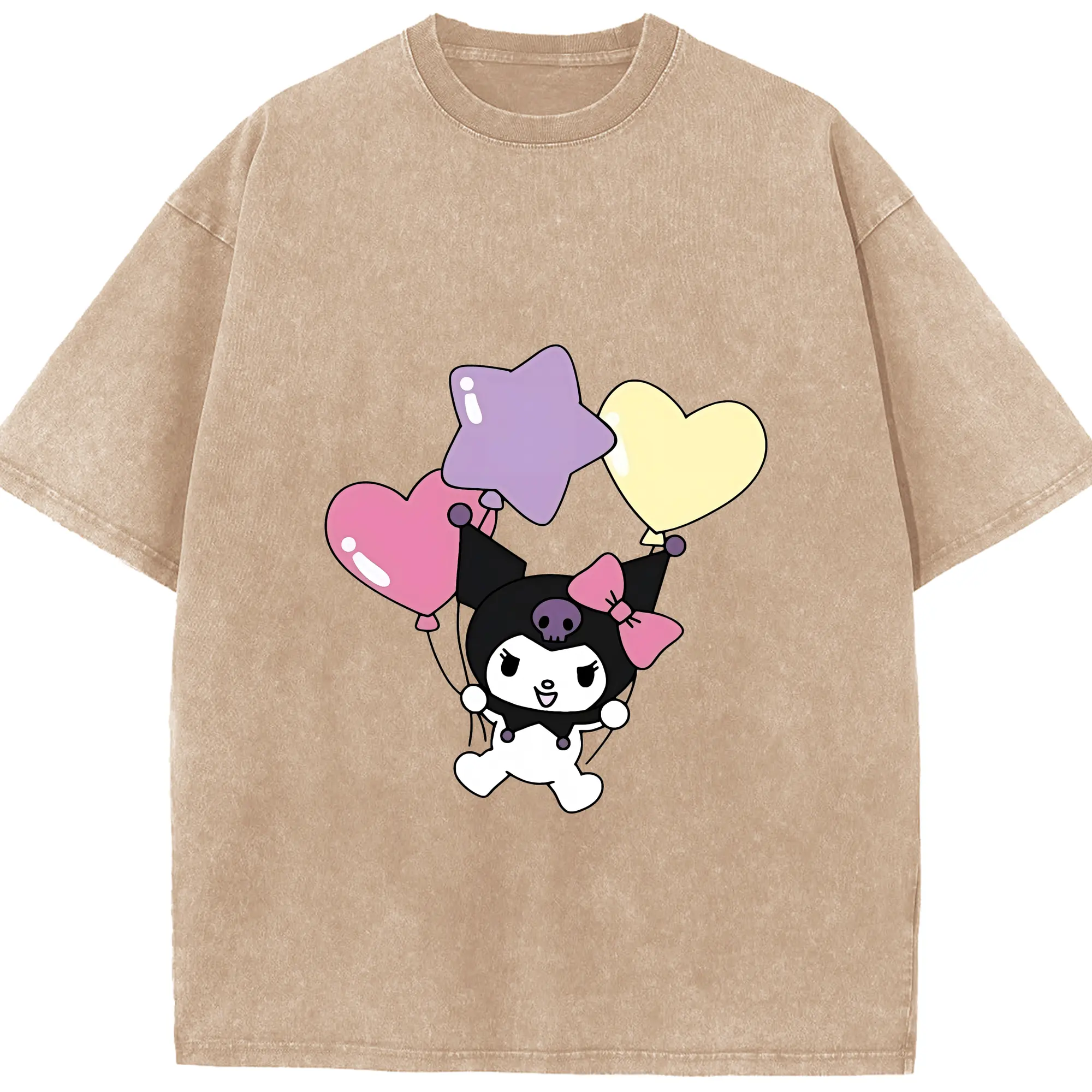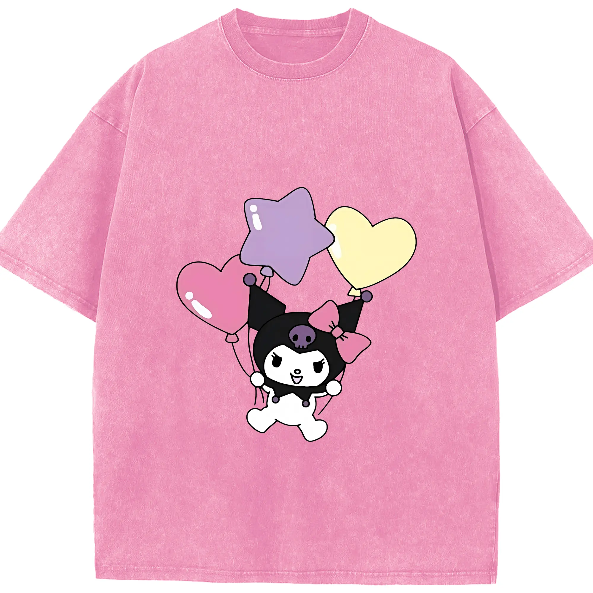 サンリオ グッズ,クロミ - 綿100% ヴィンテージ風 半袖Tシャツ ・ 背面プリント ・ 柔らか肌触り ・ 通気性 快適 ・ スポーツ カジュアル 外出用