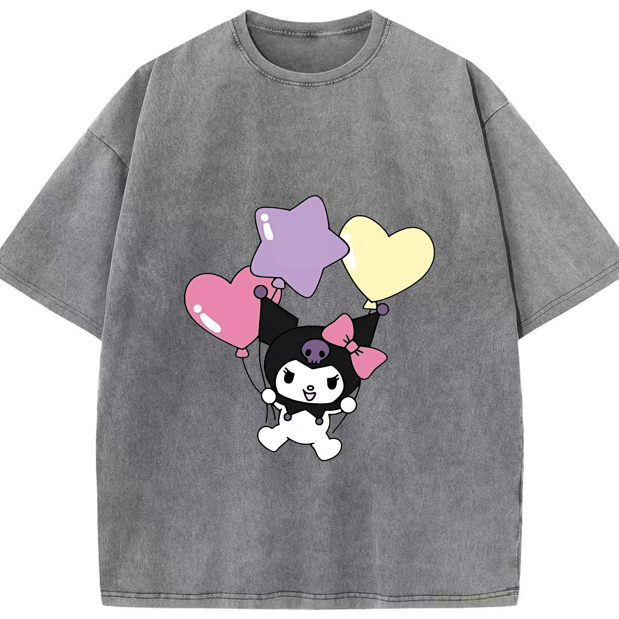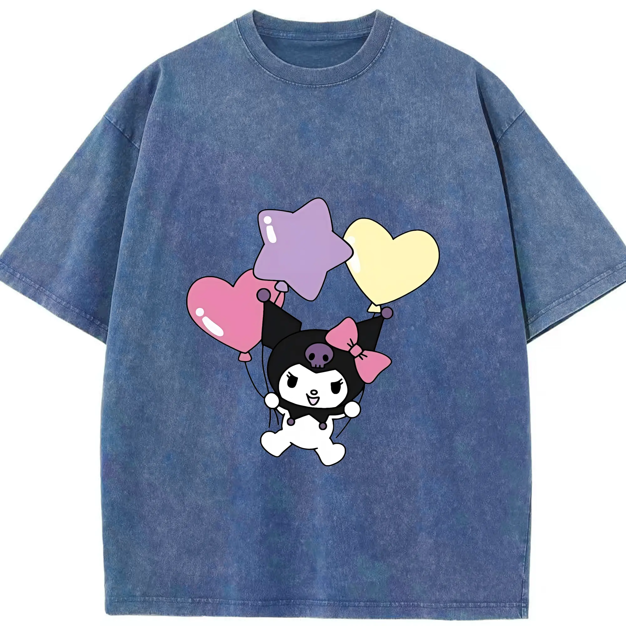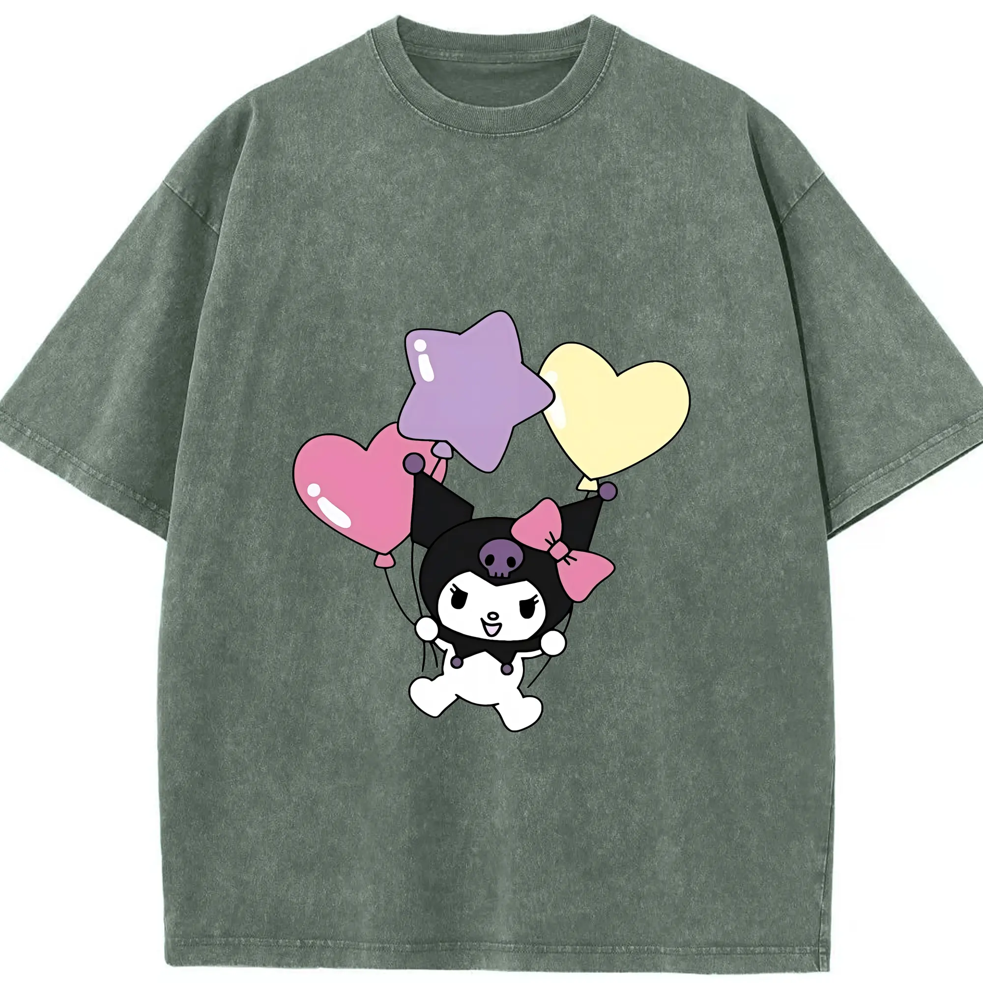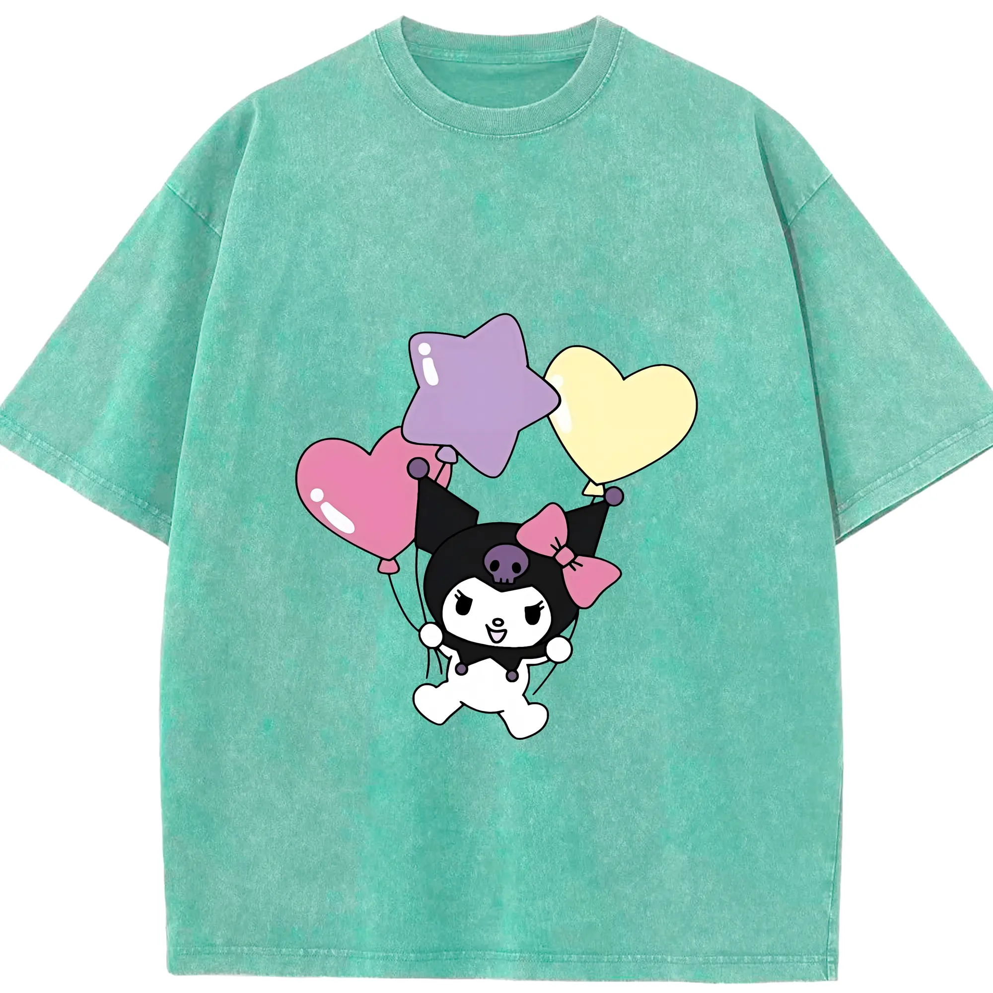 サンリオ グッズ,クロミ - 綿100% ヴィンテージ風 半袖Tシャツ ・ 背面プリント ・ 柔らか肌触り ・ 通気性 快適 ・ スポーツ カジュアル 外出用