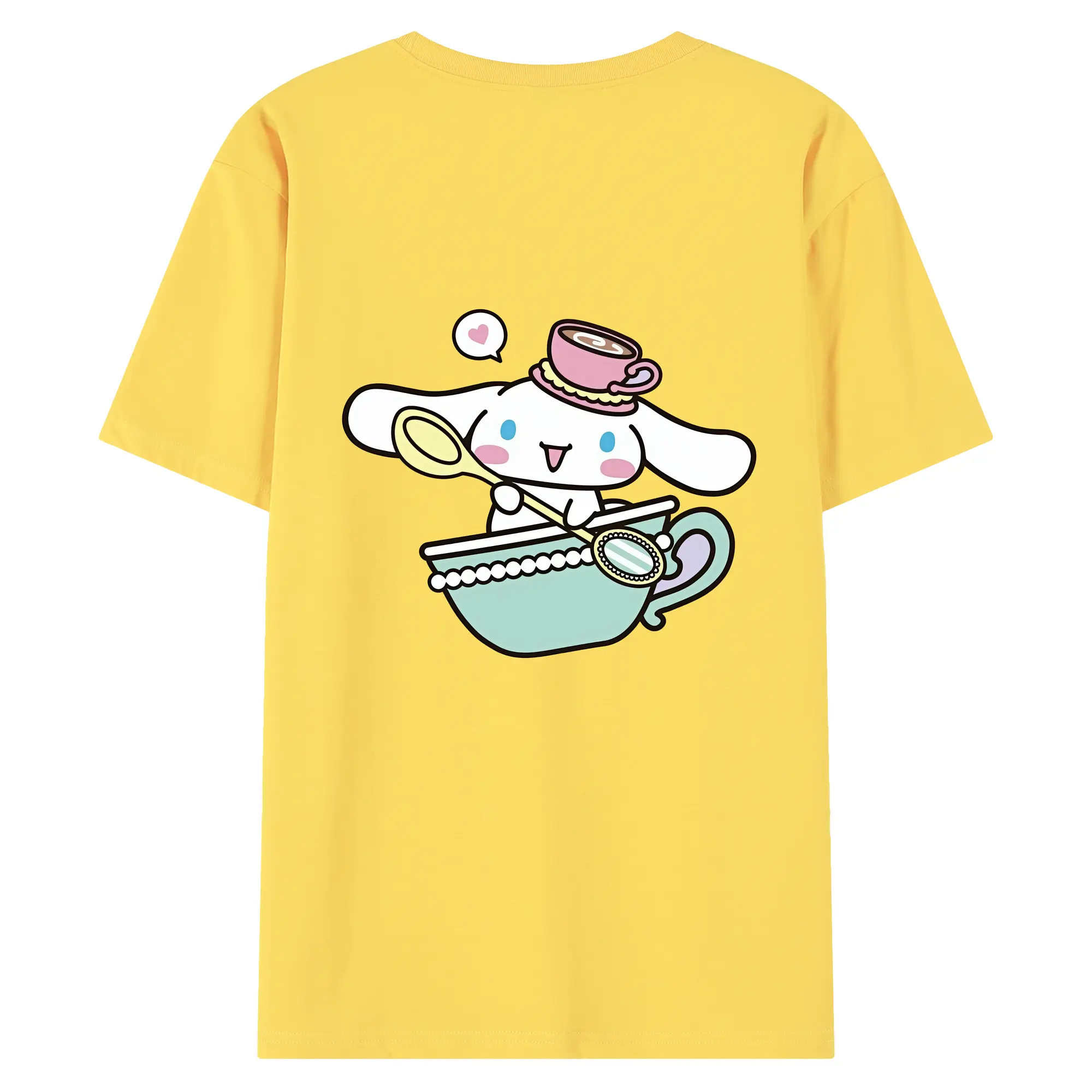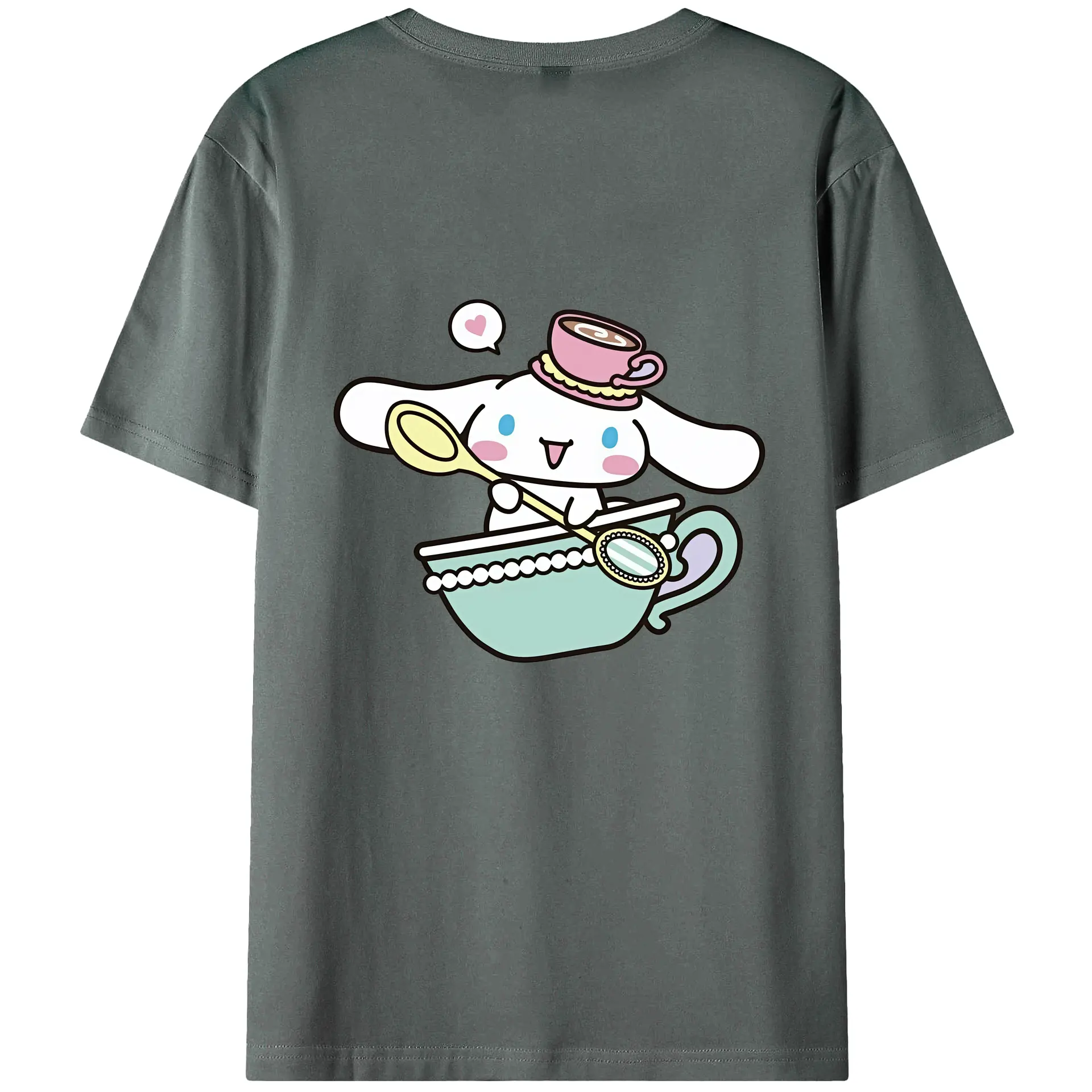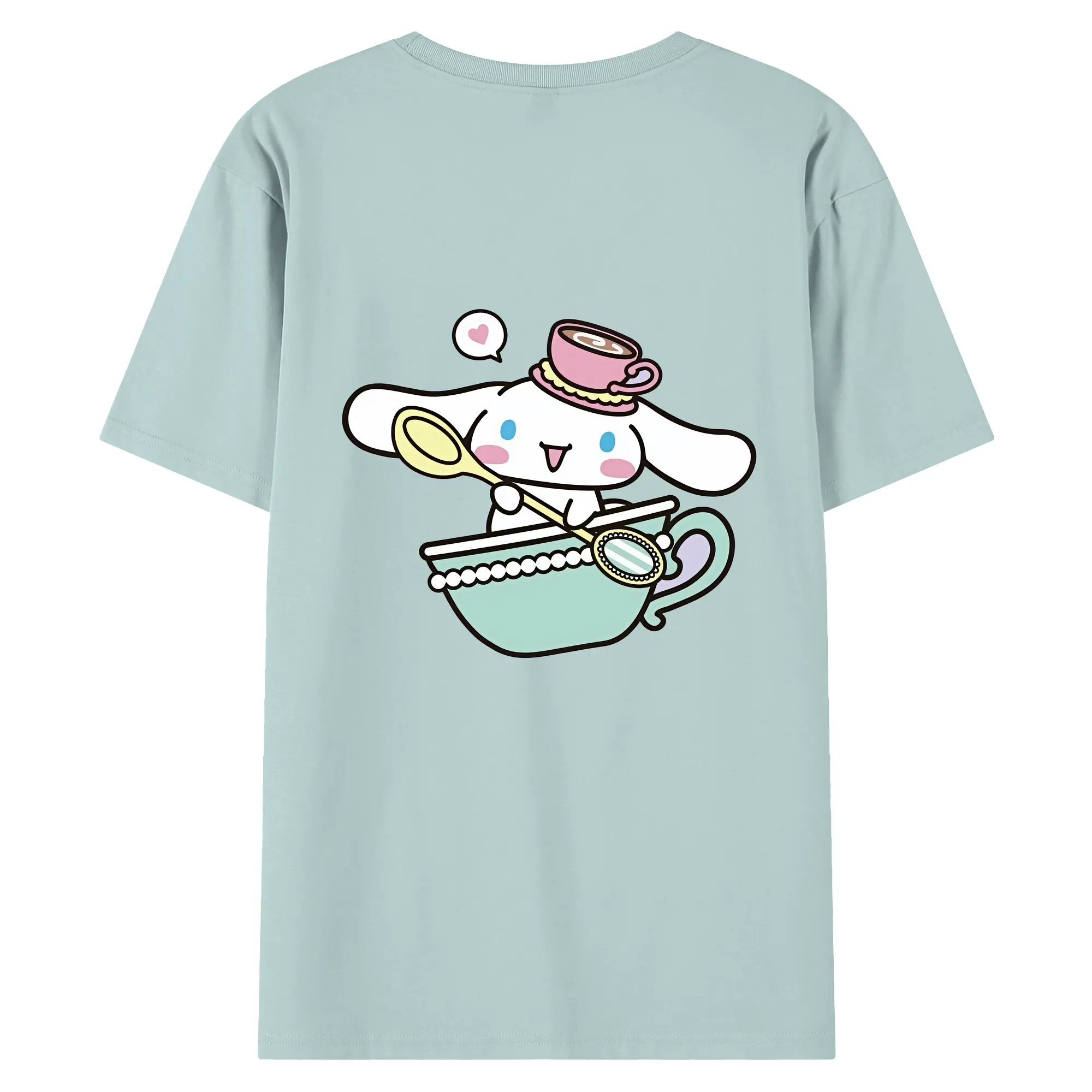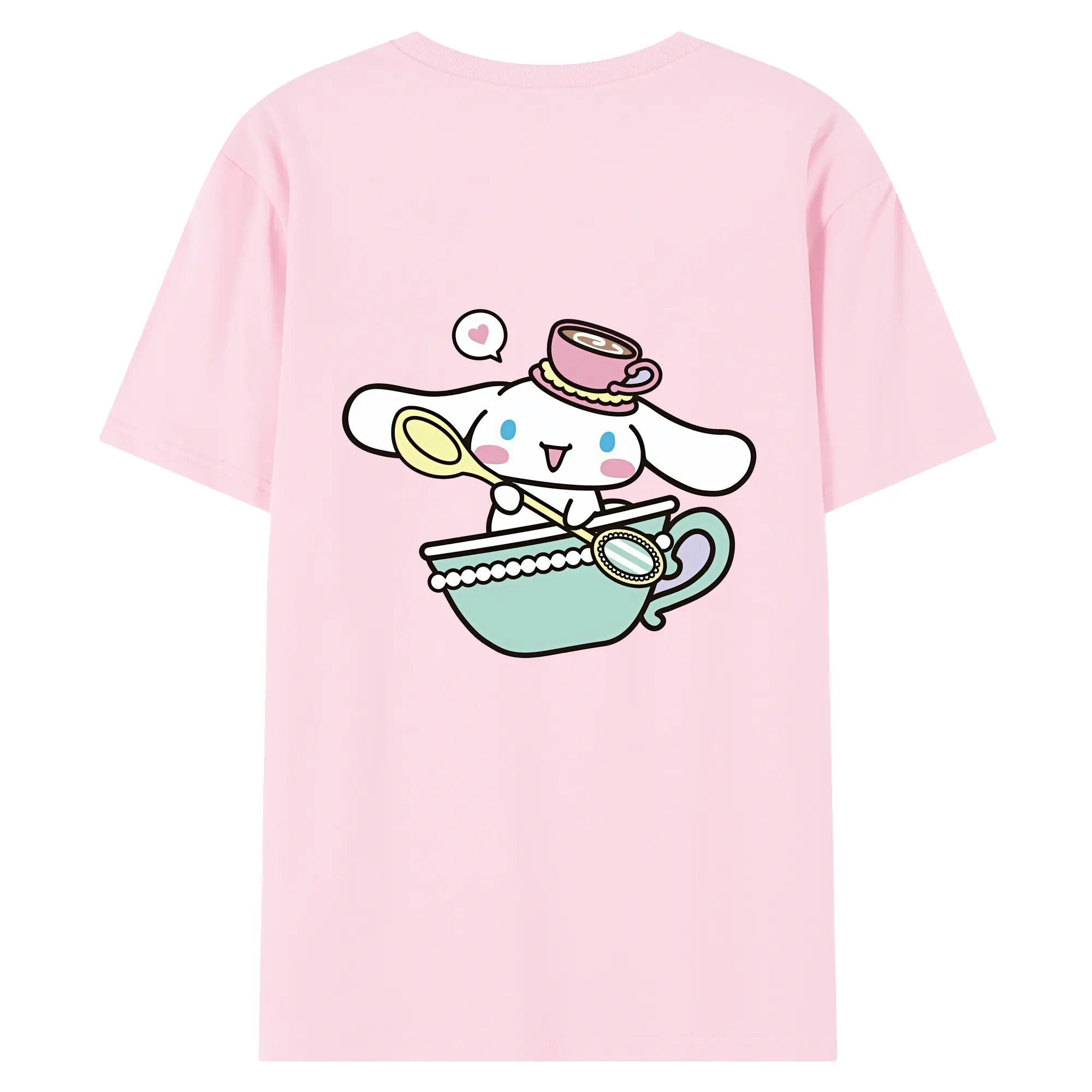 サンリオ グッズ,シナモロール - 綿100% 半袖Tシャツ ・ フロントプリント ・ 快適 通気性 ・ 日常使い 散歩 スポーツ用