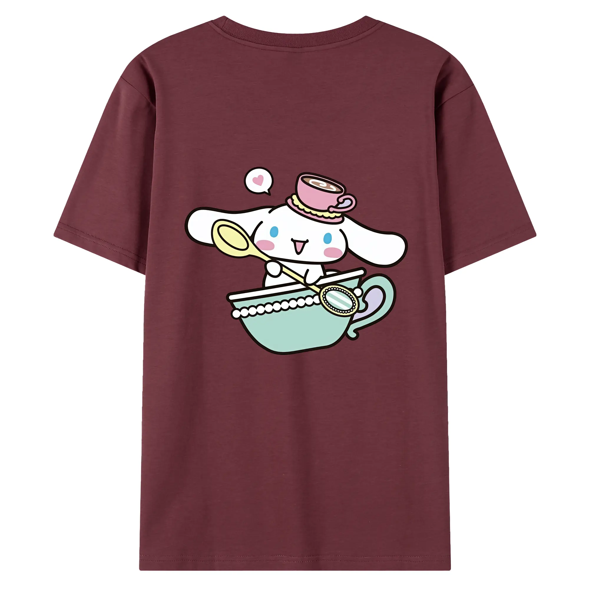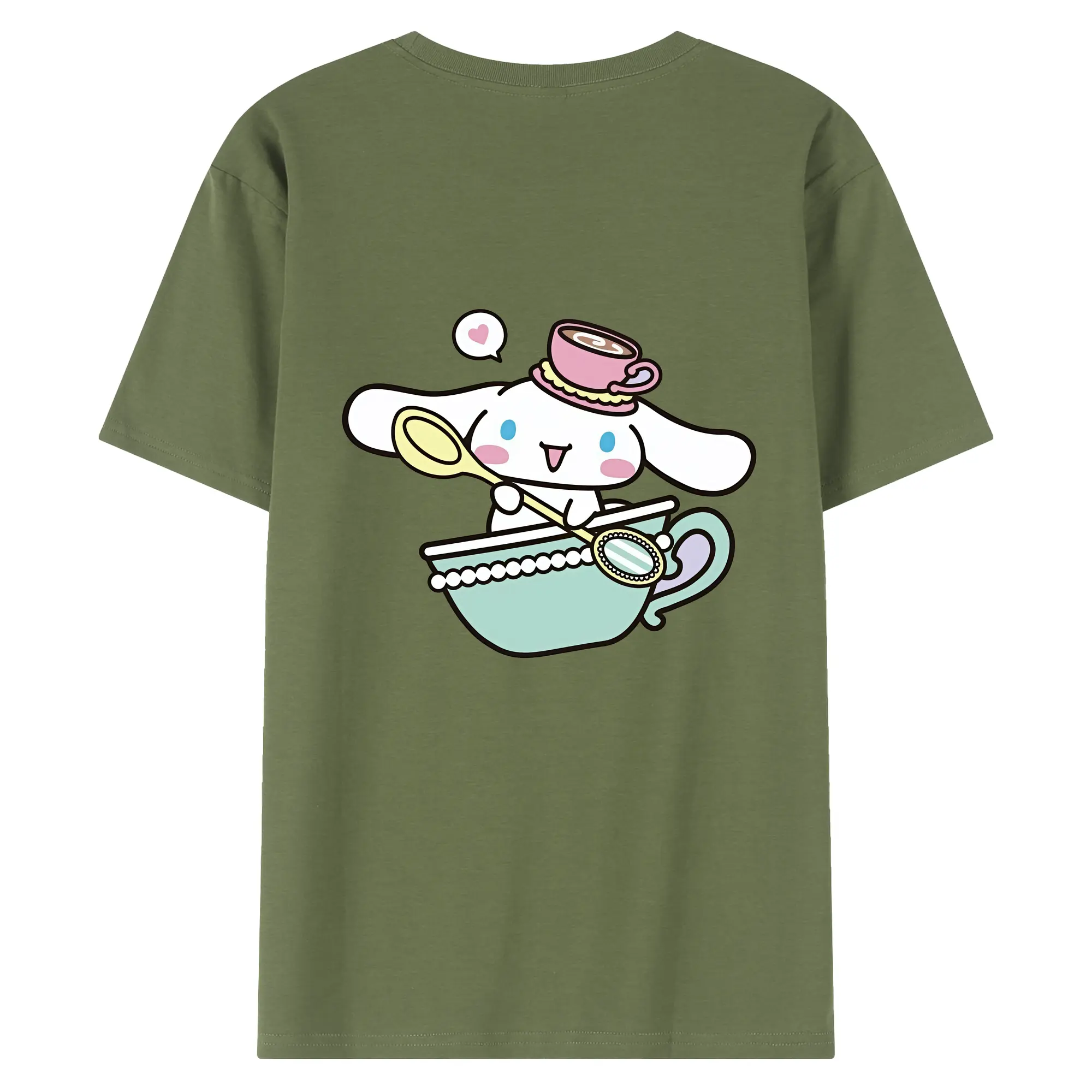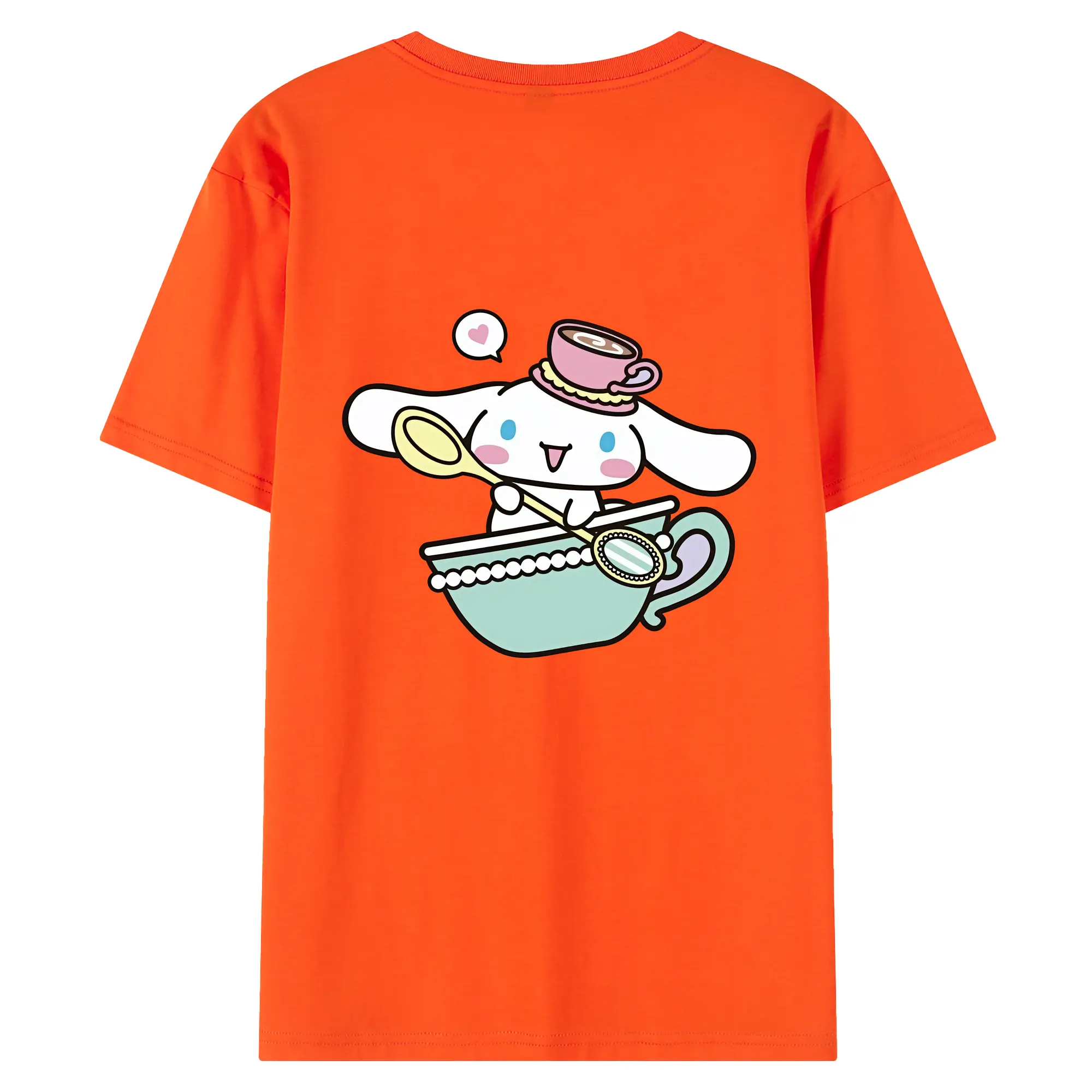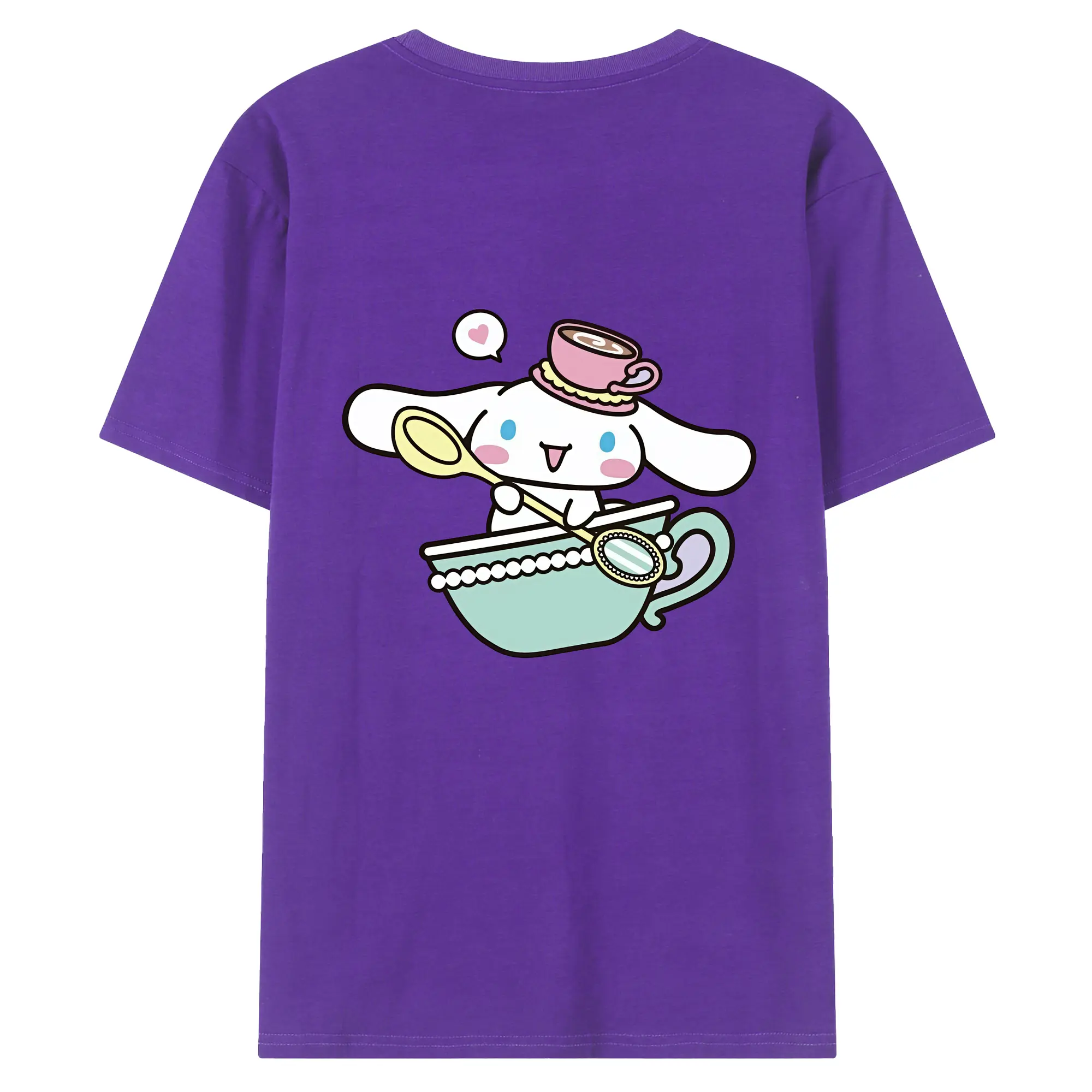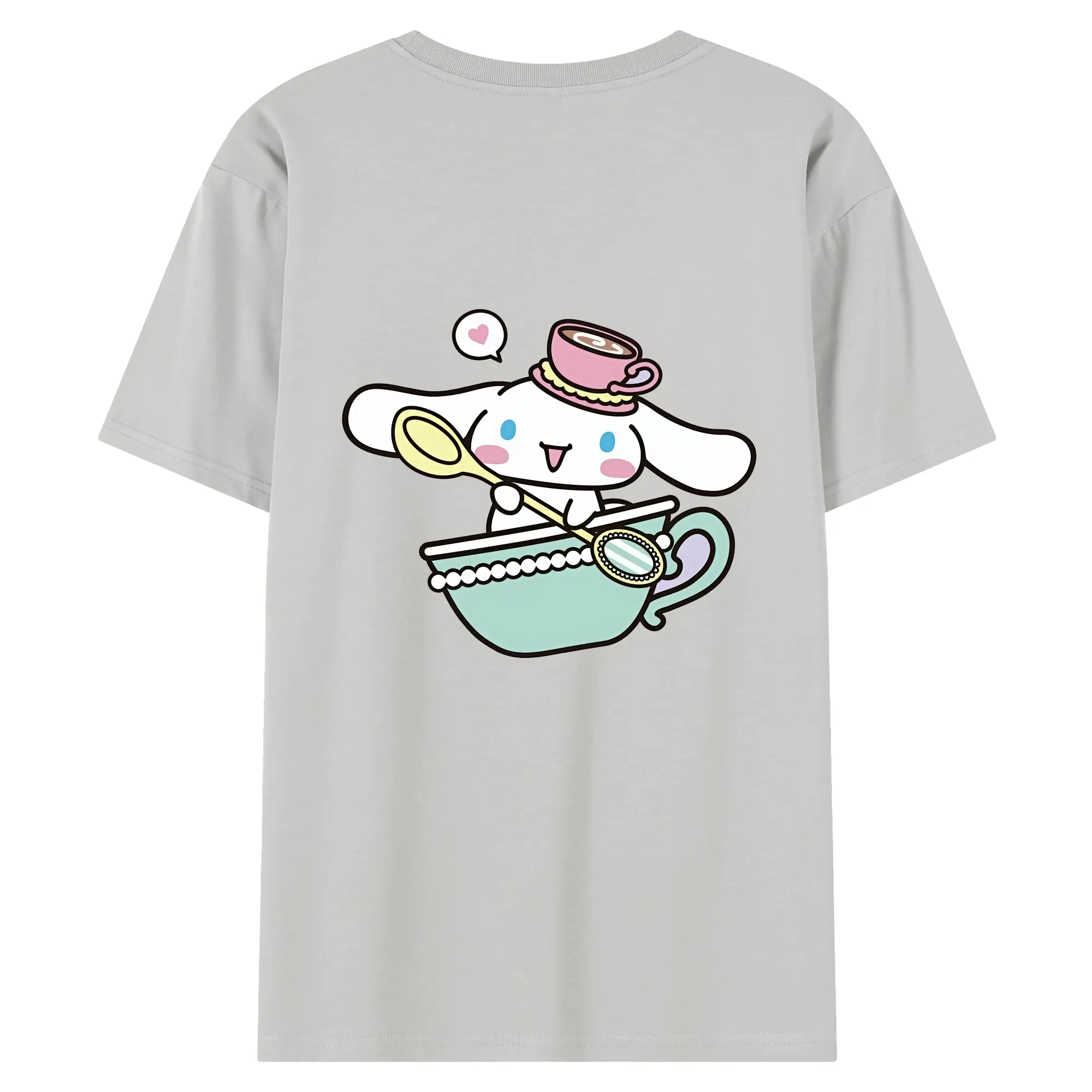 サンリオ グッズ,シナモロール - 綿100% 半袖Tシャツ ・ フロントプリント ・ 快適 通気性 ・ 日常使い 散歩 スポーツ用