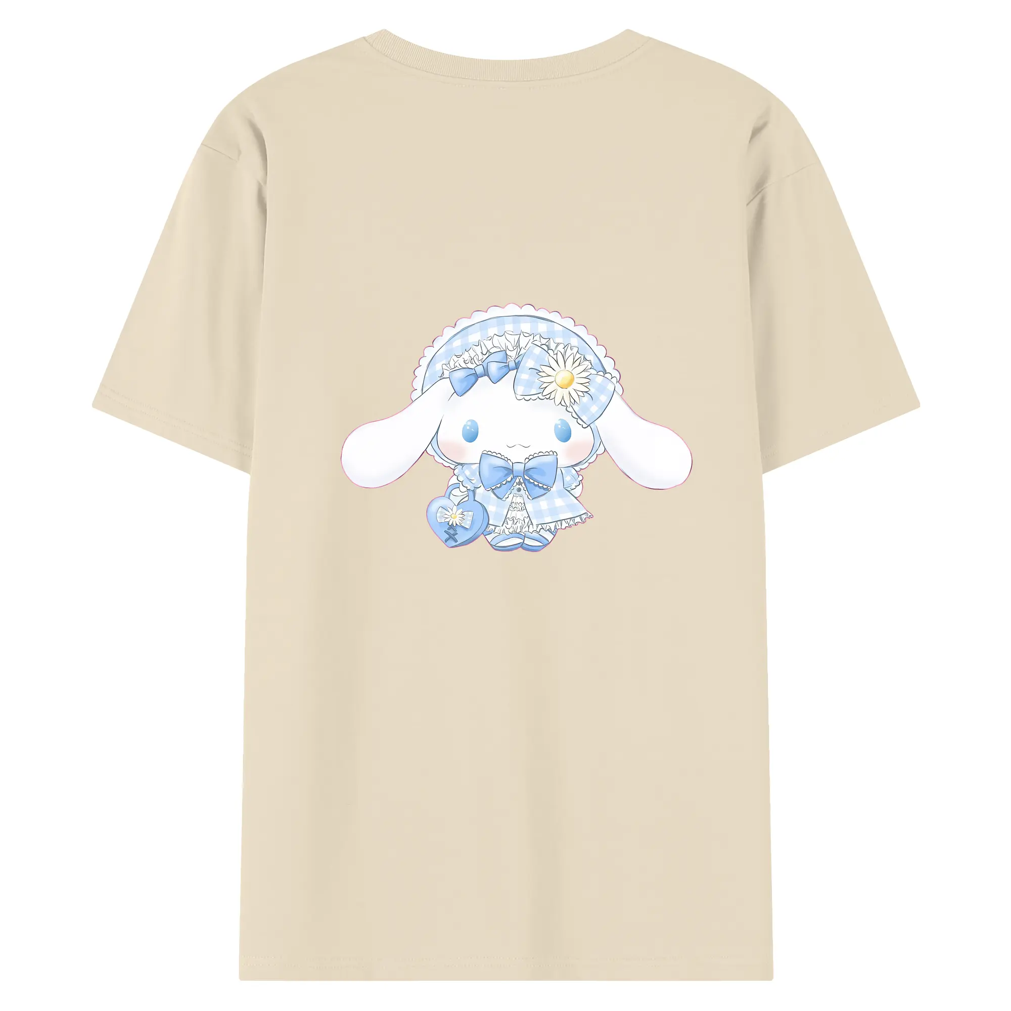 サンリオ グッズ,シナモロール - 綿100% ヴィンテージ風 半袖Tシャツ ・ 背面プリント ・ 柔らか肌触り ・ 通気性 快適 ・ スポーツ カジュアル 外出用