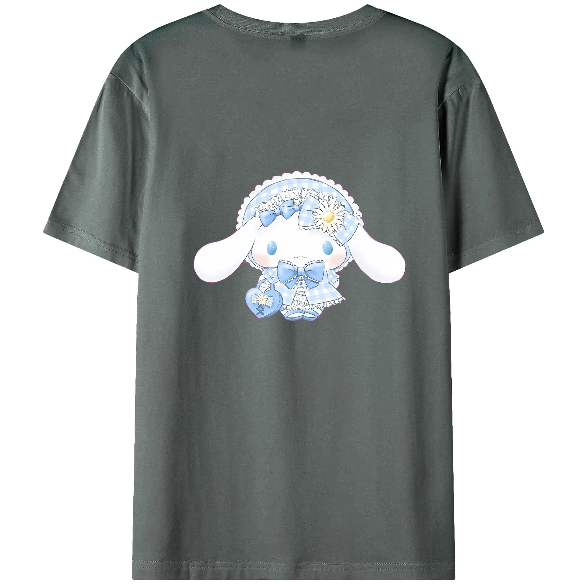 サンリオ グッズ,シナモロール - 綿100% 半袖Tシャツ ・ フロントプリント ・ 快適 通気性 ・ 日常使い 散歩 スポーツ用