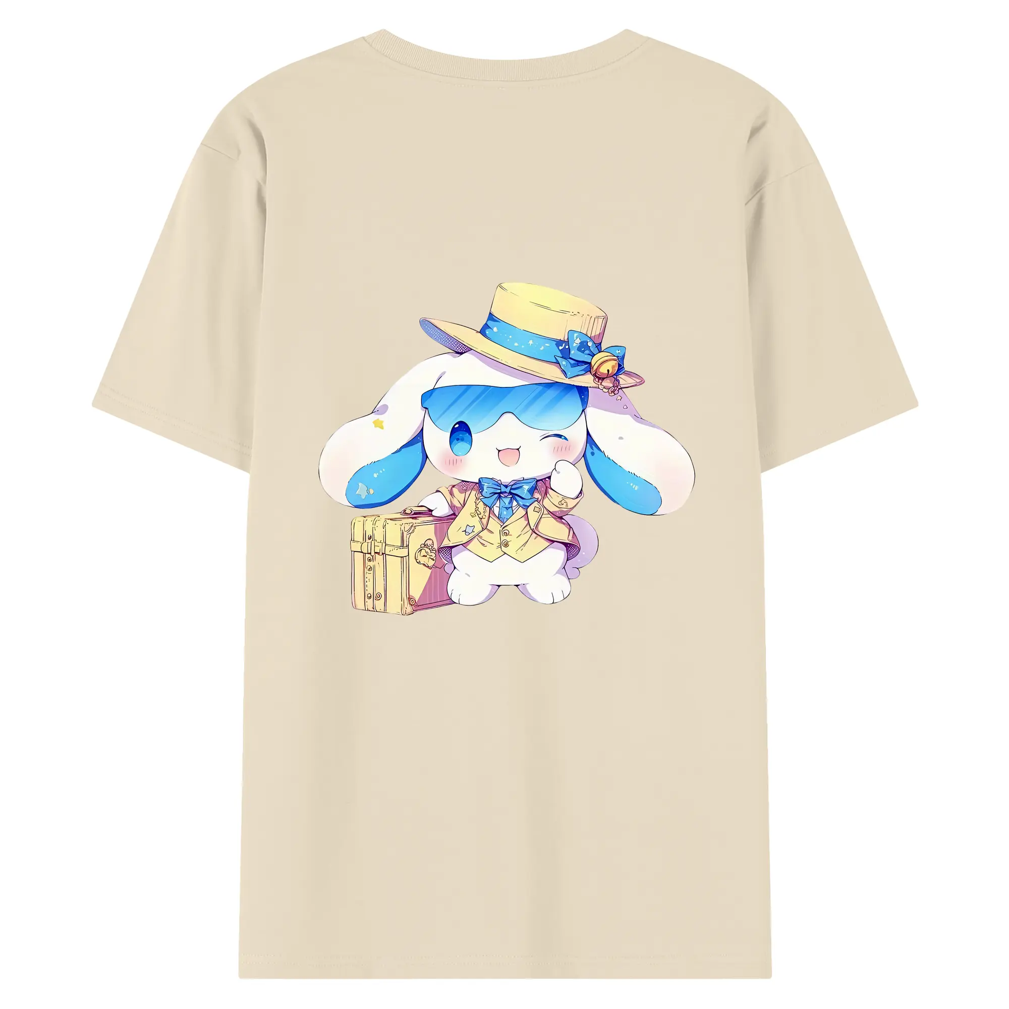 サンリオ グッズ,シナモロール - 綿100% ヴィンテージ風 半袖Tシャツ ・ 背面プリント ・ 柔らか肌触り ・ 通気性 快適 ・ スポーツ カジュアル 外出用