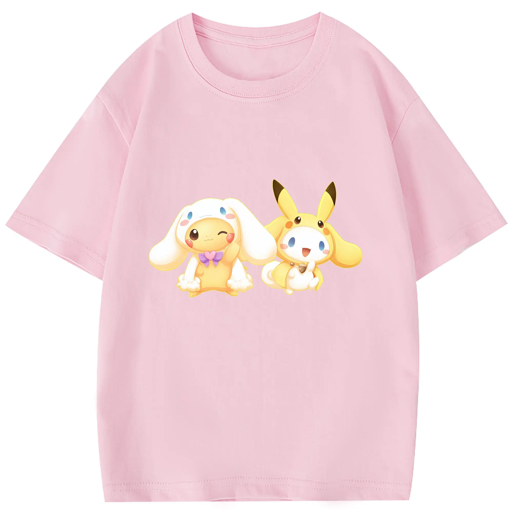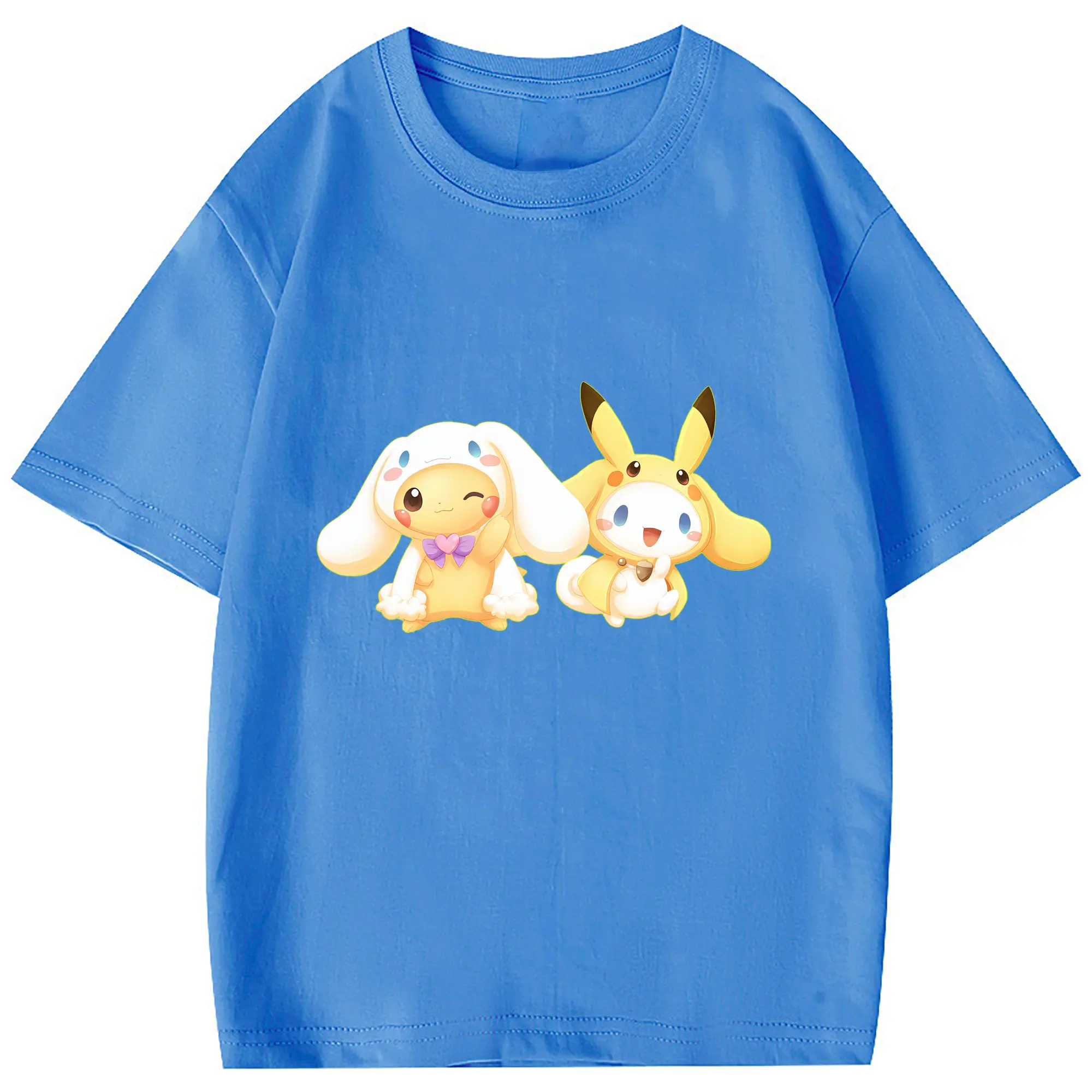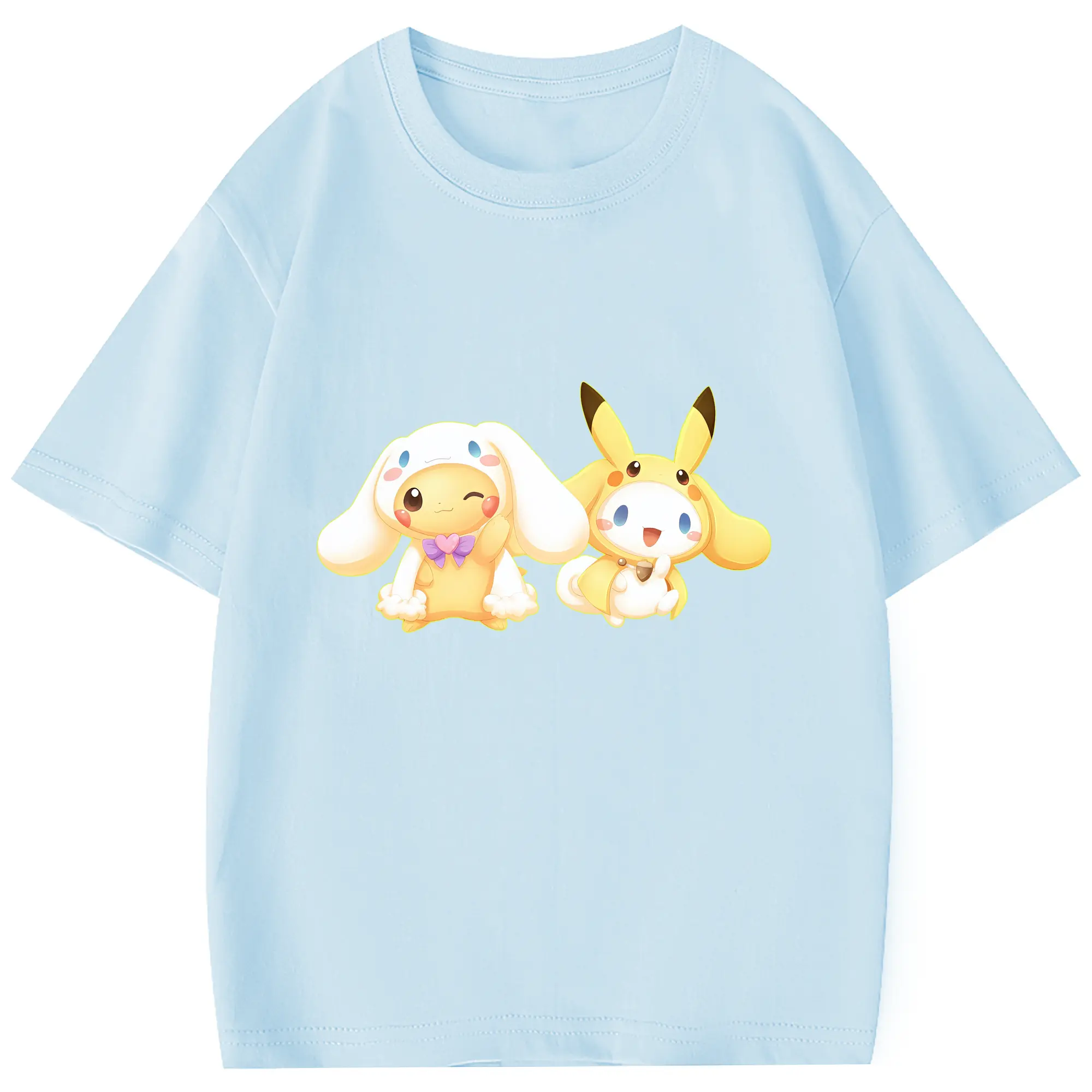 サンリオ グッズ,シナモロール - 綿100% 半袖Tシャツ ・ フロントプリント ・ 快適 通気性 ・ 日常使い 散歩 スポーツ用