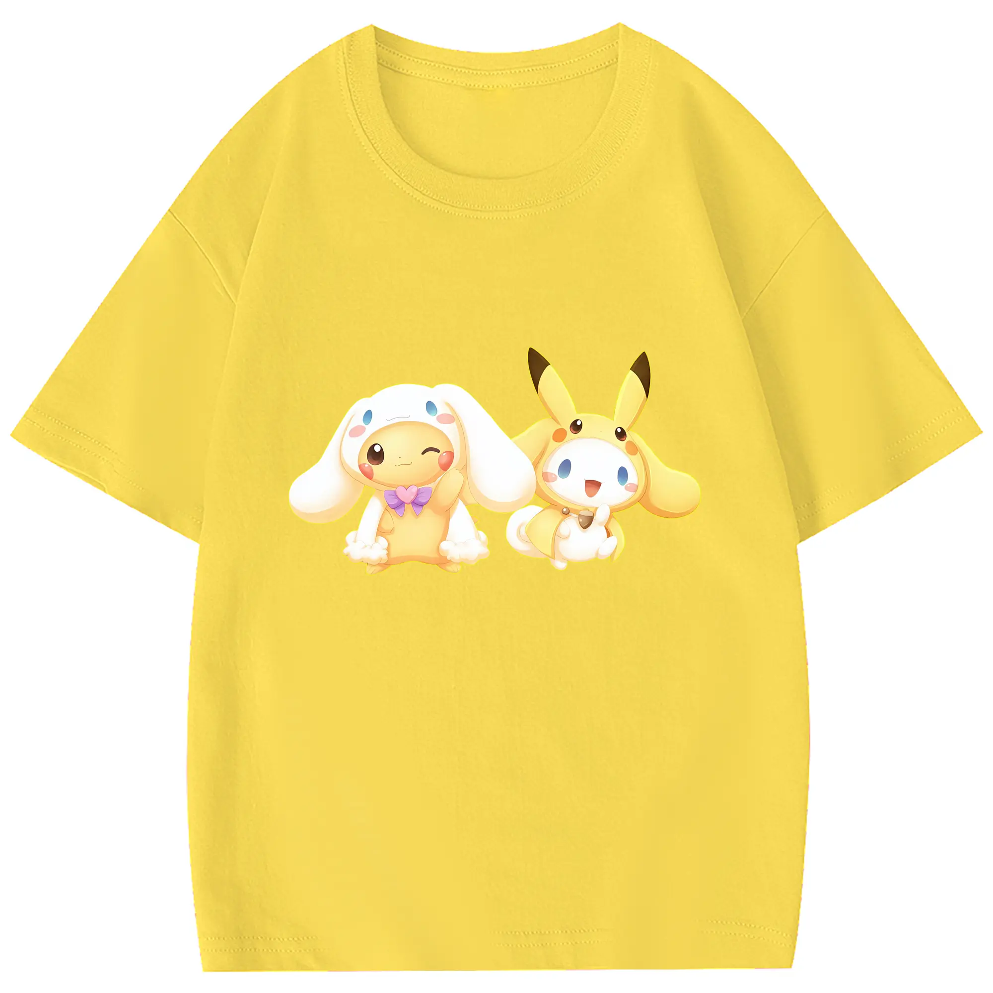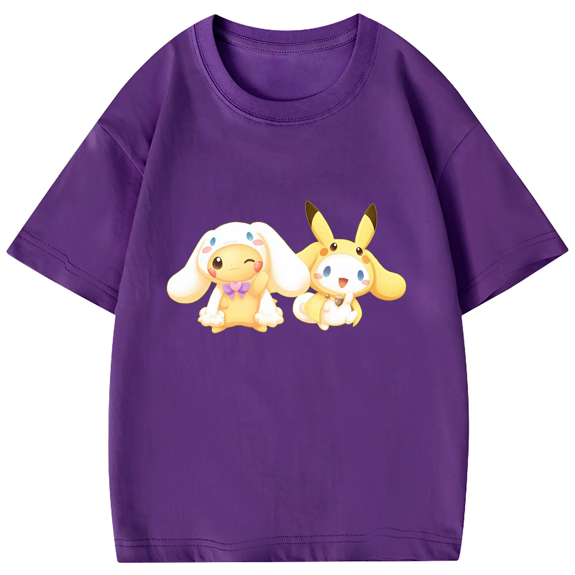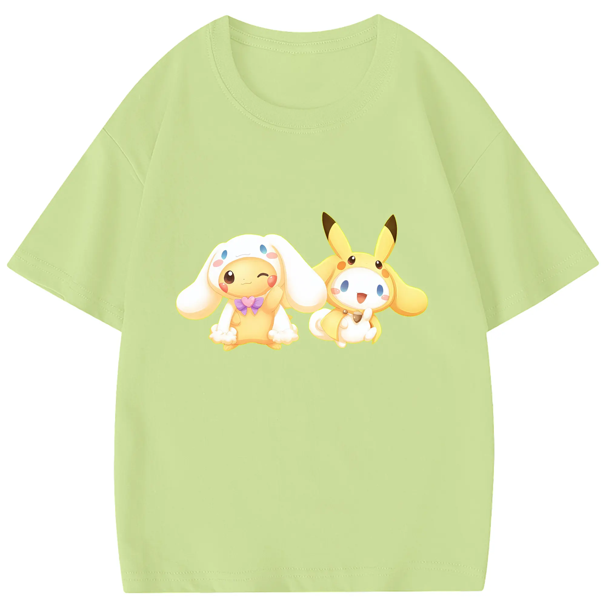 サンリオ グッズ,シナモロール - 綿100% 半袖Tシャツ ・ フロントプリント ・ 快適 通気性 ・ 日常使い 散歩 スポーツ用