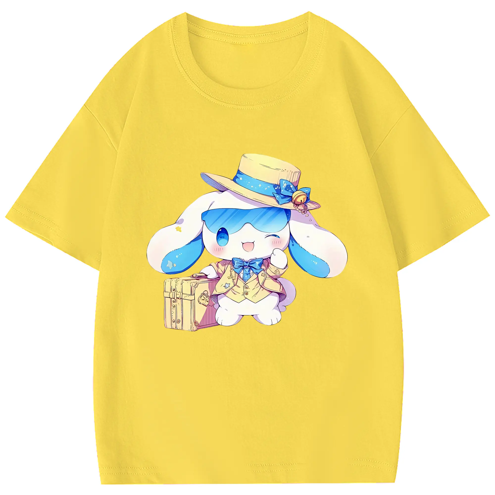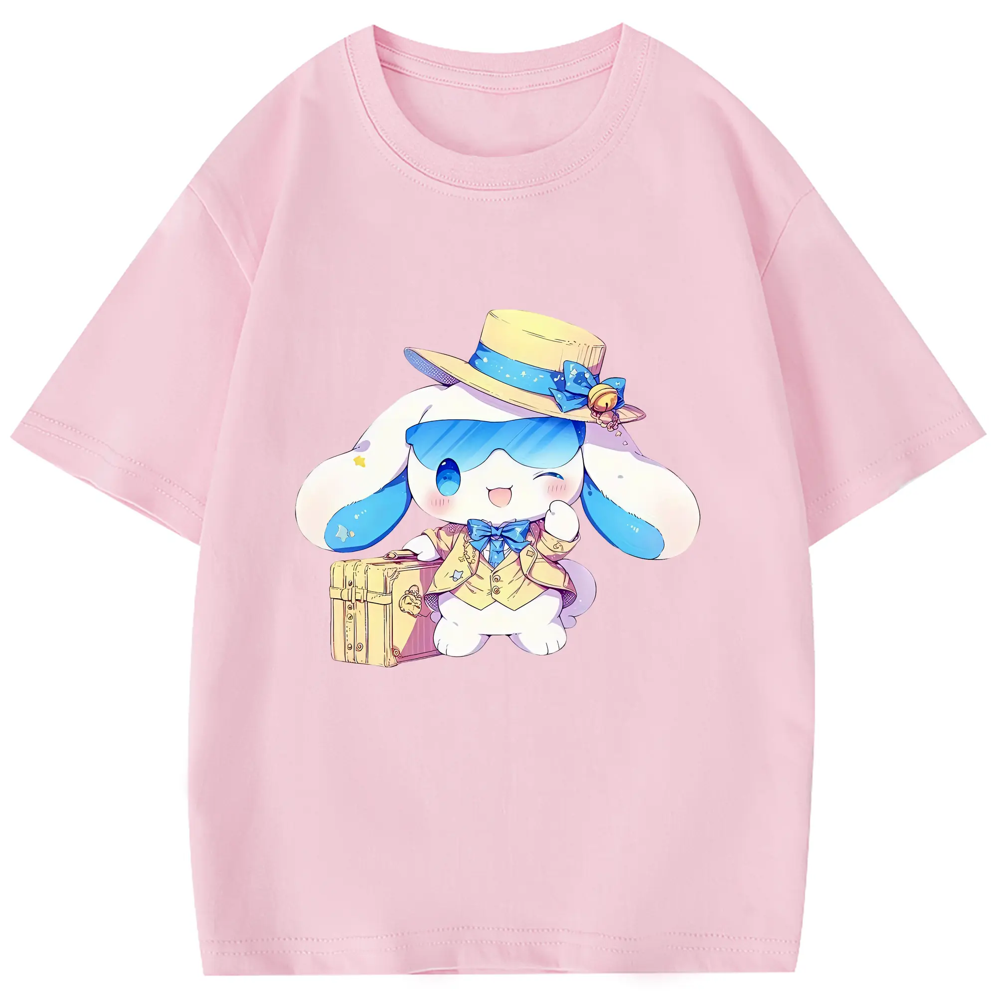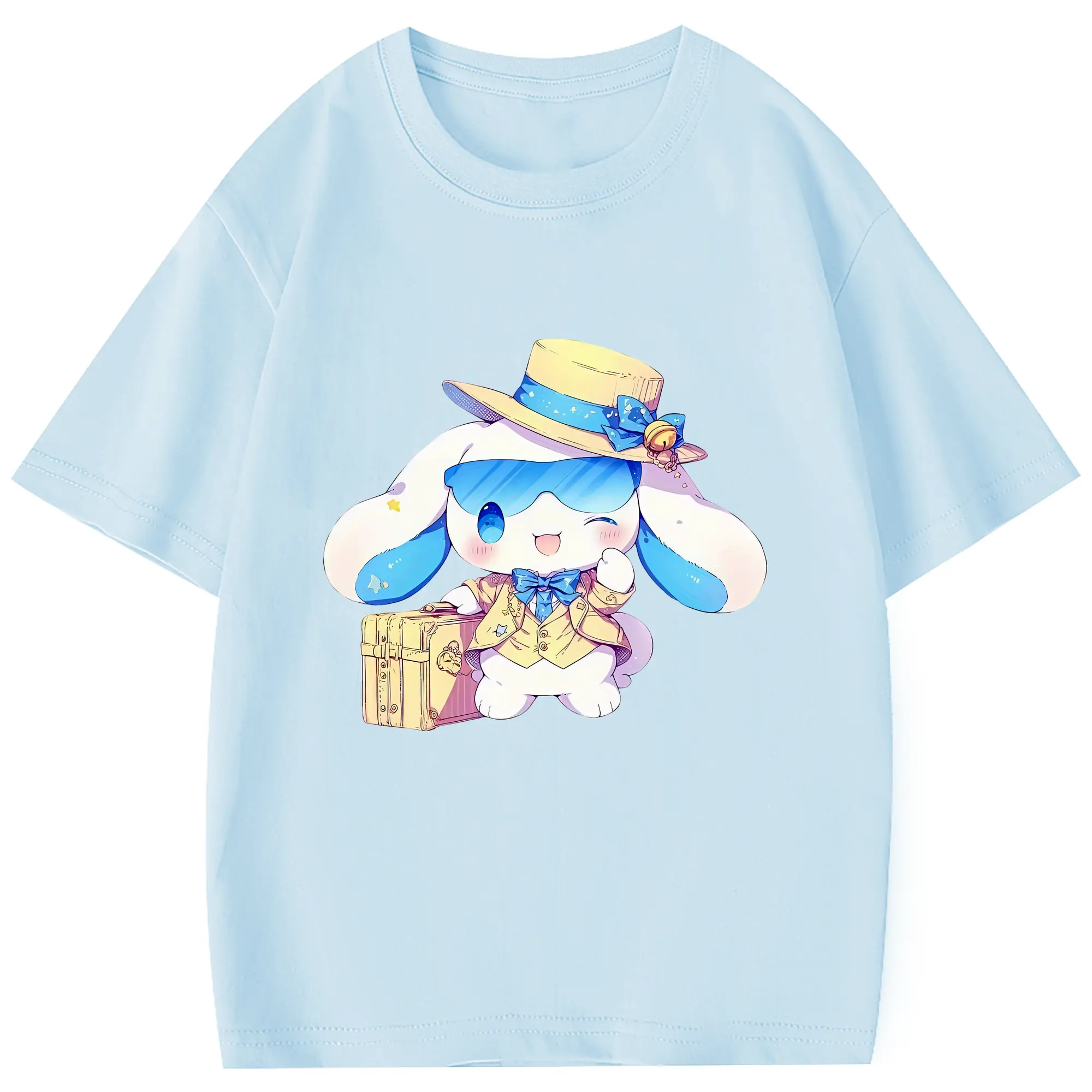 サンリオ グッズ,シナモロール - 綿100% 半袖Tシャツ ・ フロントプリント ・ 快適 通気性 ・ 日常使い 散歩 スポーツ用