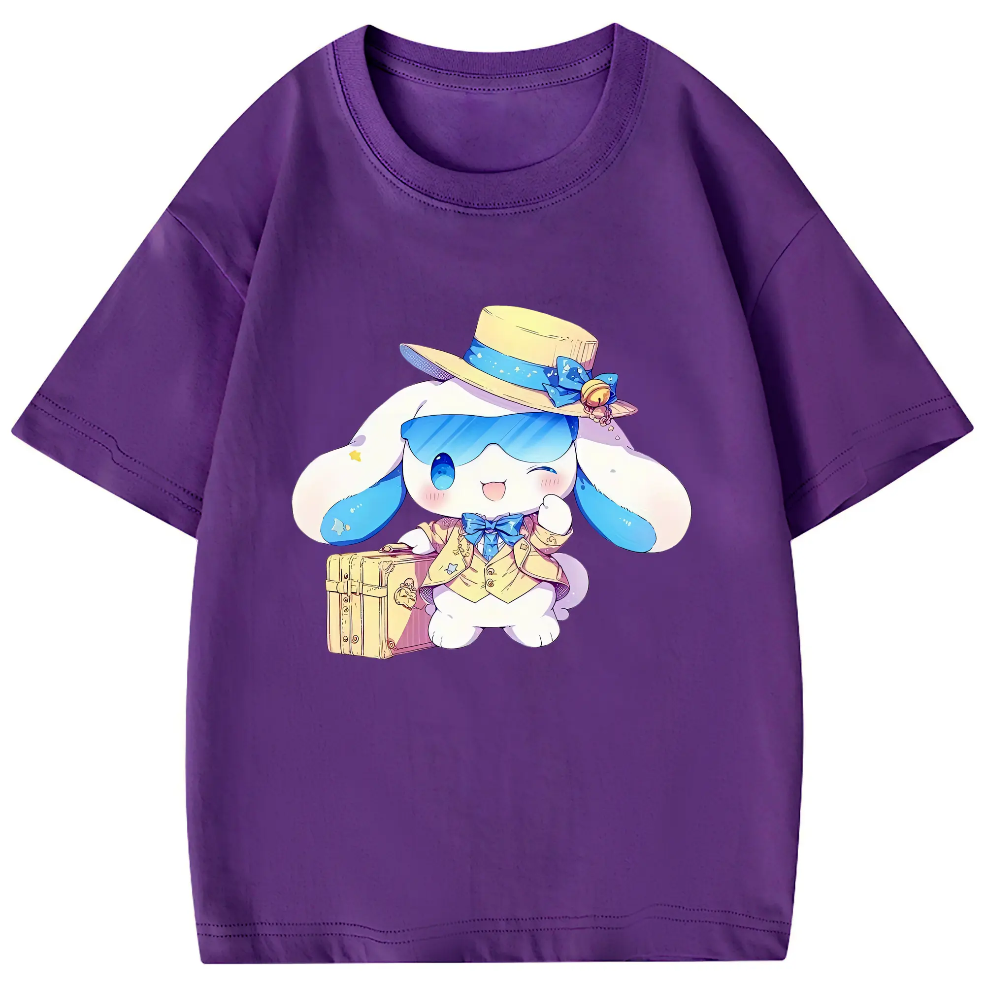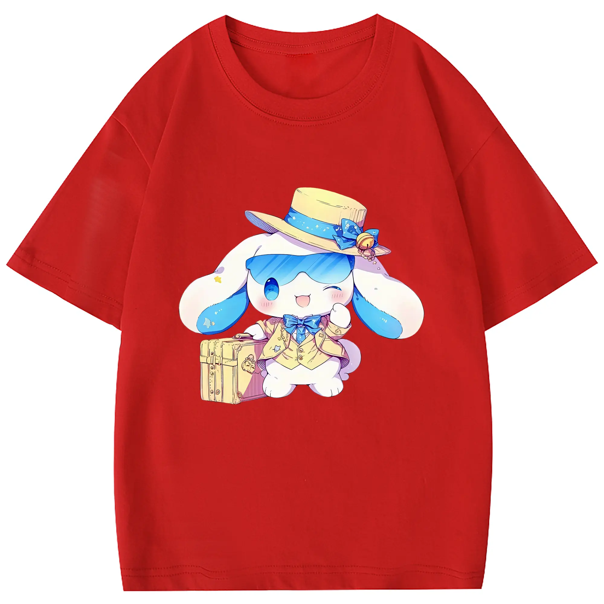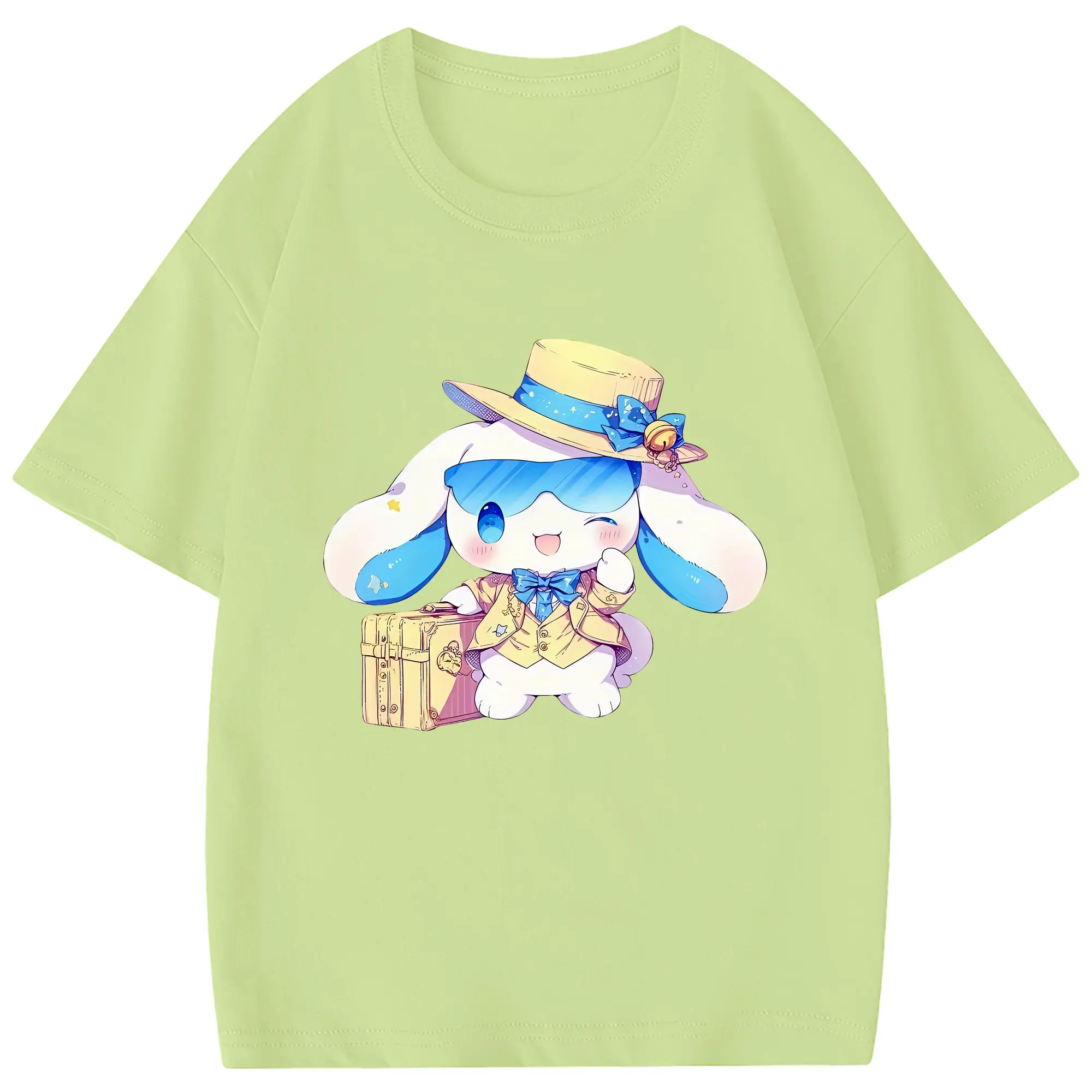 サンリオ グッズ,シナモロール - 綿100% 半袖Tシャツ ・ フロントプリント ・ 快適 通気性 ・ 日常使い 散歩 スポーツ用