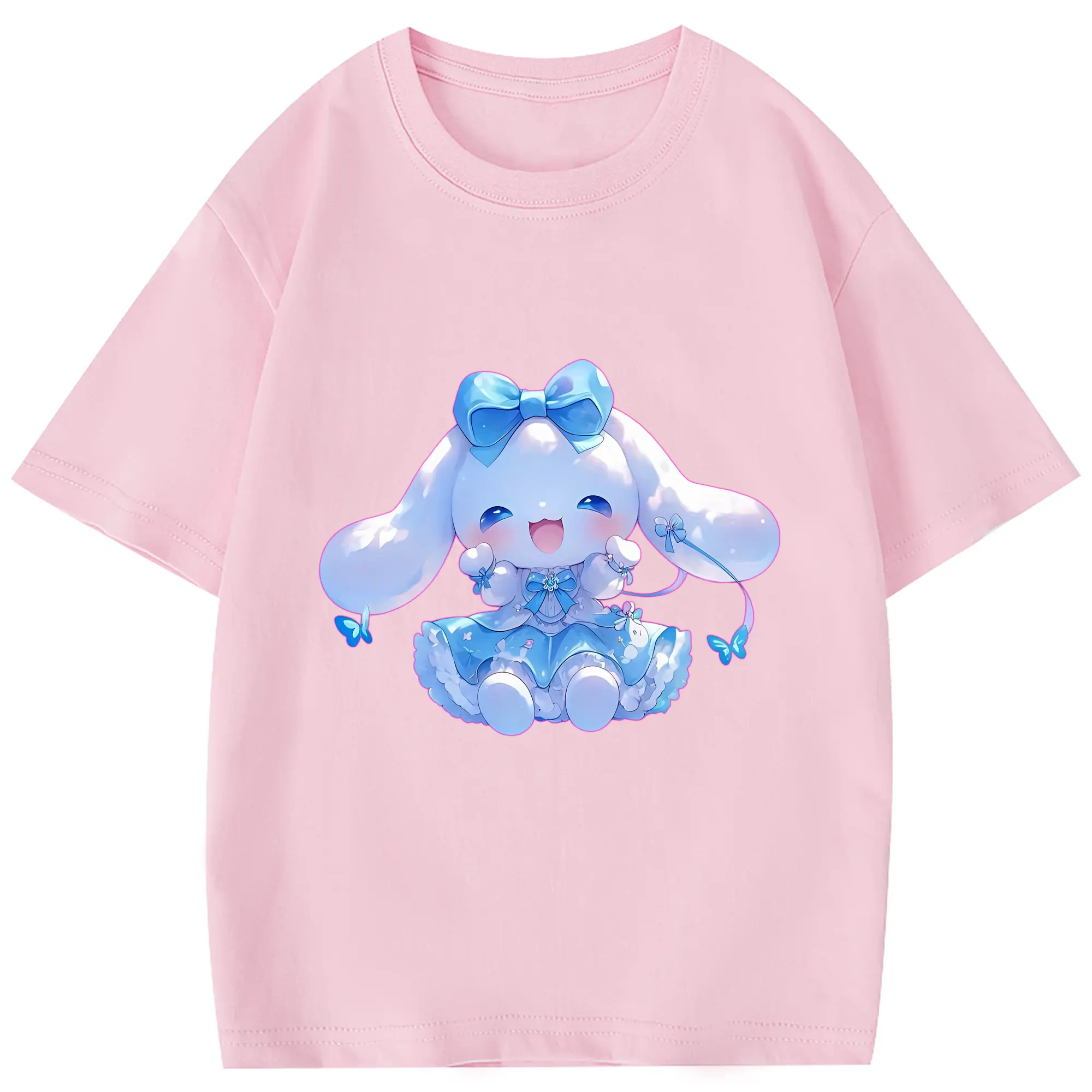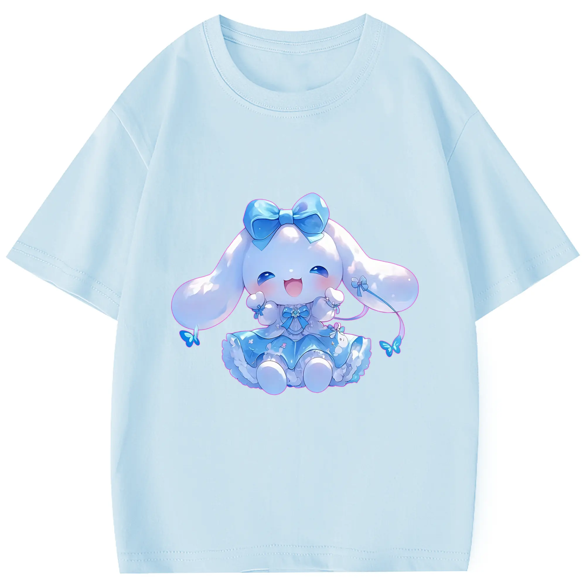 サンリオ グッズ,シナモロール - 綿100% 半袖Tシャツ ・ フロントプリント ・ 快適 通気性 ・ 日常使い 散歩 スポーツ用