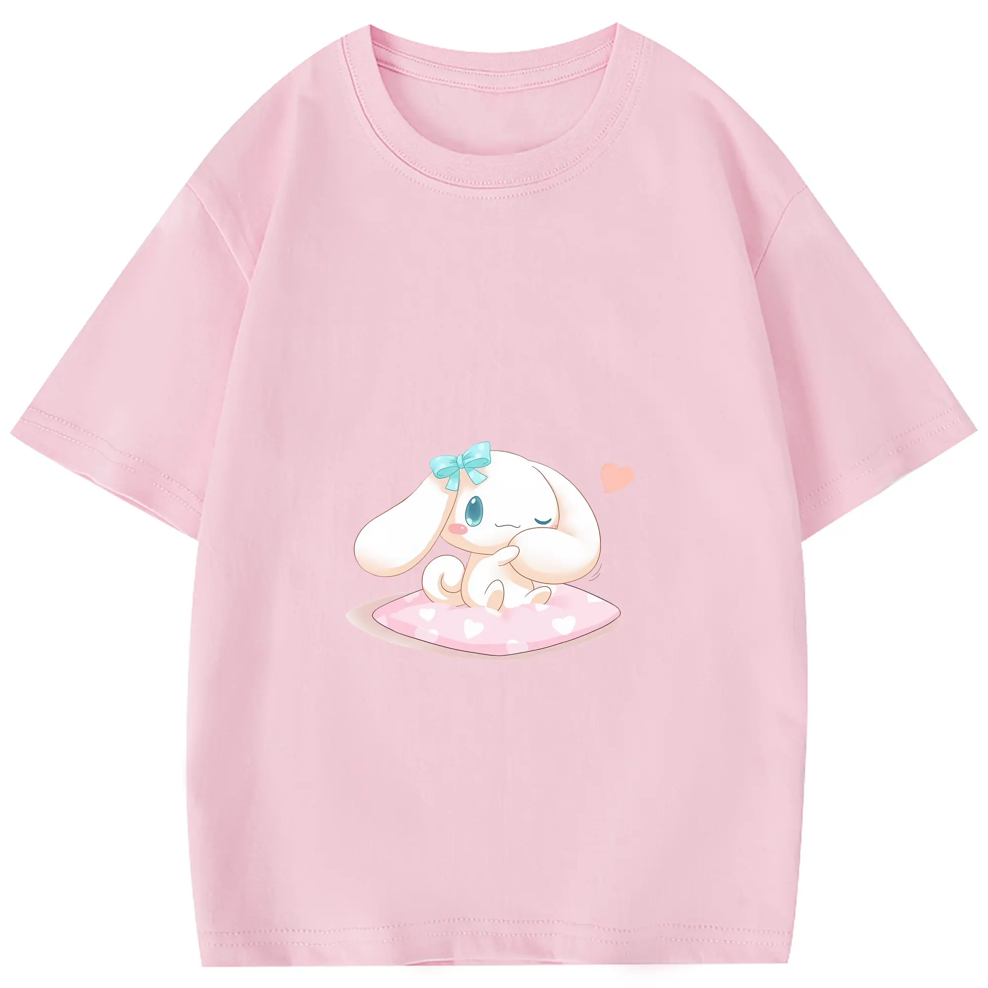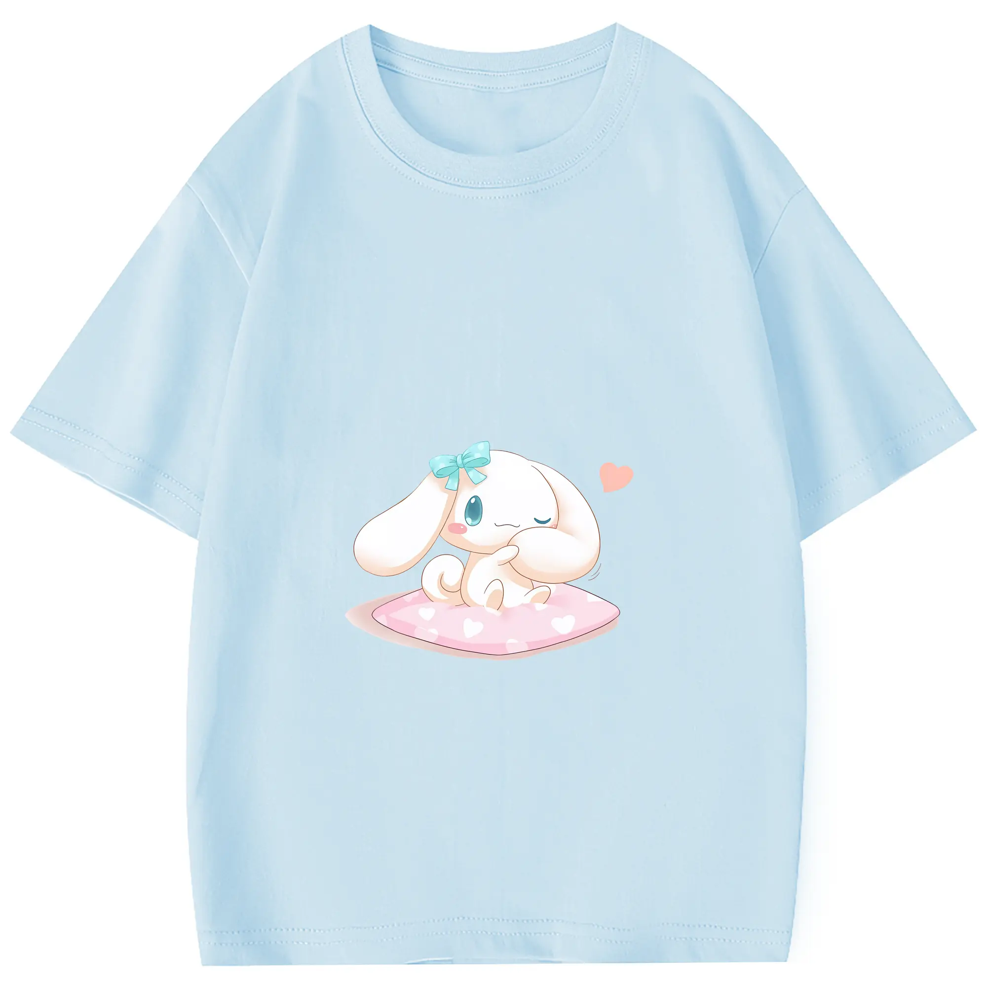 サンリオ グッズ,シナモロール - 綿100% 半袖Tシャツ ・ フロントプリント ・ 快適 通気性 ・ 日常使い 散歩 スポーツ用