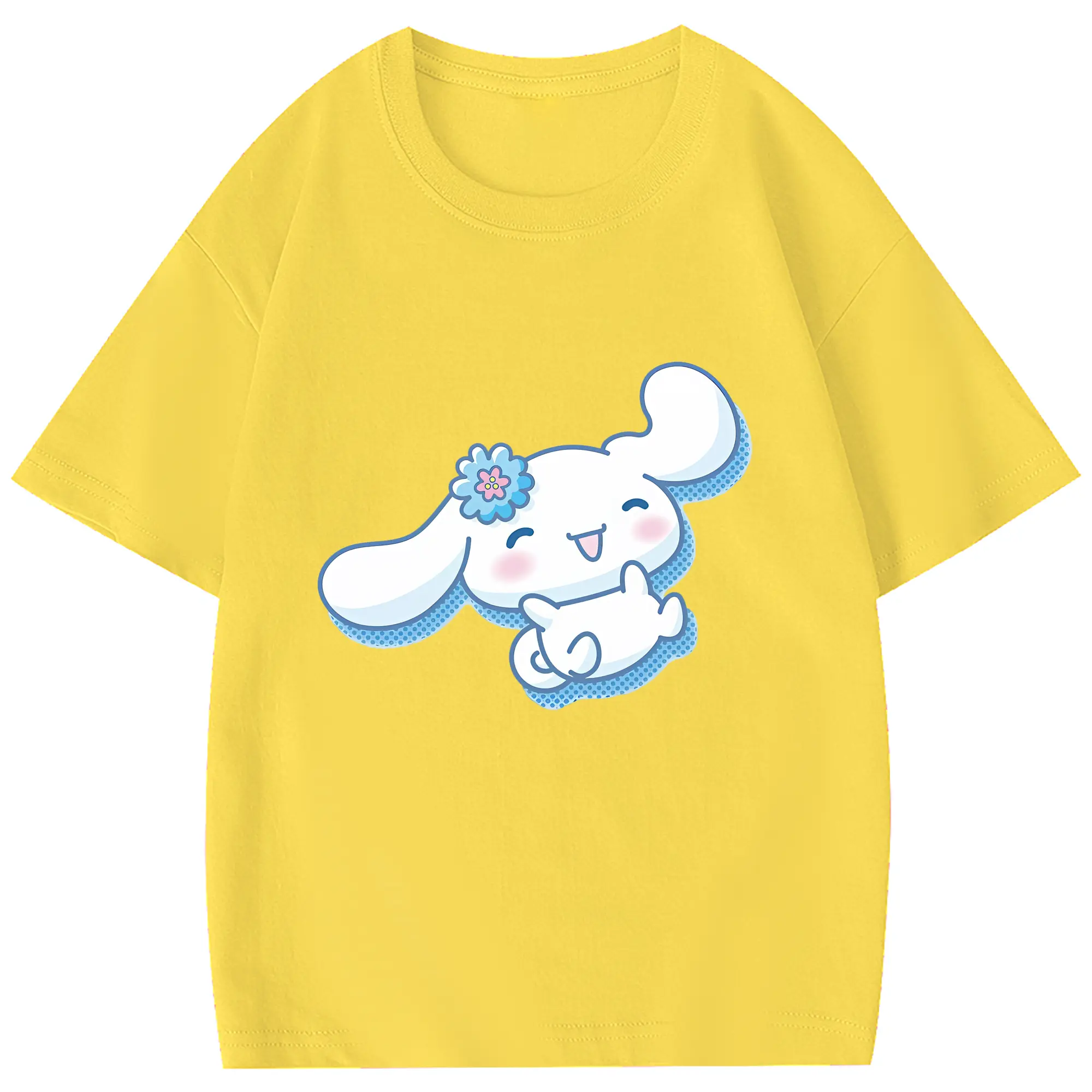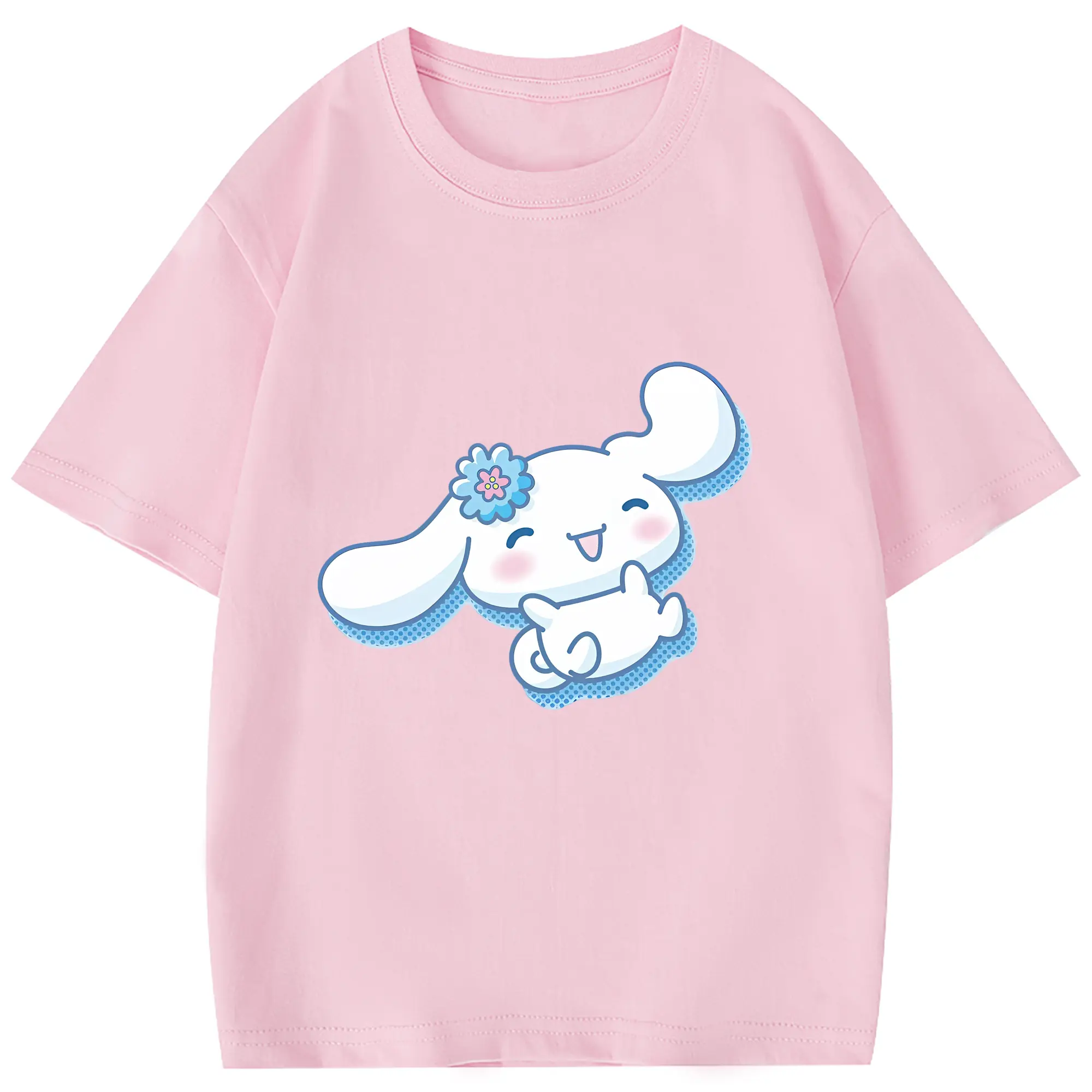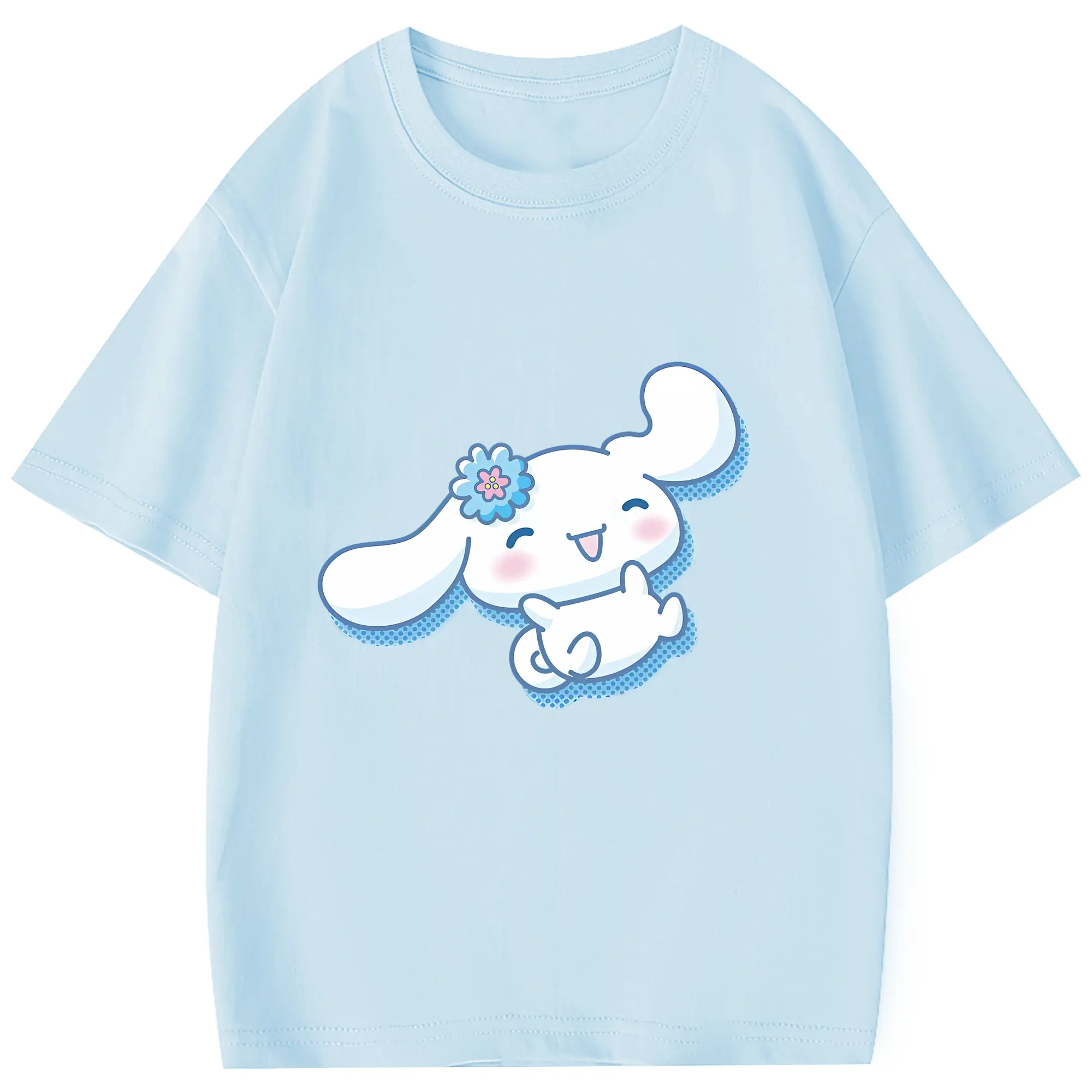 サンリオ グッズ,シナモロール - 綿100% 半袖Tシャツ ・ フロントプリント ・ 快適 通気性 ・ 日常使い 散歩 スポーツ用