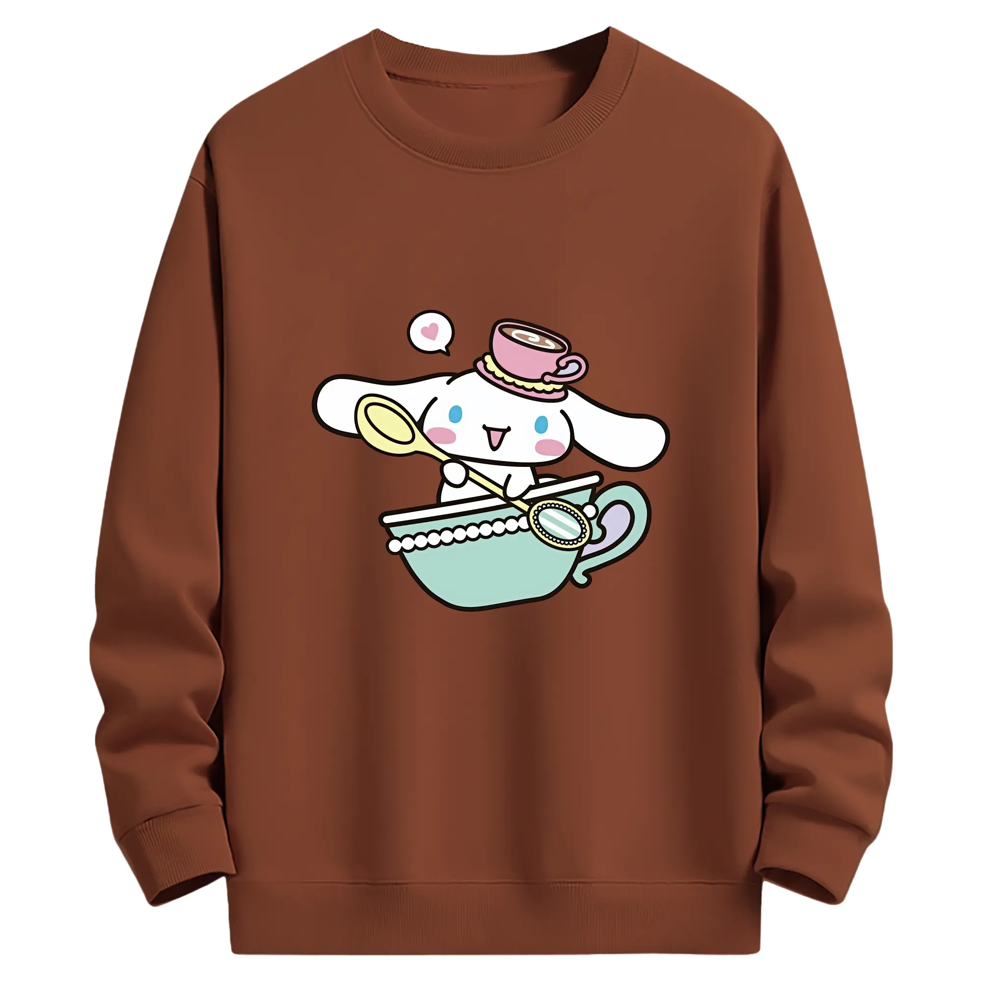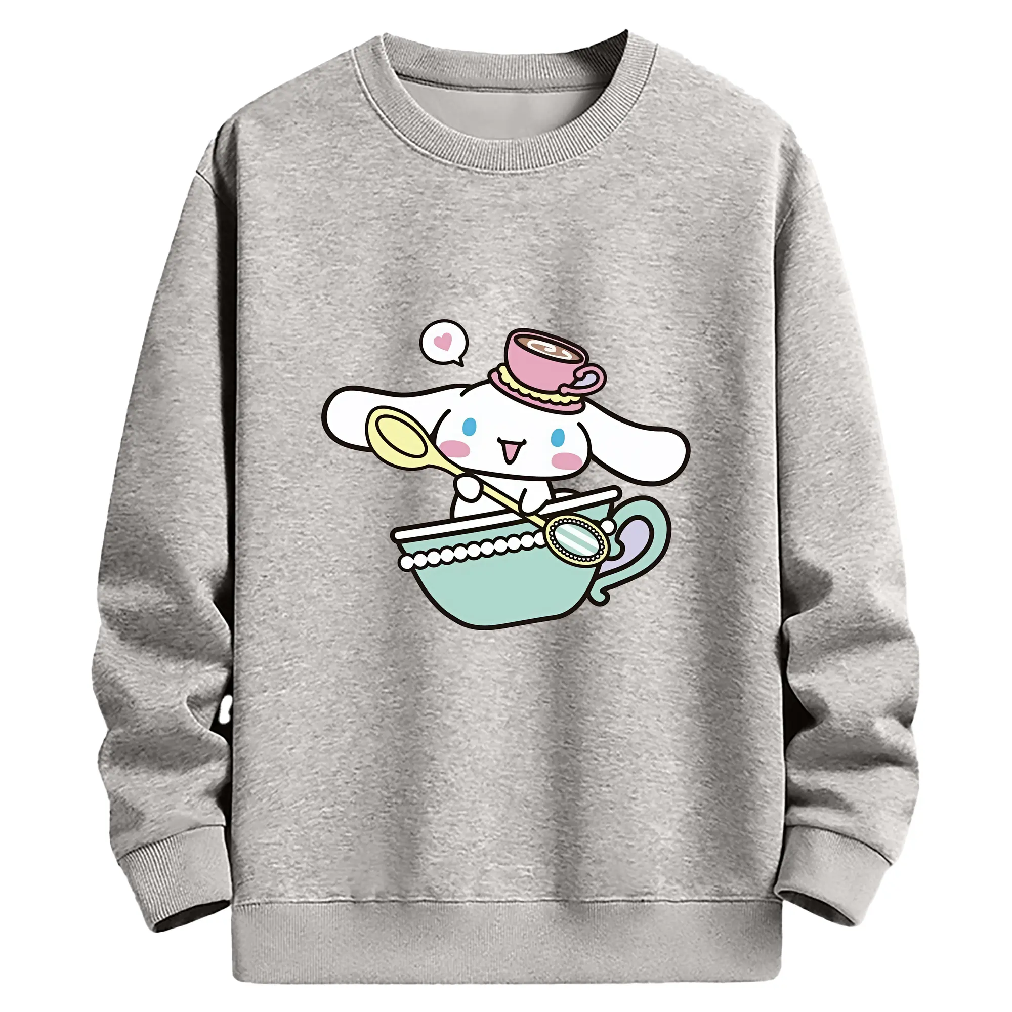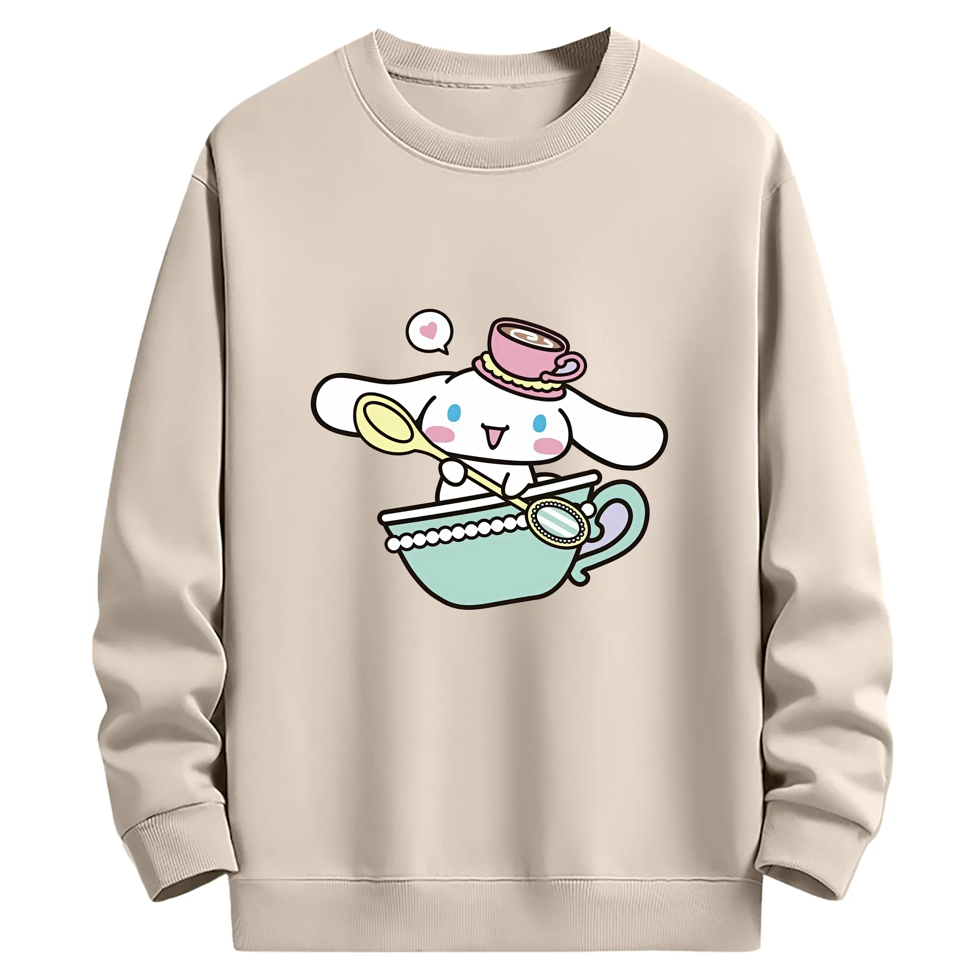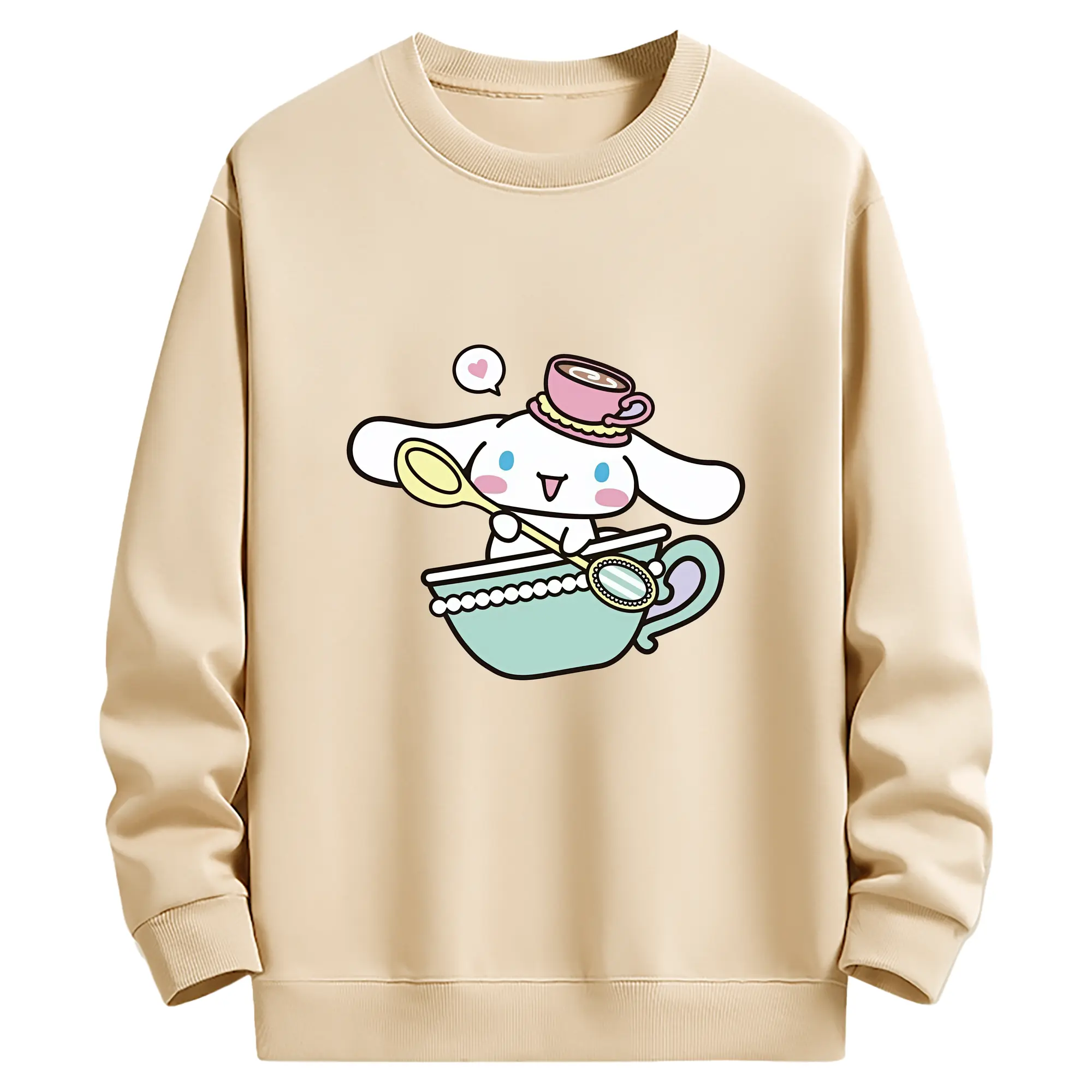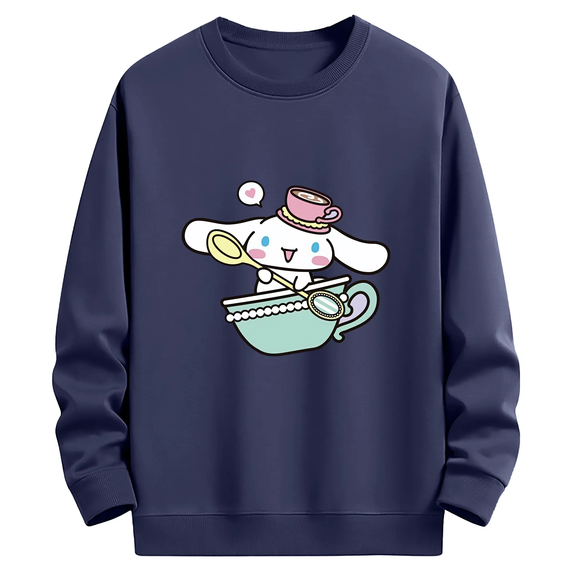 サンリオ グッズ,シナモロール - 薄手 クルーネック スウェット 裏毛260g · ポリエステル 春秋向け カジュアル 男女兼用 · トレーナー デイリー スポーツ 散歩に最適