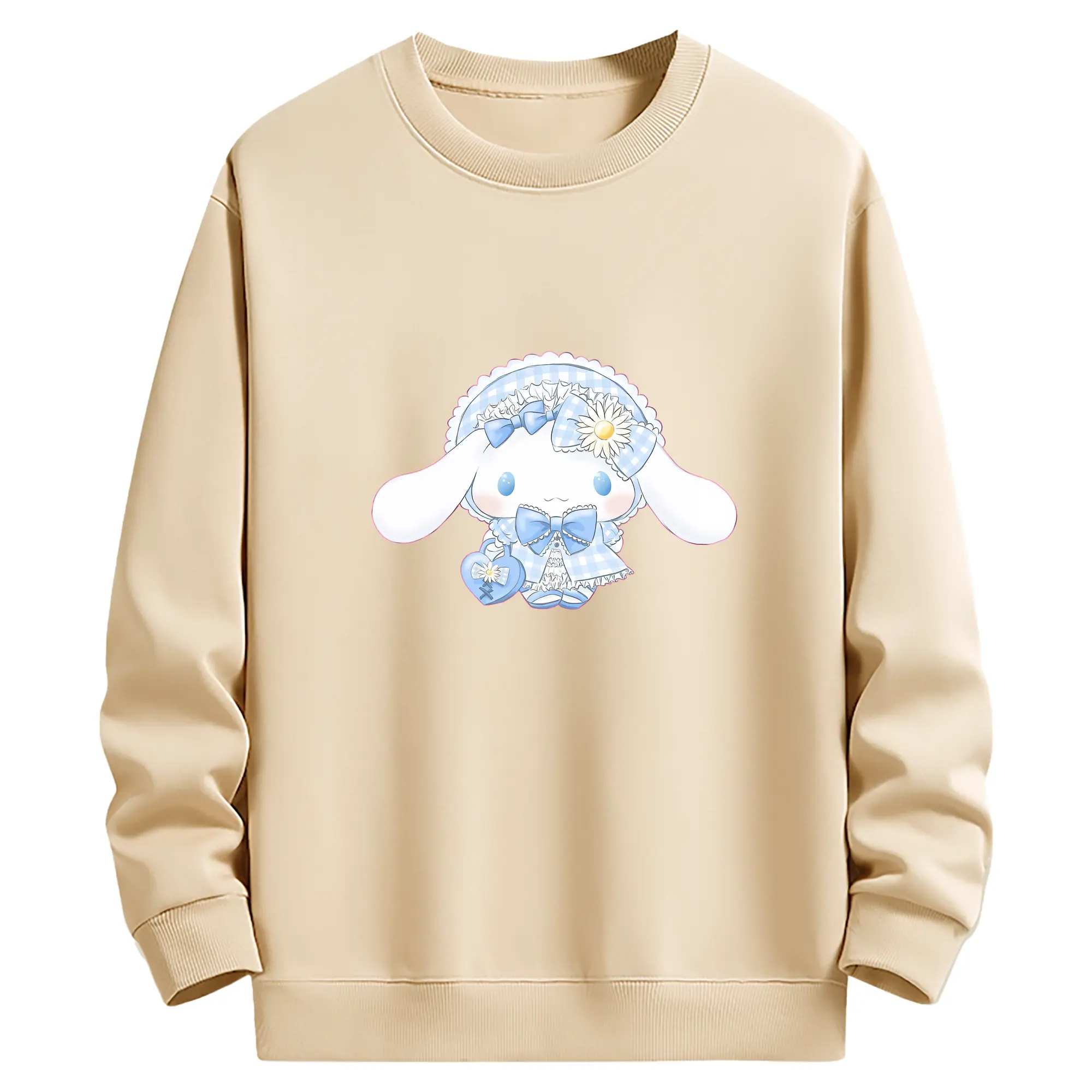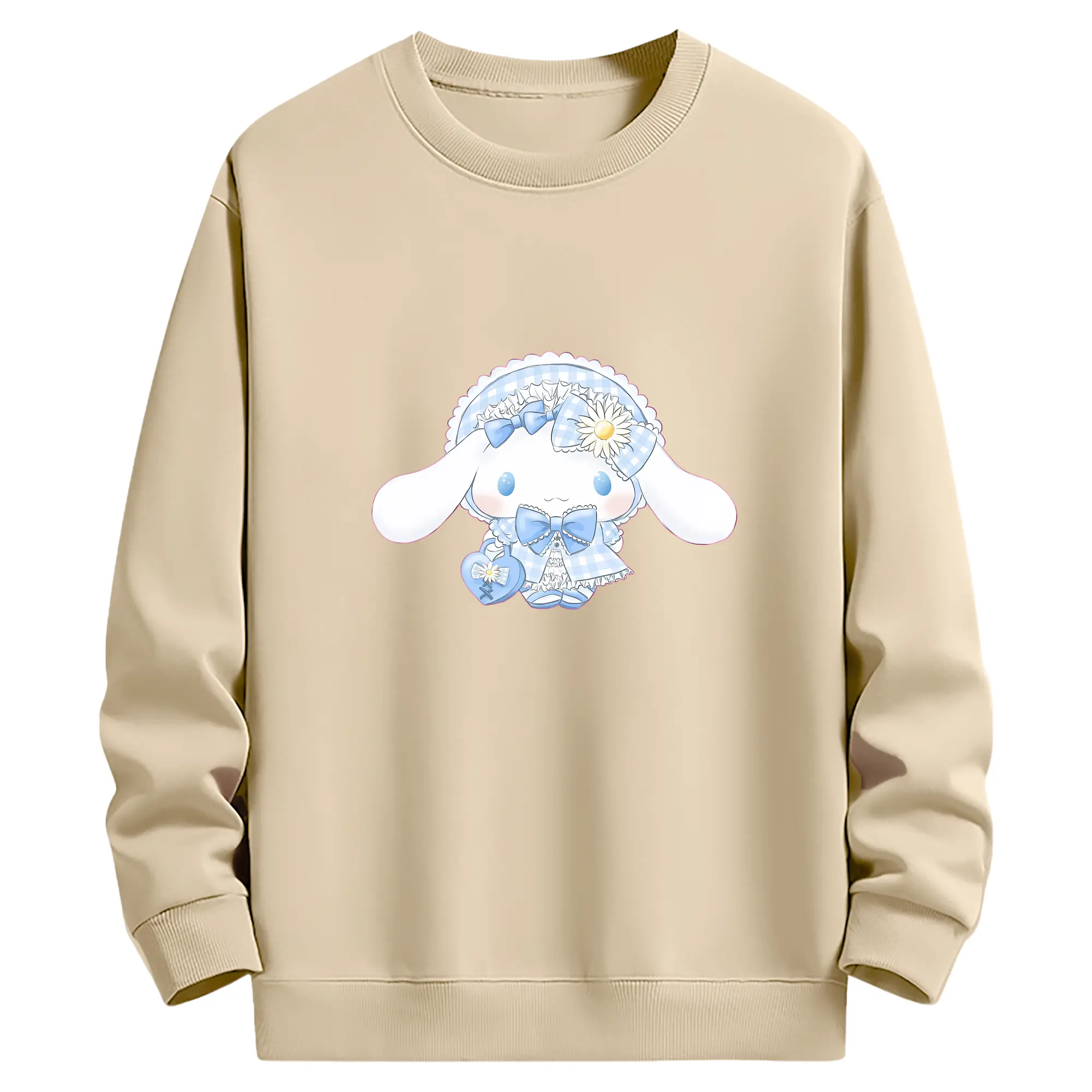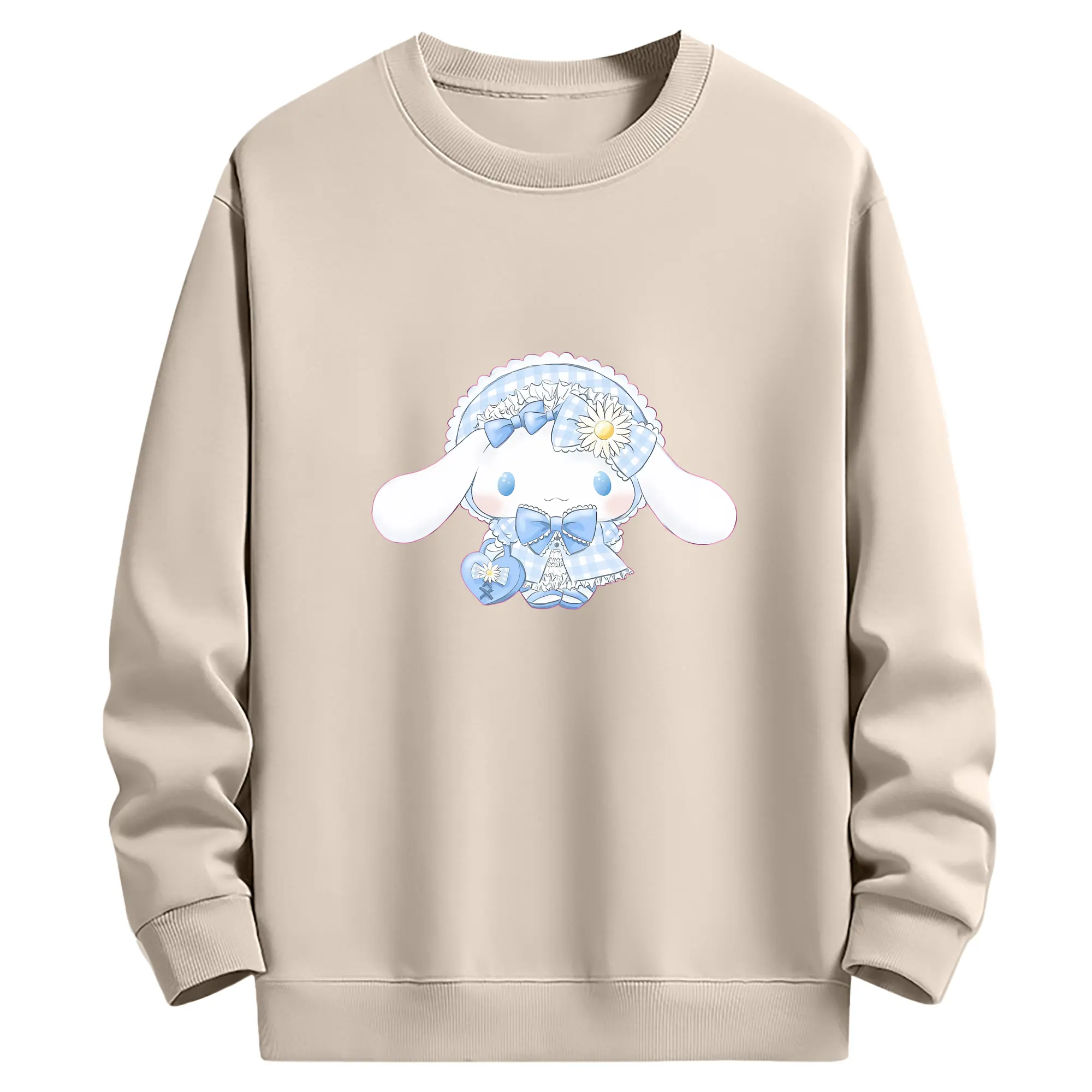 サンリオ グッズ,シナモロール - 薄手 クルーネック スウェット 裏毛260g · ポリエステル 春秋向け カジュアル 男女兼用 · トレーナー デイリー スポーツ 散歩に最適