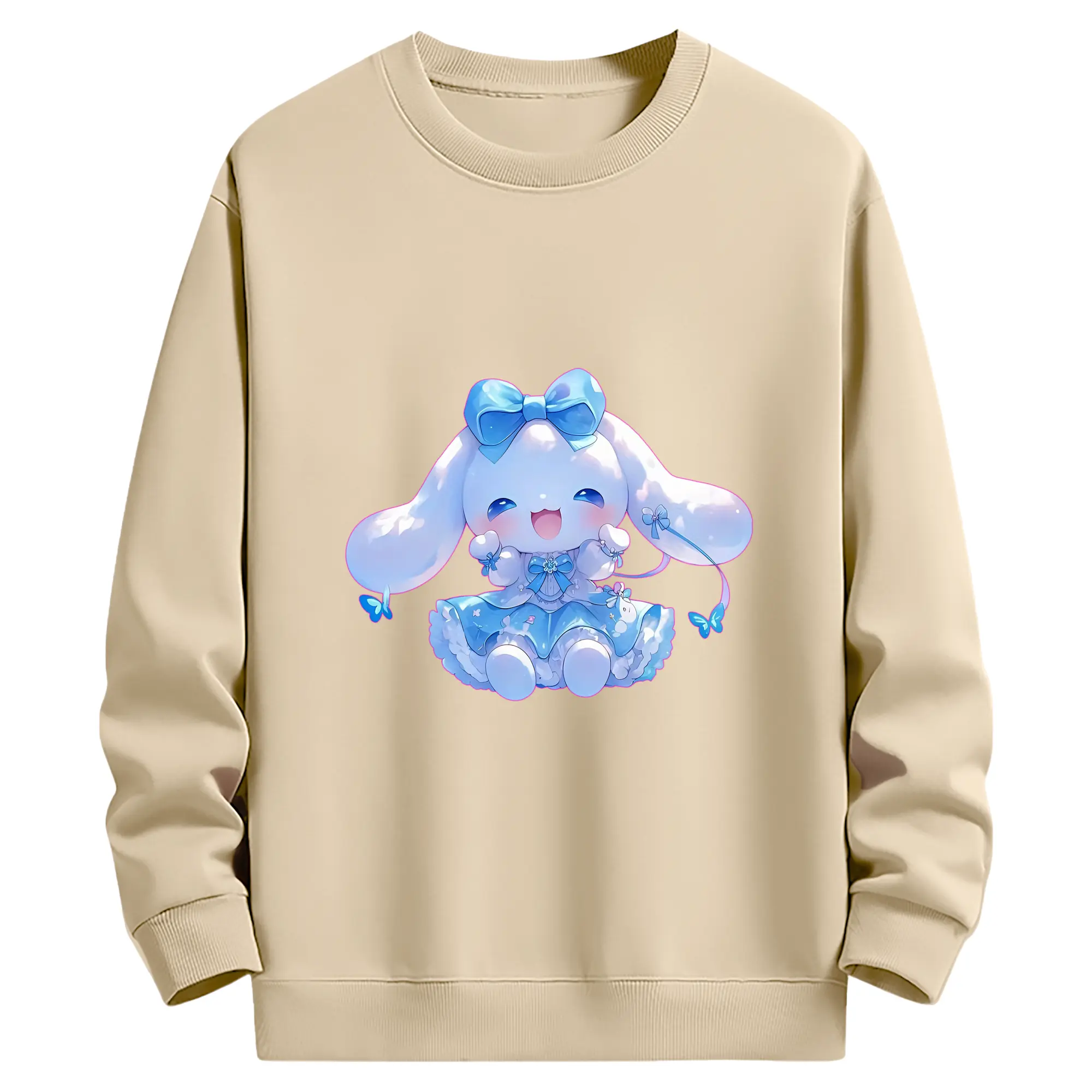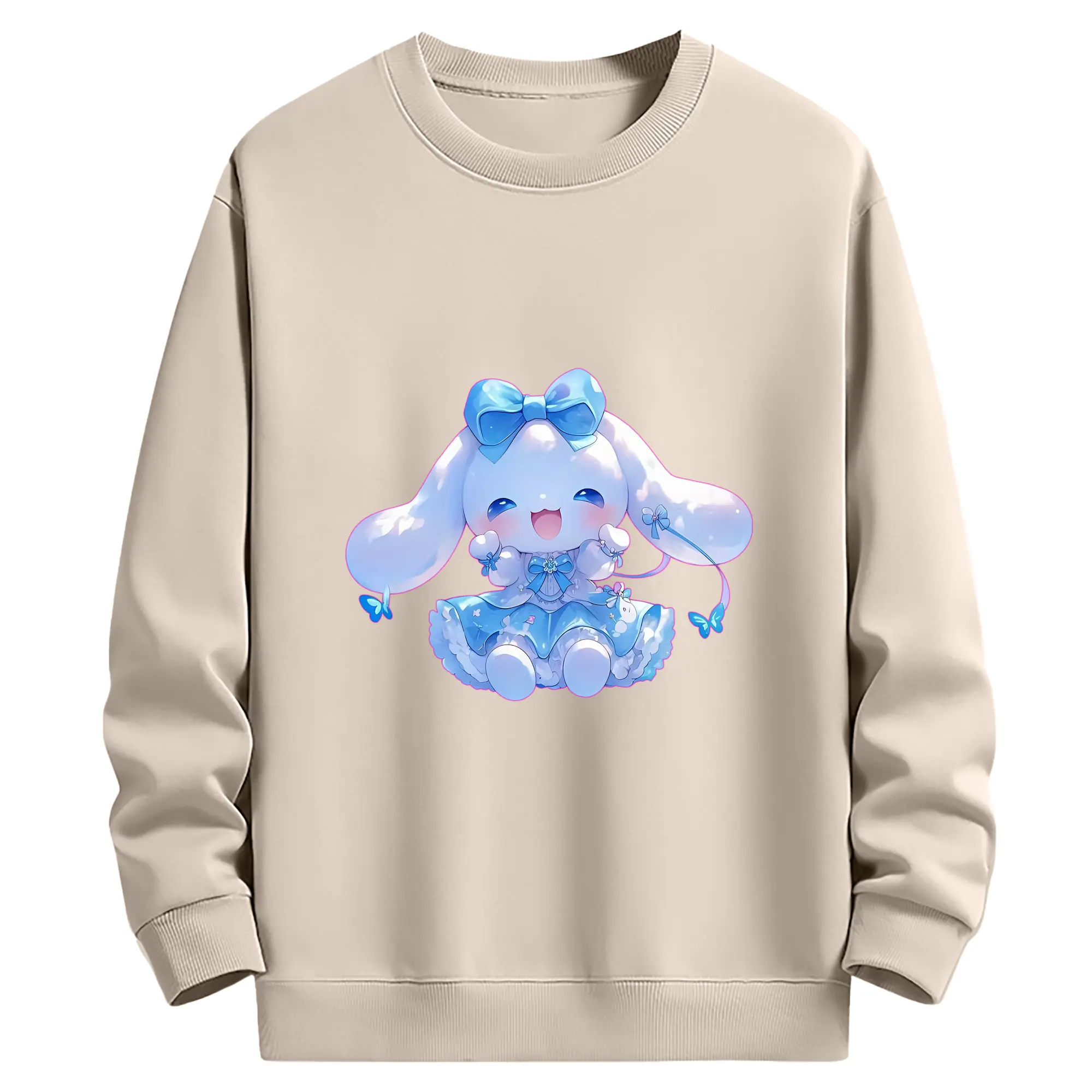 サンリオ グッズ,シナモロール - 薄手 クルーネック スウェット 裏毛260g · ポリエステル 春秋向け カジュアル 男女兼用 · トレーナー デイリー スポーツ 散歩に最適