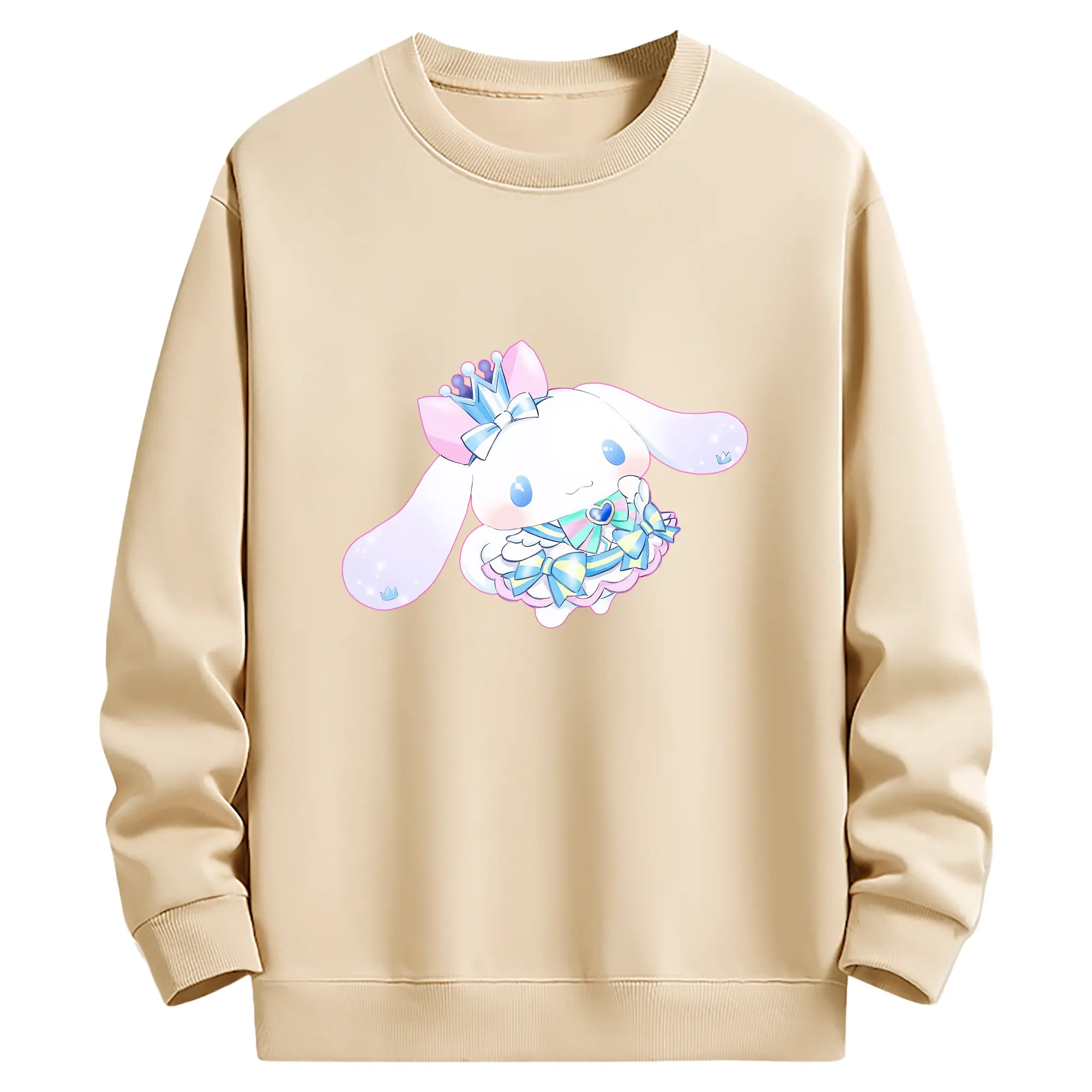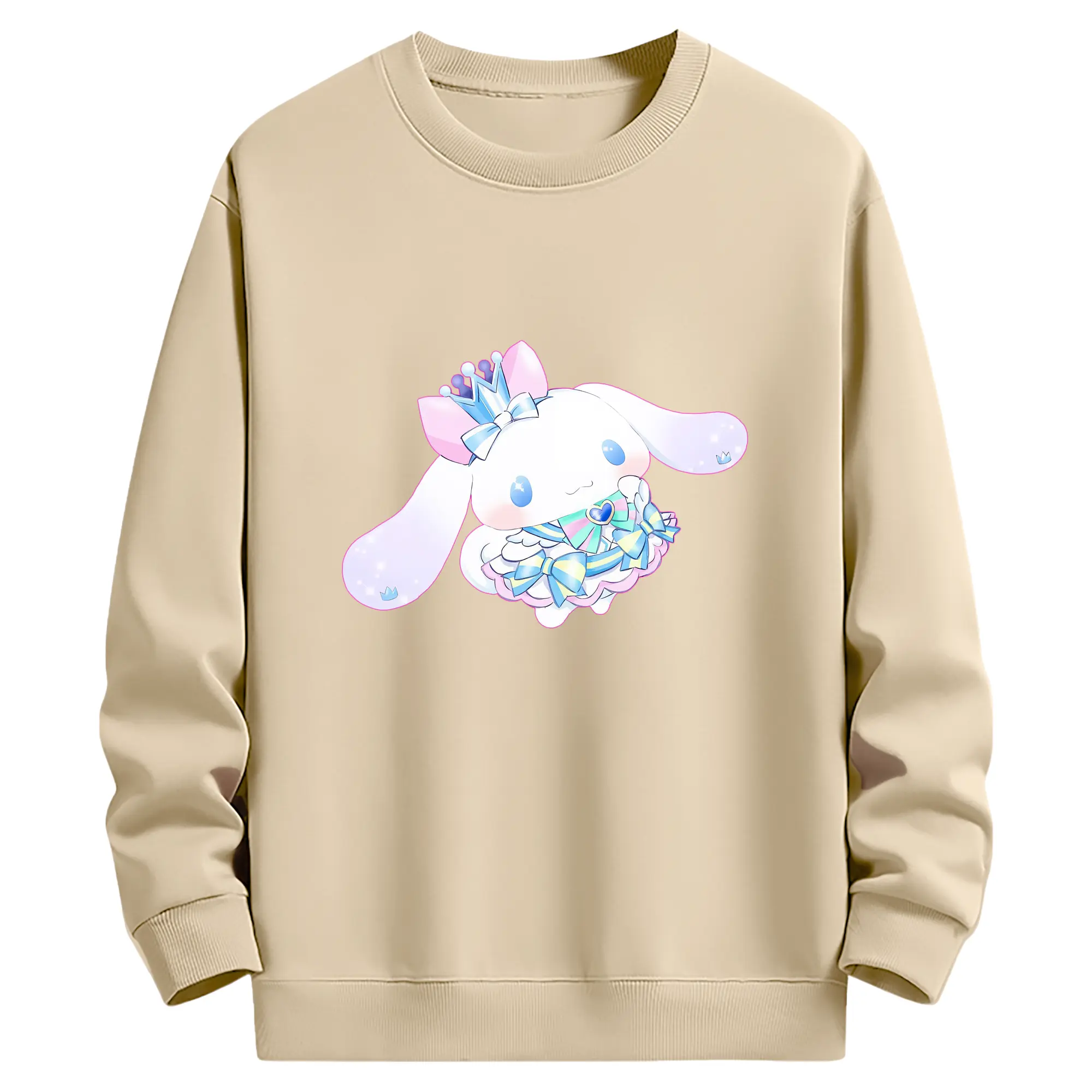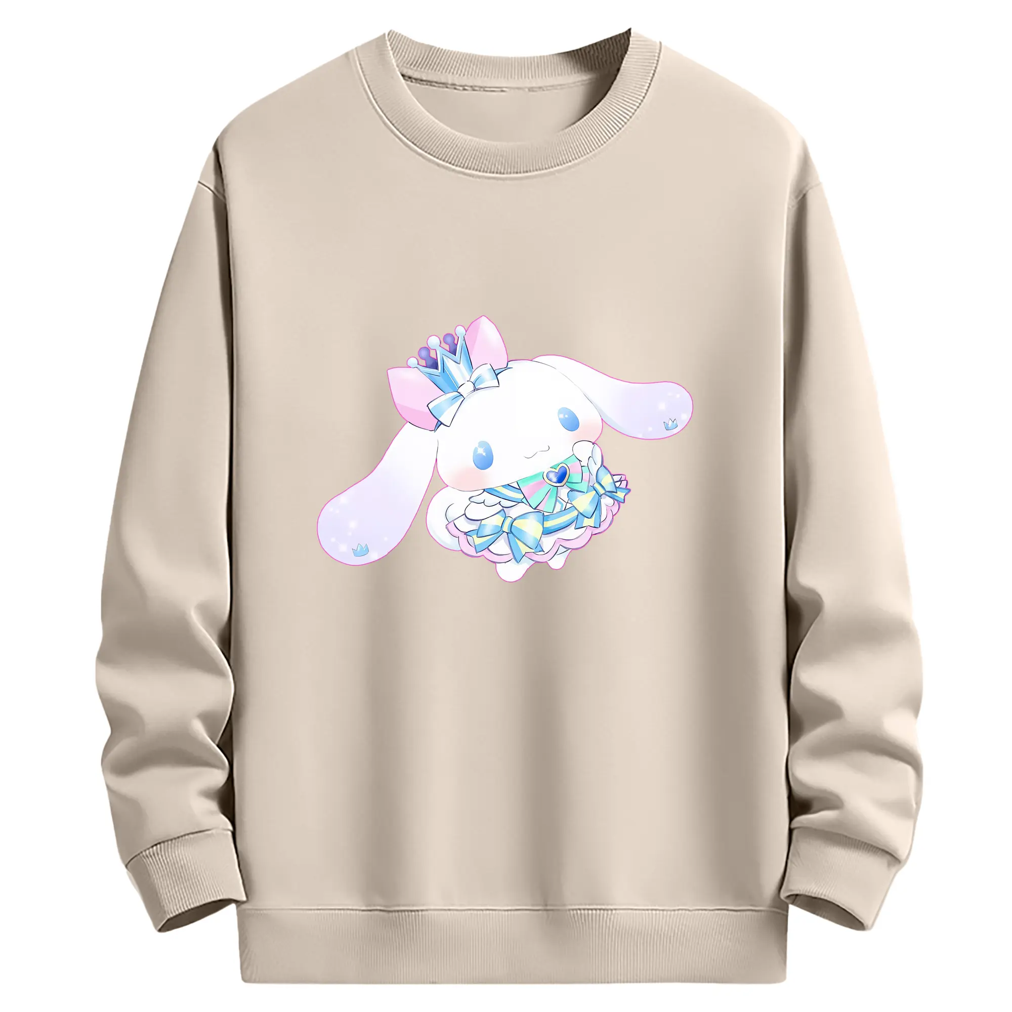 サンリオ グッズ,シナモロール - 薄手 クルーネック スウェット 裏毛260g · ポリエステル 春秋向け カジュアル 男女兼用 · トレーナー デイリー スポーツ 散歩に最適