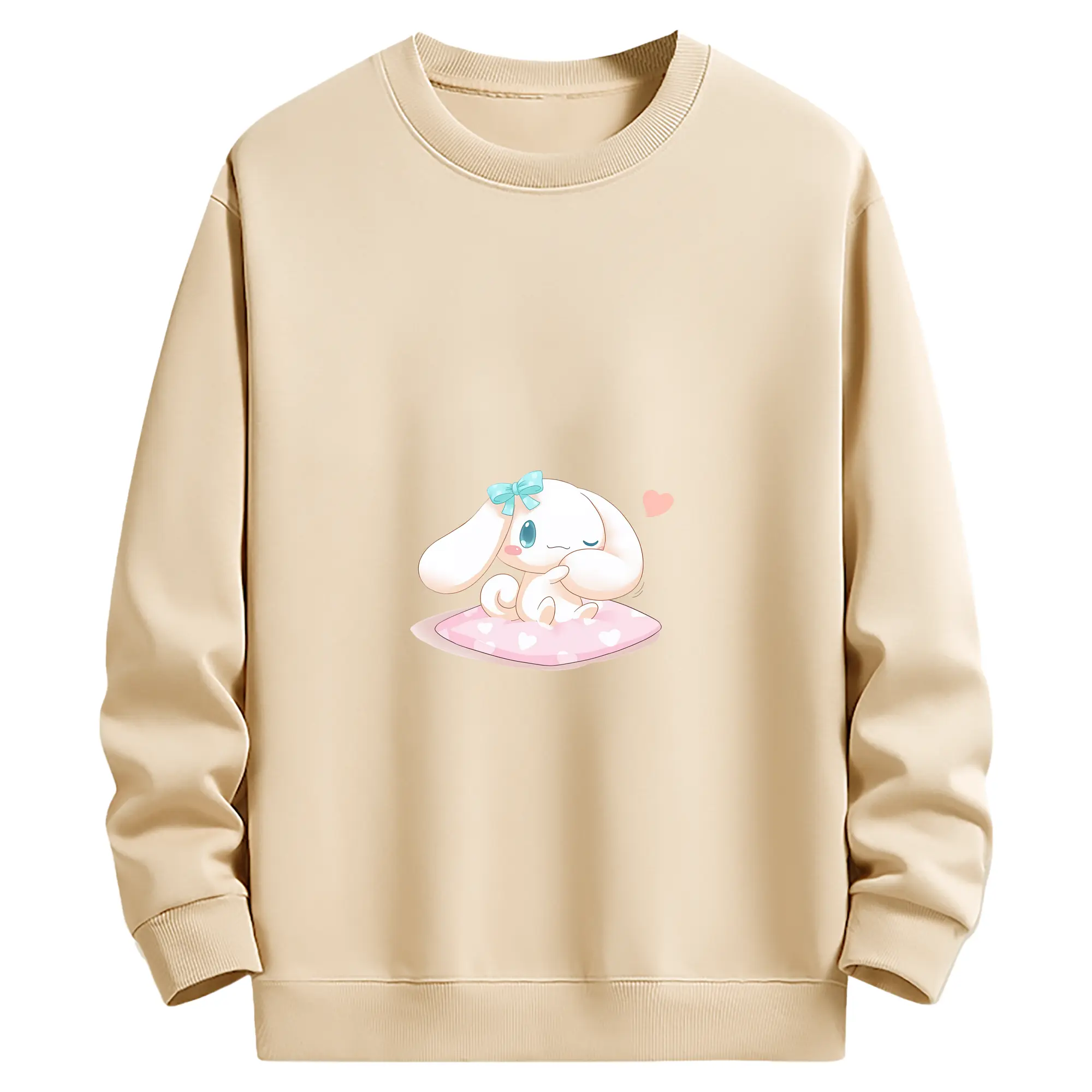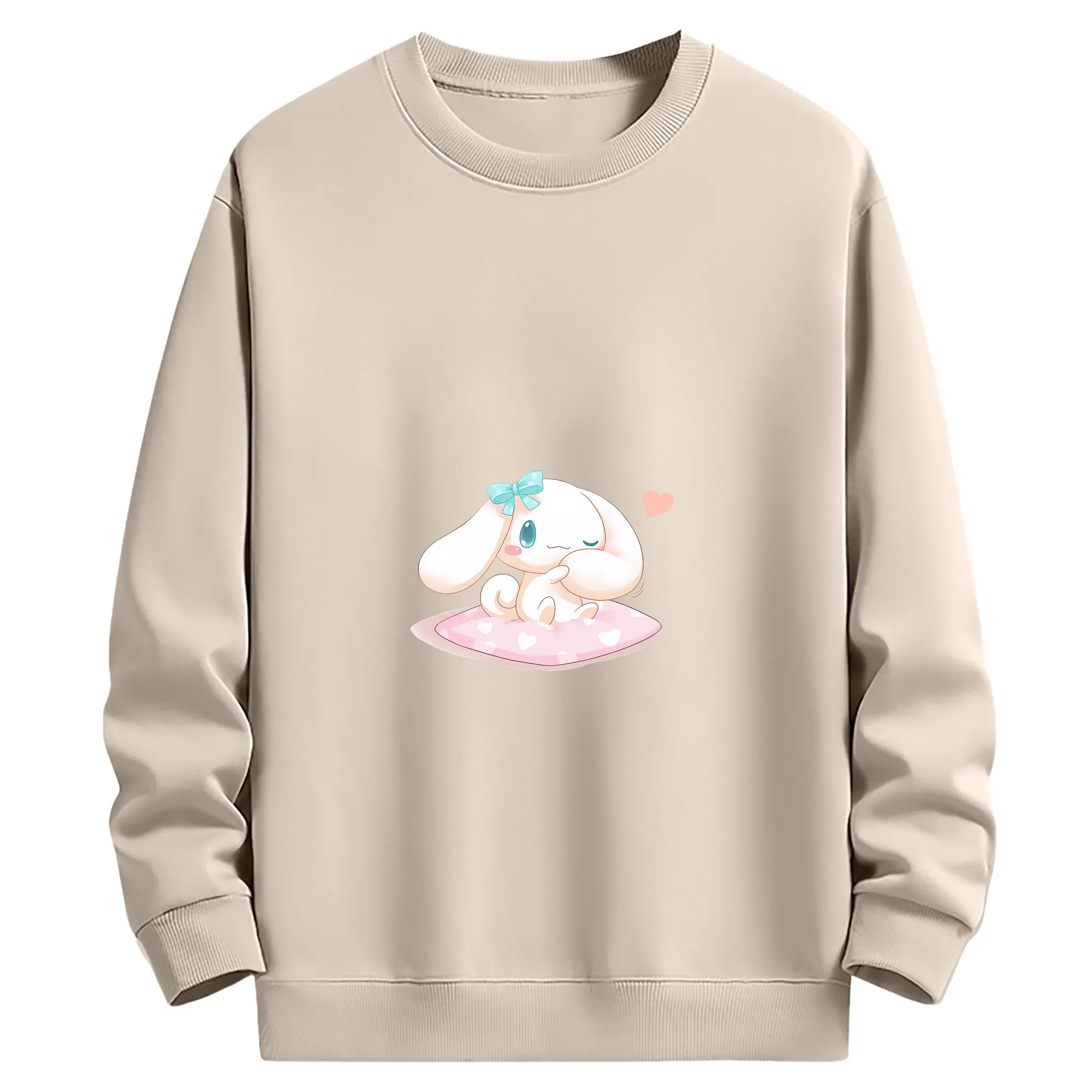 サンリオ グッズ,シナモロール - 薄手 クルーネック スウェット 裏毛260g · ポリエステル 春秋向け カジュアル 男女兼用 · トレーナー デイリー スポーツ 散歩に最適
